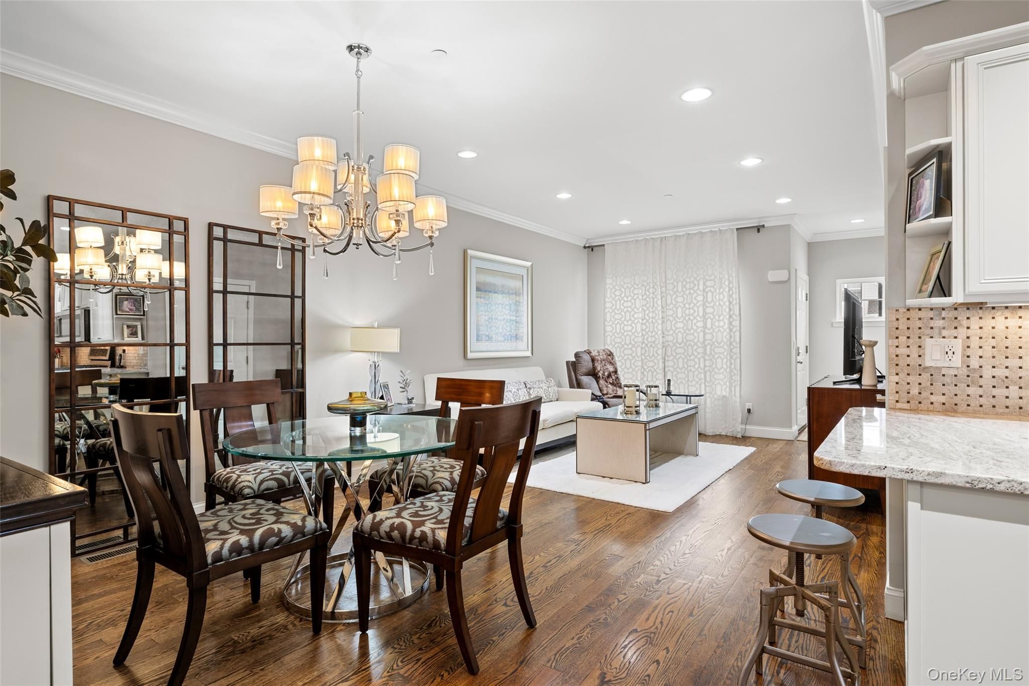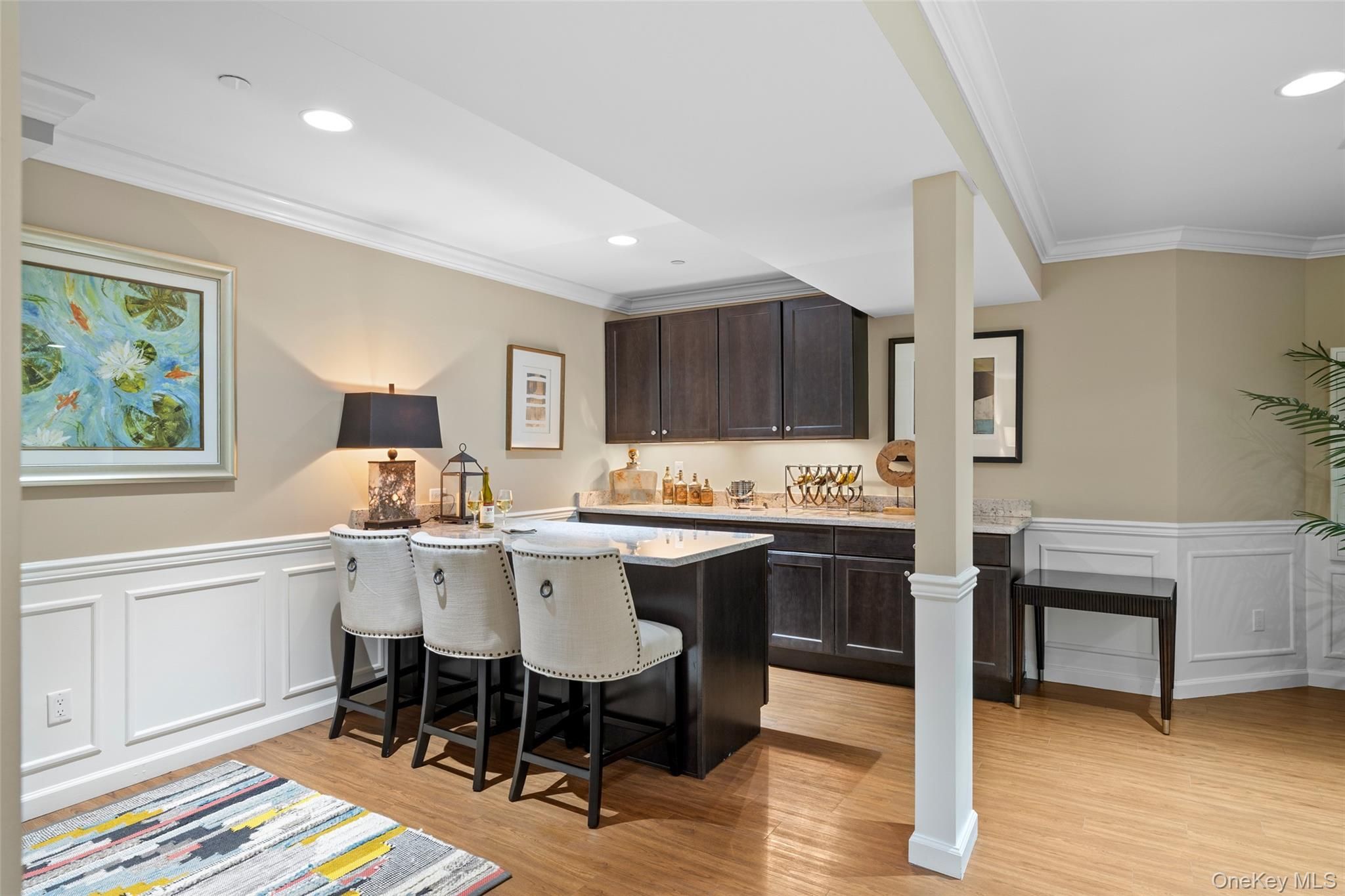 - Bedroom on Main Level, Bath on Main Level, Built-in Features, Chandelier, Crown Molding, Dry Bar, Eat-in Kitchen, Entertainment Center, Entrance Foyer, Granite Counters, Primary Bathroom, Primary Downstairs, Recessed Lighting