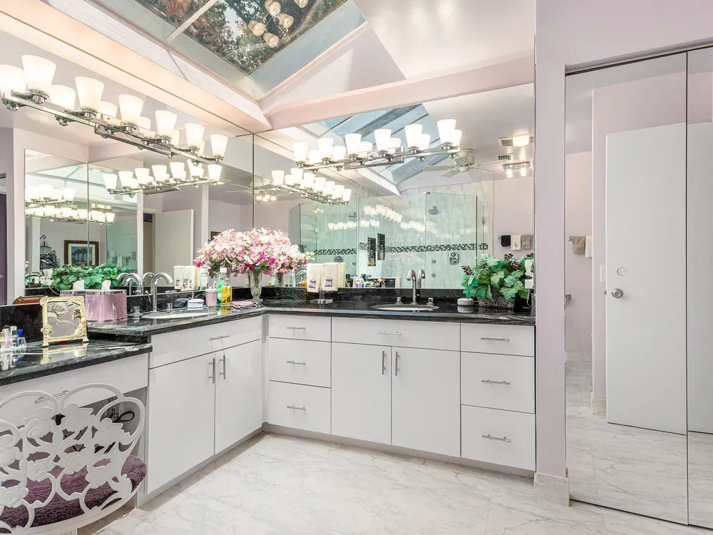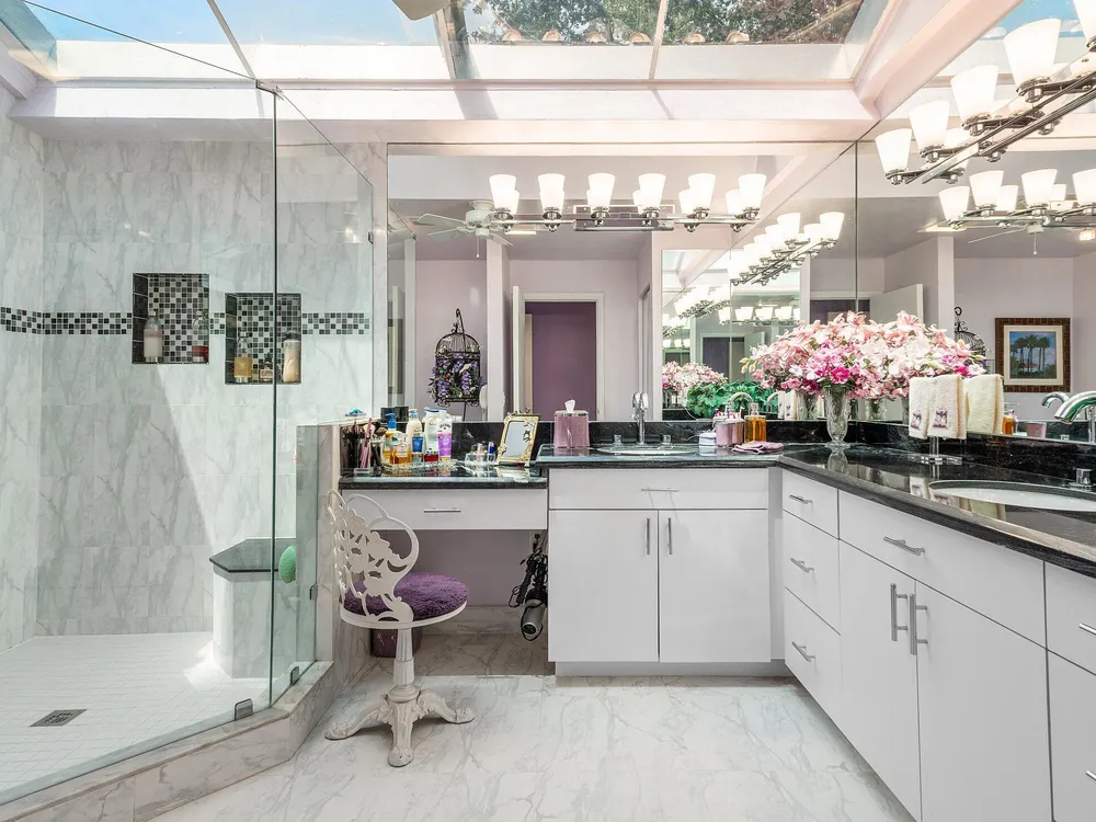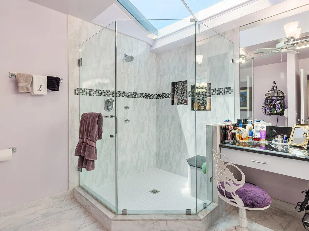 - Built-in Shelving, Custom Mirrors, Entrance Foyer, Garden Tub/Roman Tub, Skylights, Walk-In Closet(s), Wet Bar, Converted Bedroom, Home Office, Eat-in Kitchen, Separate/Formal Dining Room, Single Hung Metal Window(s), Sliding Window(s), Tinted Window(s), Dual Sinks, Separate Shower, Bathtub, Storm Shutters