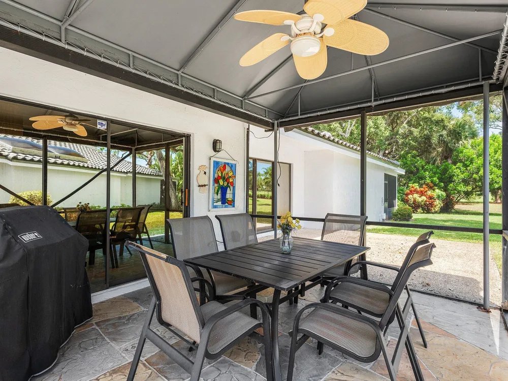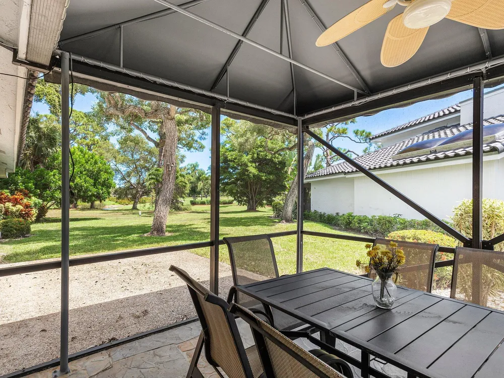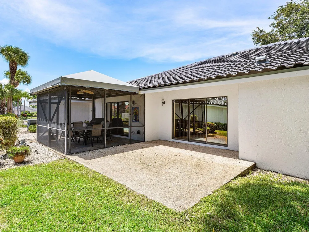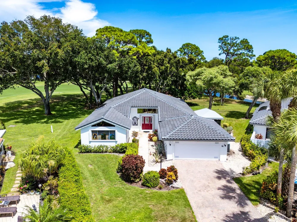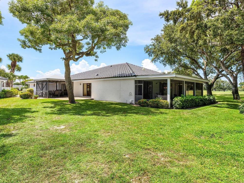 Special opportunity to own one of the most desirable lots in ''The Woods'' at Hunters Run Country Club. This residence is situated on an oversized cul-de-sac lot, with a sprawling park-like backyard offering plenty of space for a private pool. The highly sought-after model-7 floor-plan is ideal for those who love to entertain, boasting features like a gallery foyer and wet bar, formal dining room, and seamless flow to the outdoor spaces. The updated eat-in kitchen boasts newer stainless steel appliances, granite countertops and custom cabinetry. Two en-suite bedrooms offer updated private baths, while a separate versatile den can be easily converted to a 3rd bedroom, also with private bath. Other highlights include an extended driveway, 2-car plus golf cart garage and much more.