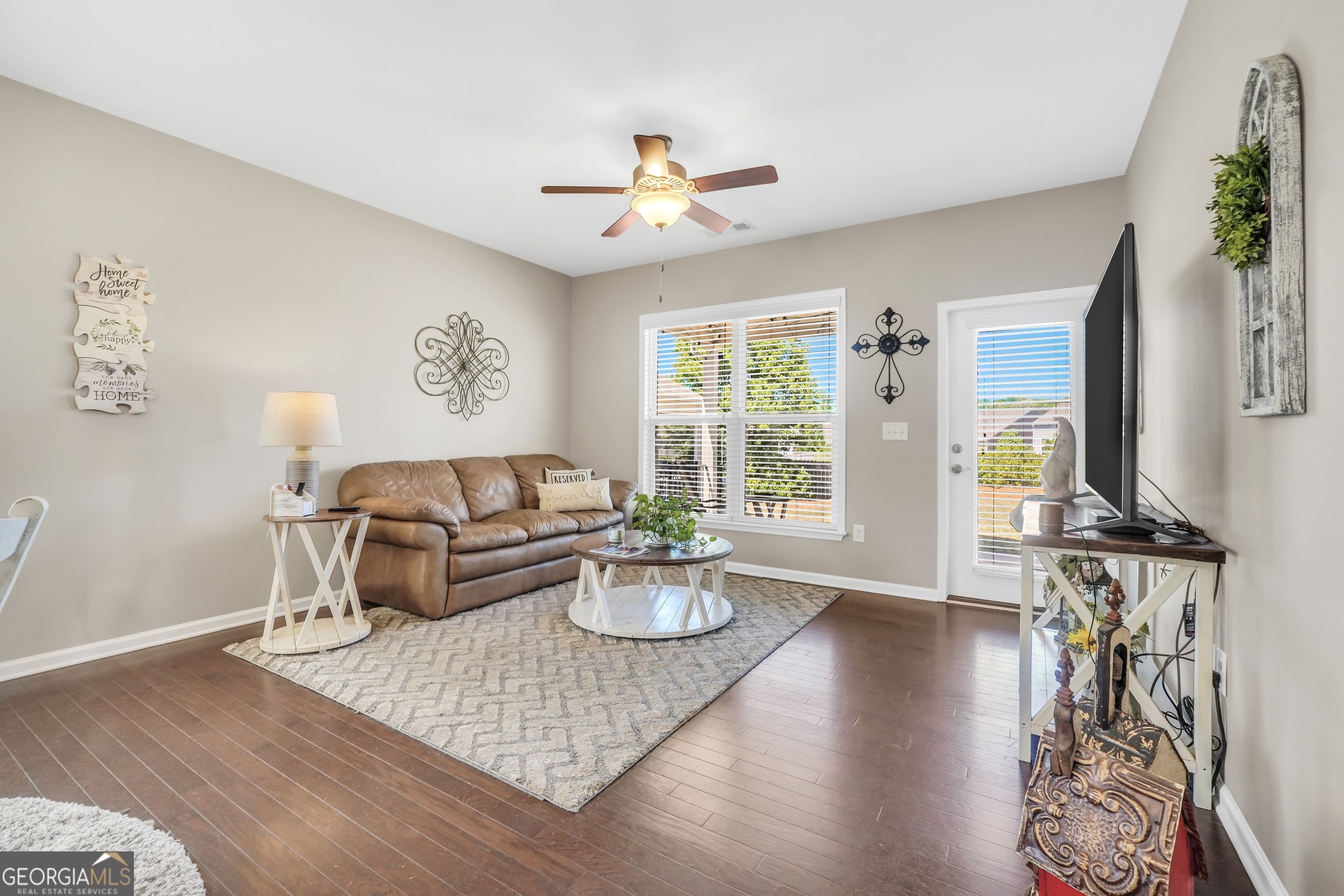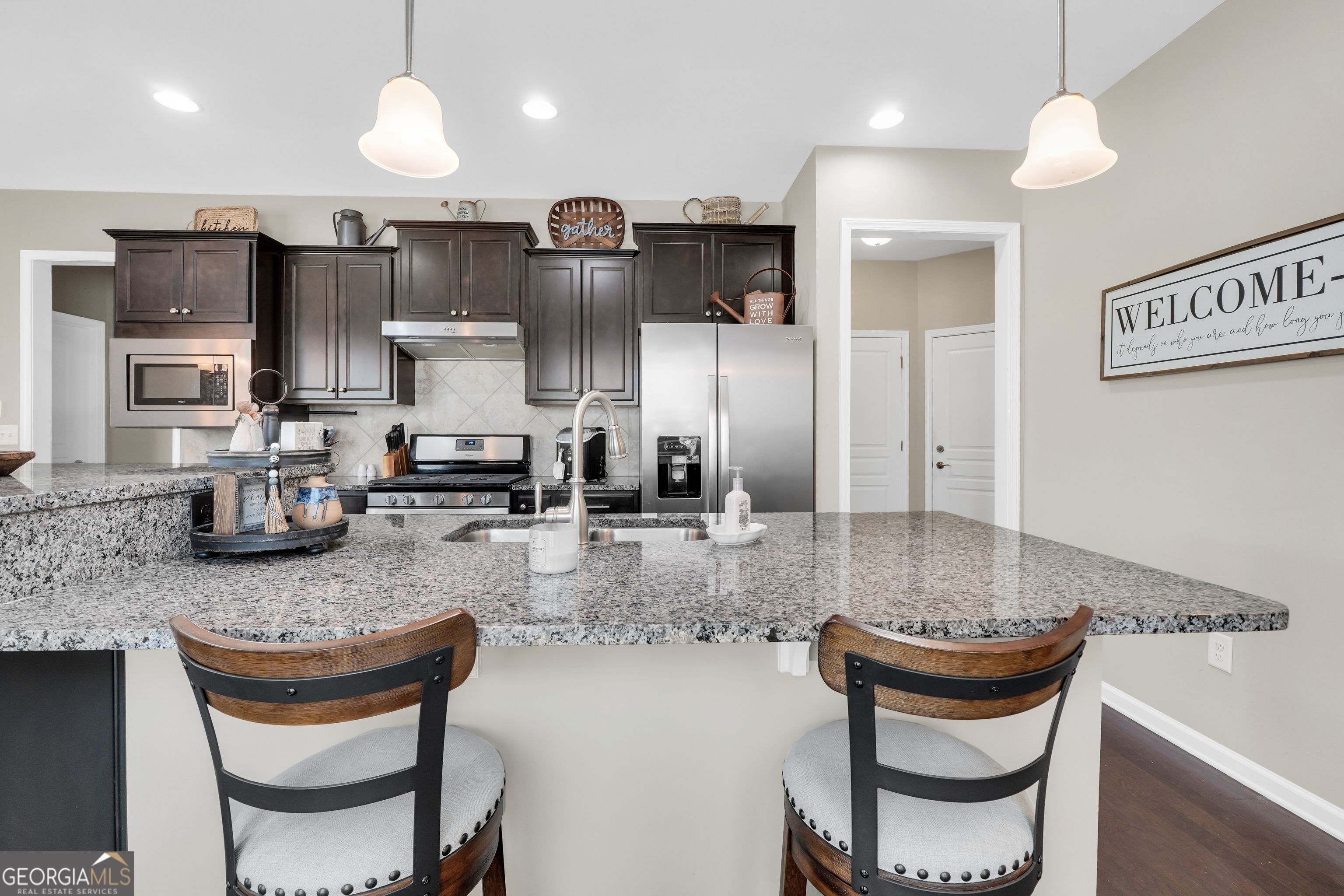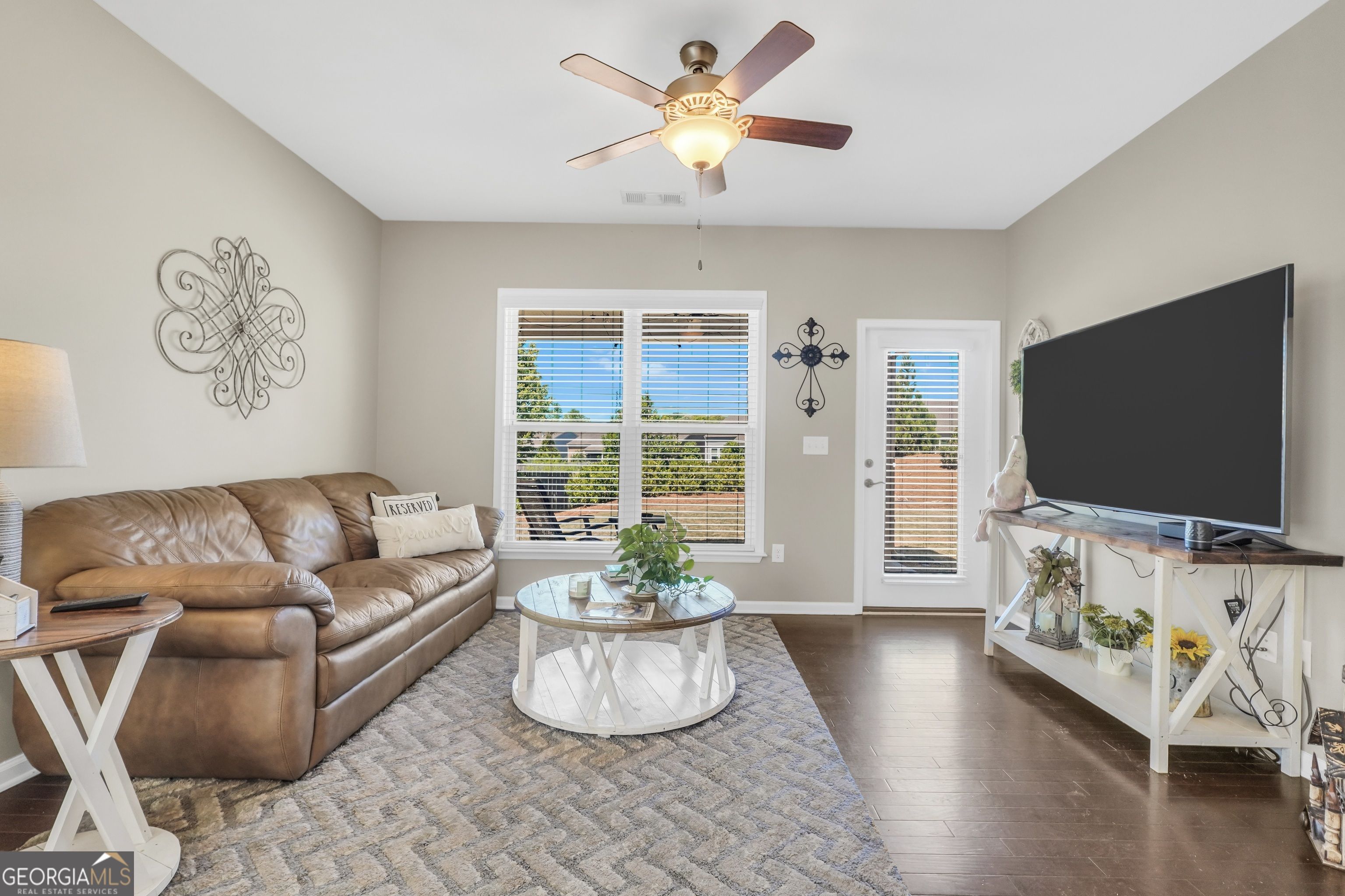 Welcome home to Sun City Peachtree, a premier active adult golf course community offering resort-style living at its finest. Residents enjoy access to exceptional amenities including indoor and outdoor pools, a state-of-the-art fitness center, tennis courts, and a wide variety of clubs and activities to suit every interest. This beautifully maintained Hillcrest plan features 2 bedrooms and 2 bathrooms, thoughtfully designed for comfort and convenience. The home includes a single-car garage with an additional dedicated golf cart space. Inside, you'll find hardwood flooring throughout the main living areas, cozy carpet in the bedrooms, and tile in the bathrooms. The interior has been recently updated with fresh paint, giving the home a bright, clean, and modern feel. The spacious kitchen is perfect for entertaining, complete with a large island and stainless steel appliances, including an oven/range combo, dishwasher, and microwave. Relax and unwind on the covered back porch, ideal for enjoying peaceful mornings or evening gatherings. Experience low-maintenance living in a vibrant community that truly has it all!