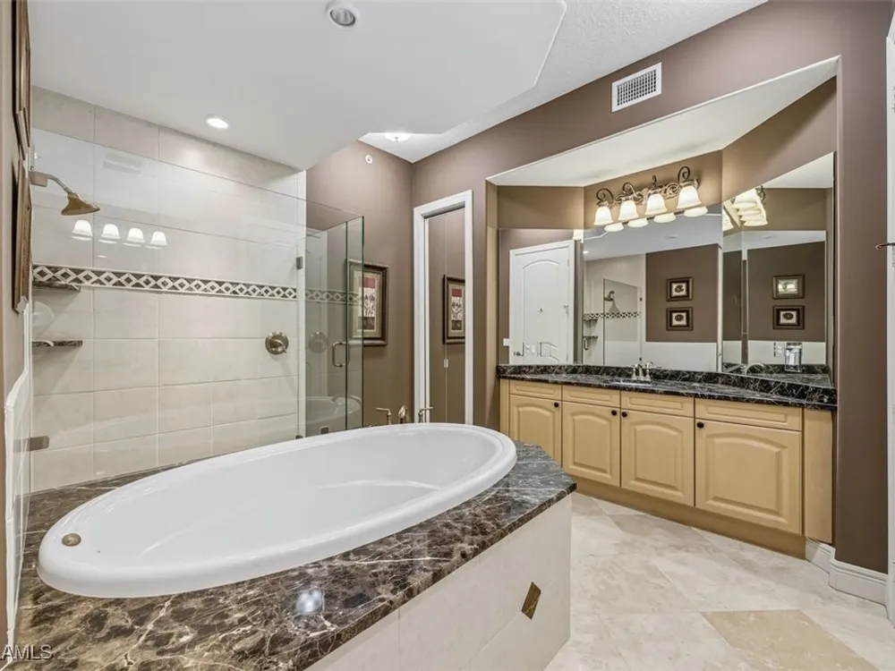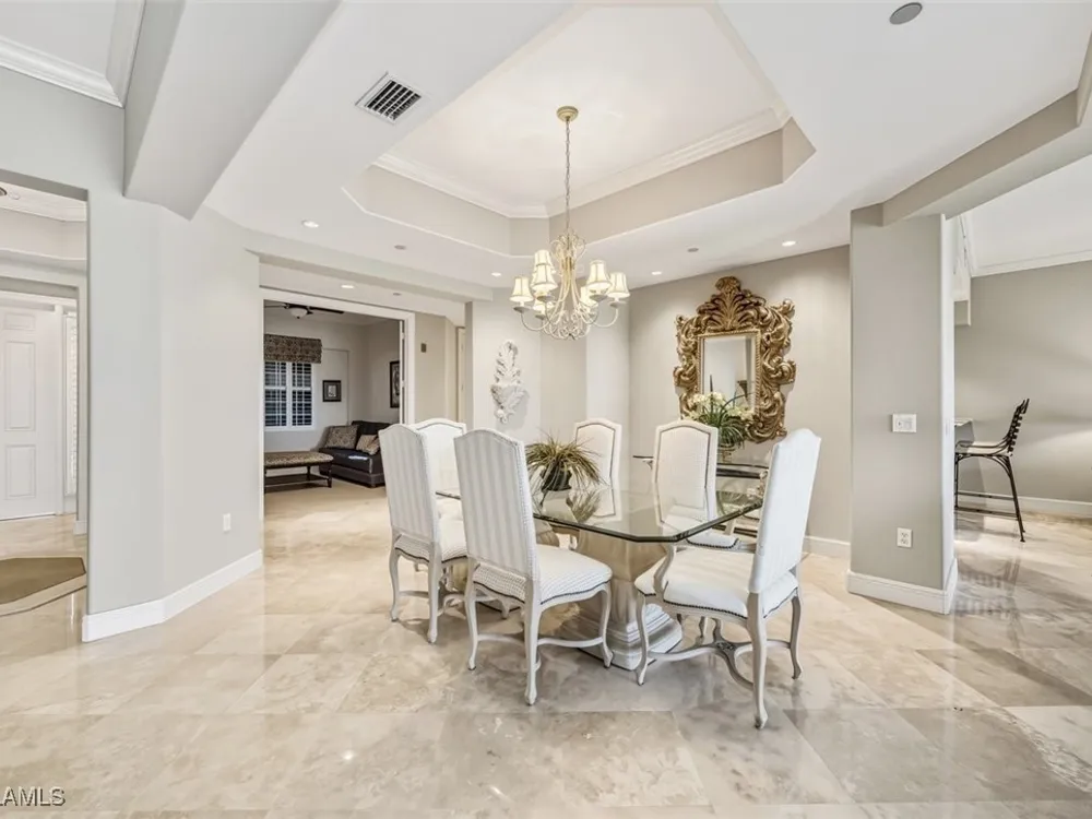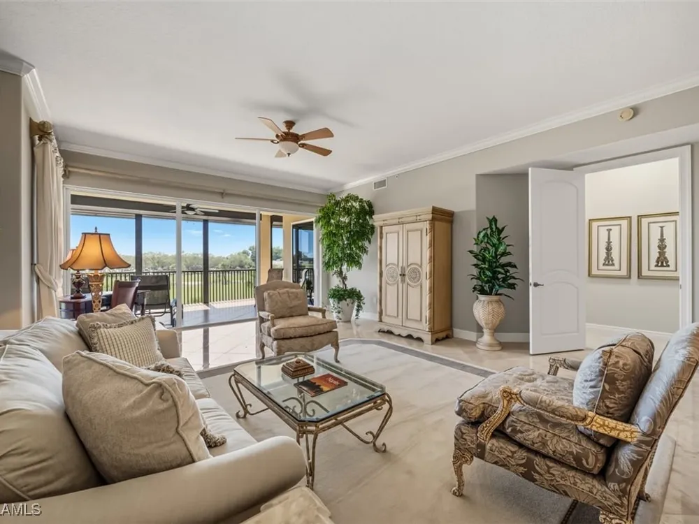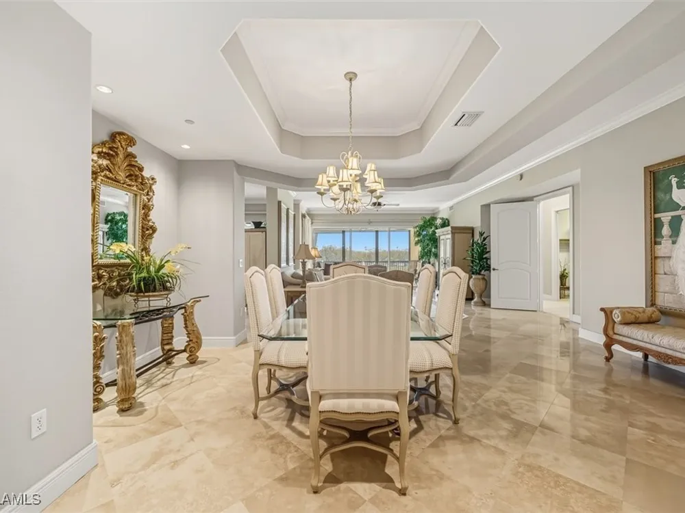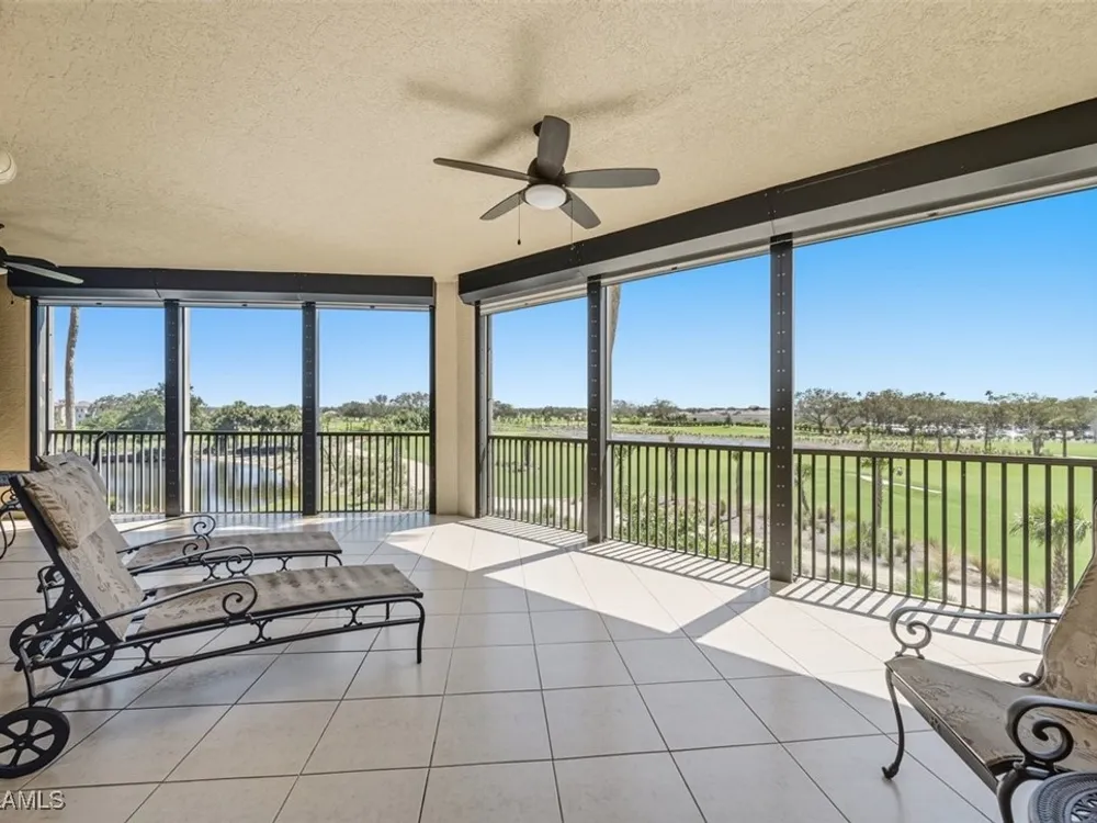 Enjoy sweeping golf course and lake views from this 2-bedroom plus den (which can function as a 3rd bedroom) residence in Vista Pointe at the Vineyards. With over 2,400 sq. ft. under air, this desirable floor plan features high ceilings, marble flooring, granite countertops, 2.5 baths, and a spacious primary suite with walk-in closet, dual sinks, soaking tub, and oversized shower. Additional highlights include plantation shutters, ensuite guest bedroom, crown molding, and a large, screened lanai ideal for entertaining. Property is being offered Turnkey Furnished and is move in Ready! Vista Pointe offers a gated entrance, secured lobby with elevators, storage, and two enclosed garage spaces. Residents enjoy a resort-style pool with waterfalls, fitness room, community room, and more. The property is professionally managed, with an on-site manager available weekday at the Vista Pointe Clubhouse. The Vineyards Country Club membership is optional and offers two tiers of membership. The Club is within walking distance and features a state-of-the-art Wellness Center and Spa, Tennis Complex, and an 80,000-square-foot clubhouse. Members enjoy 36 holes of championship golf, fine and casual dining, an aqua pool area with sundeck and poolside restaurant service, as well as bocce courts, pickleball courts, and outdoor gas fire pits. Come experience the exceptional lifestyle offered at Vista Pointe in The Vineyards.