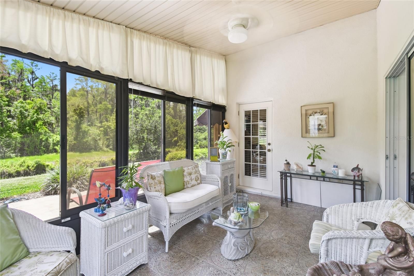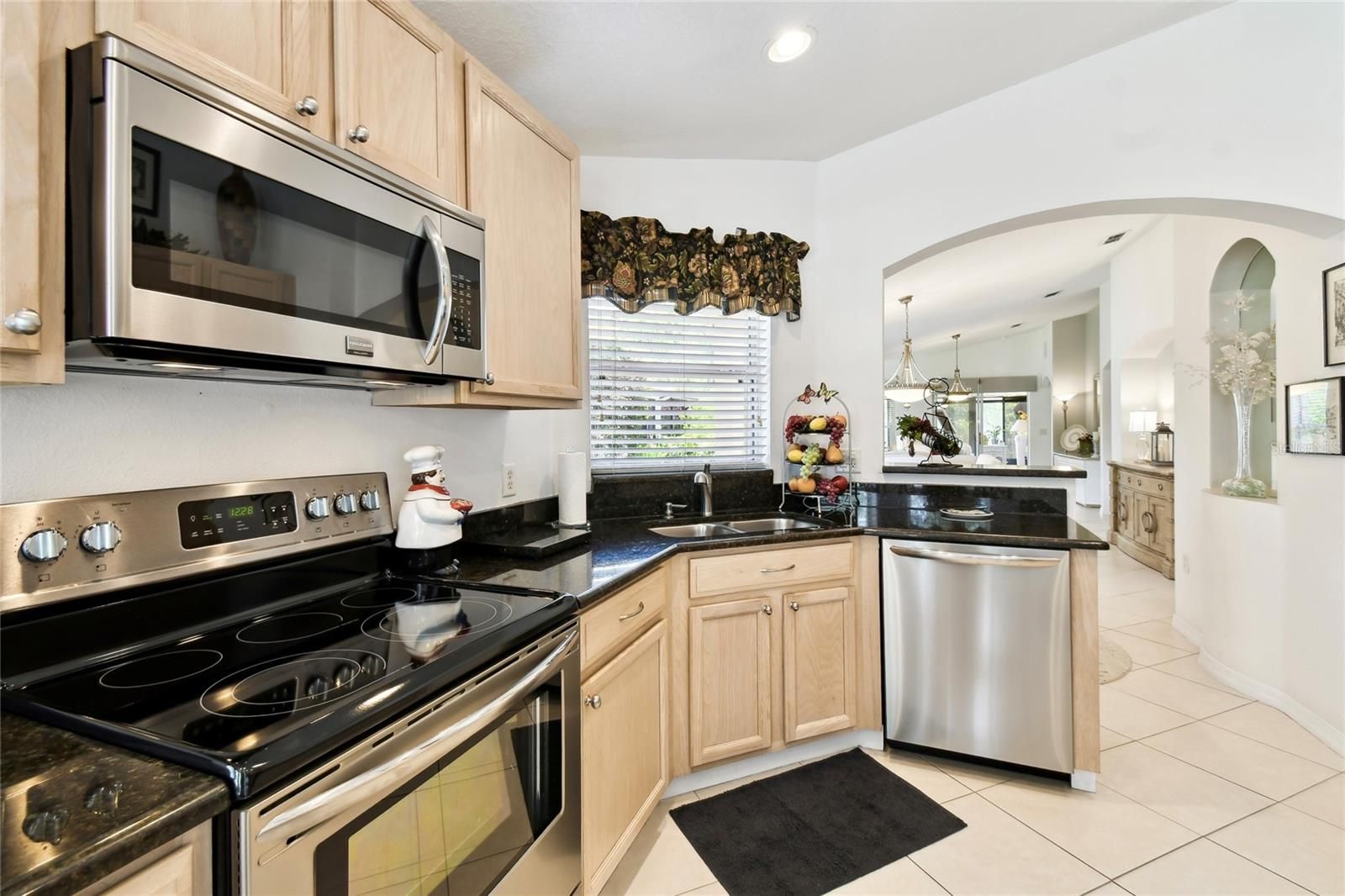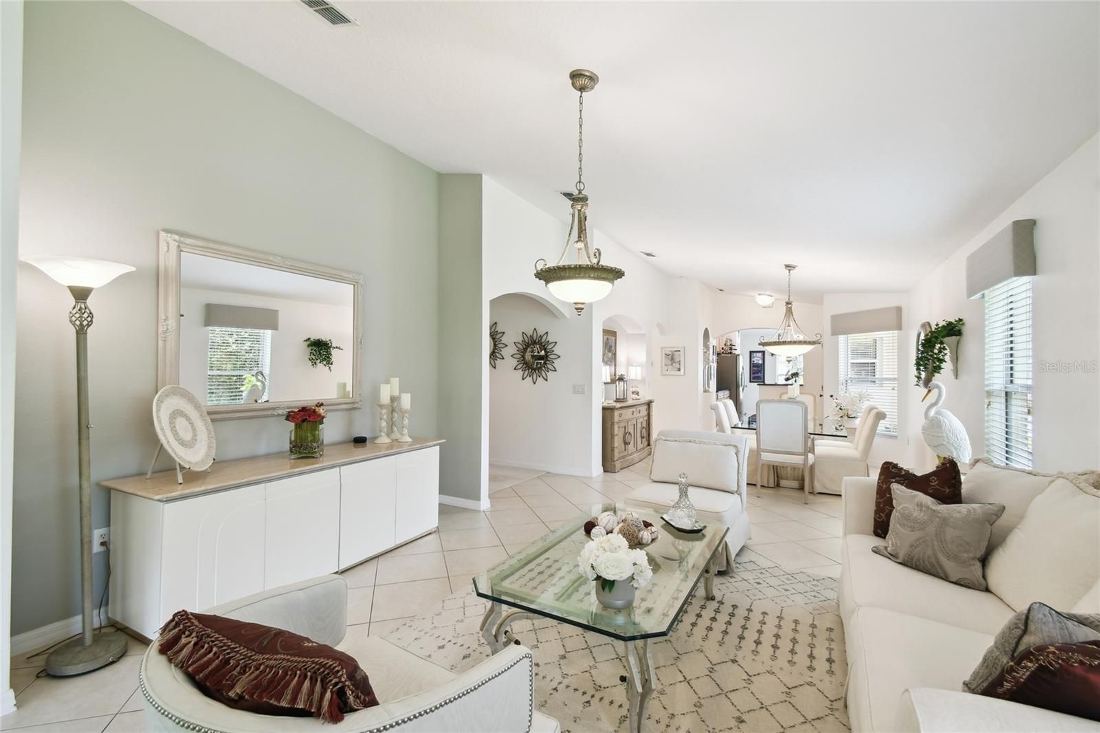 LOVELY 2 Bedroom, 2 Bath plus den BORDEAUX Model with CANAL and CONSERVATION VIEWS! This OPEN FLOOR plan features 18” TILE ON THE DIAGONAL throughout the main living areas. The spacious living and dining room combination boasts VAULTED CEILINGS and abundant natural light, extending into an enclosed three-season room with tile flooring and tranquil views of the water way and nature preserve. ROOF was replaced in 2016. HVAC replaced in 2015 and HWH 2024. Step outside to the tiled garden patio, the perfect spot to unwind in the evenings while enjoying the sights and sounds of nature. Recently added rear awnings (2025) provide shade, comfort, and a touch of character to the outdoor living space. The kitchen offers GRANITE countertops, stainless steel appliances, plentiful cabinetry with ROLL-OUT SHELVES, a closet pantry, and a sunny BREAKFAST NOOK. An open half wall connects the kitchen to the dining area, making it perfect for entertaining.The PRIMARY SUITE includes cozy carpet, 4 foot extension with BAY WINDOW bump-out, and two walk-in closets. Its ENSUITE BATH features DUAL SINKS with granite counters, a WALK-IN SHOWER, and a linen closet. The guest bedroom showcases PLANK -STYLE TILE flooring and is adjacent to the second full bath with a glass-enclosed shower/tub combo. The carpeted DEN, located just off the living room, provides a flexible space perfect for a TV room, home office, or craft area. The exterior showcases a STONE VENEER façade and lush landscaping. Additional features include a separate laundry room with cabinetry and washer/dryer included, as well as a garage equipped with a utility sink and pull-down attic stairs. Located in Solivita, an award-winning 55+ community, this home offers more than just a place to live—it’s a lifestyle. Start your mornings with a workout or a swim, spend afternoons on the golf course or joining one of the 200+ clubs, and end your evenings enjoying dinner with friends or a peaceful sunset from your patio. With resort-style amenities including multiple clubhouses, fitness centers, pools, tennis, pickleball, dining, and endless activities, Solivita has something for everyone looking to enjoy an active and social lifestyle. The HOA: - maintains the LANDSCAPING & IRRIGATION systems in the common areas as well as at individual homesites - maintains the roads throughout the community - PROVIDES SECURITY with gate guards and mobile patrols including the Polk County Sheriff - allows AUTOMATED GATE ACCESS for residents via license plate readers - provides residents with Fiber Optic Internet & TV service.***Poinciana Lakes Plaza is a MAJOR NEW SHOPPING CENTER that opened directly across from the Solivita Main Gate in Summer of 2024. It features Sprouts Grocery, TJ MAXX, Ross, Burlington, Rack Room Shoes, 5 Below, Ulta, Outback, First Watch, 5 Guys, Urgent Care, Dentist, TD Bank, Petco & Hair Cuttery PLUS MORE TO COME.***