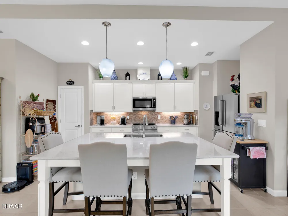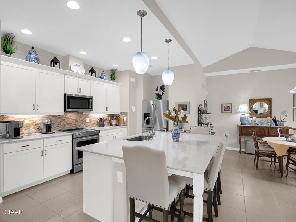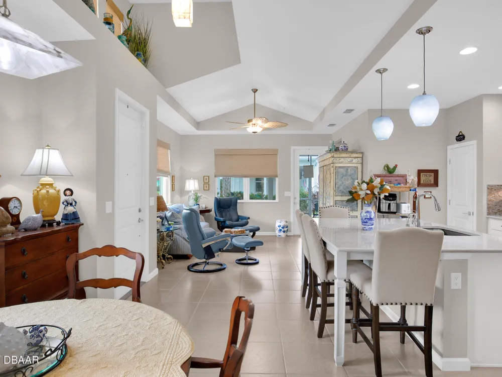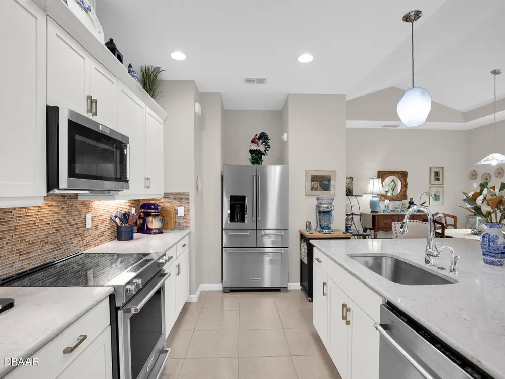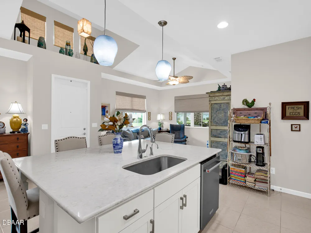 Stunning Aloha model! If you are looking for some beautiful UPGRADES, this is the one for you! Walk in and notice the tile floors throughout, Custom window treatments and window sills and BEAUTIFUL CUSTOM, alabaster light fixtures. The Vaulted ceilings allow for ample light throughout the living area. WHITE kitchen cabinets with crown molding and SOFT CLOSE drawers highlight the QUARTZ countertops. You will LOVE the extended island and take notice of the high end KITCHENAID appliances with NEW refrigerator! The QUARTZ extends through to the bathrooms with a frameless, glass shower door in the primary bathroom. Other Upgrades to this home include the whole house gutters, FPL surge protector, Security with motion detectors and termite bond in place. You will LOVE the lanai WITH OPEN VIEWS across the street, complete with sun shade and 20/20 mesh to keep out the bugs. *Latitude Margaritaville is a 55+private, gated community.3 heated pools including the resort style main pool... indoor lap pool, and outdoor sports pool. PRIVATE BEACH CLUB! Live music at the Bar and Chill Restaurant. Enjoy our NEW Sandbar restaurant! State of the art Fins Up Fitness Center, Mango Theater, dog park, PICKLEBALL, and TENNIS. Come visit this FINtastic community.