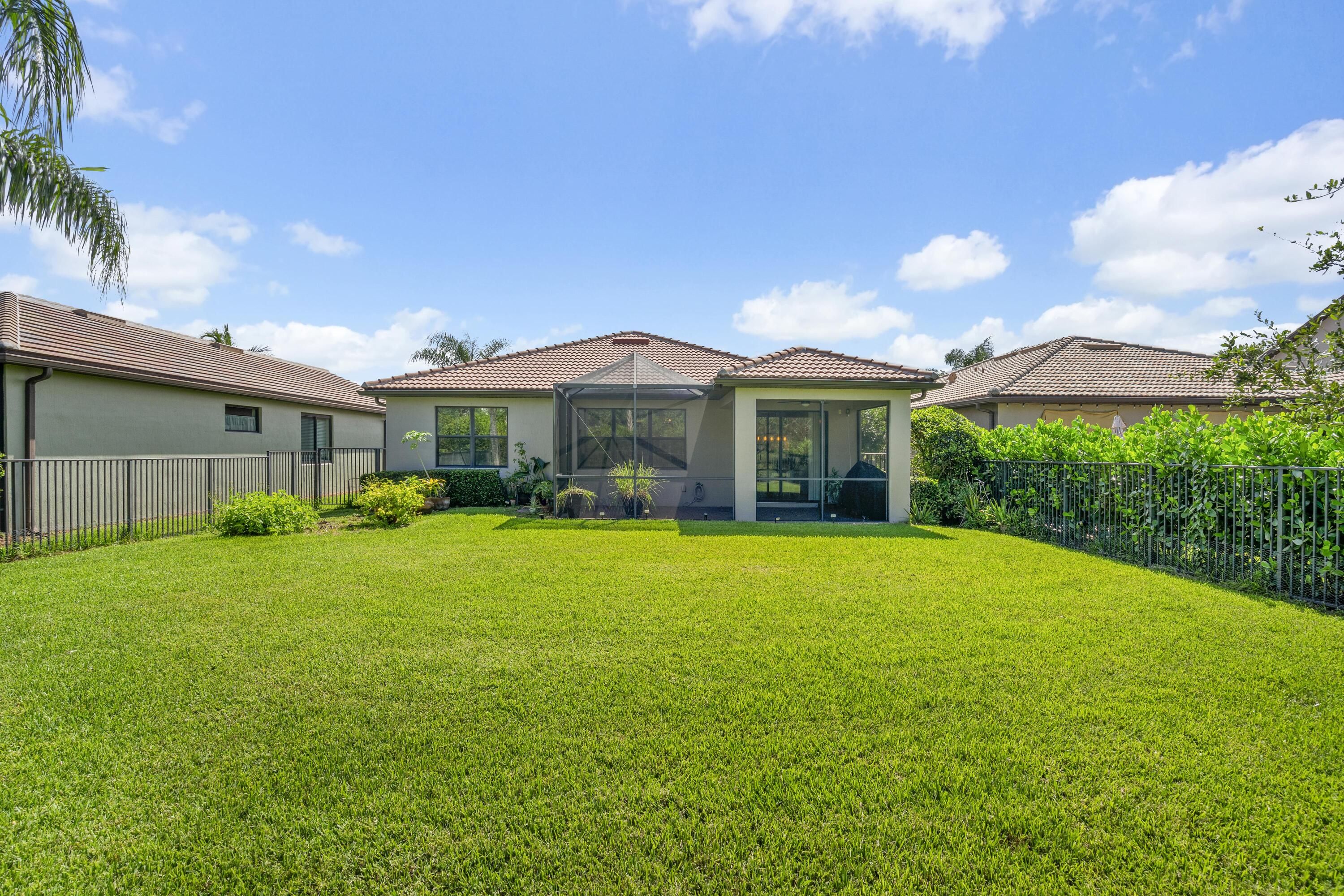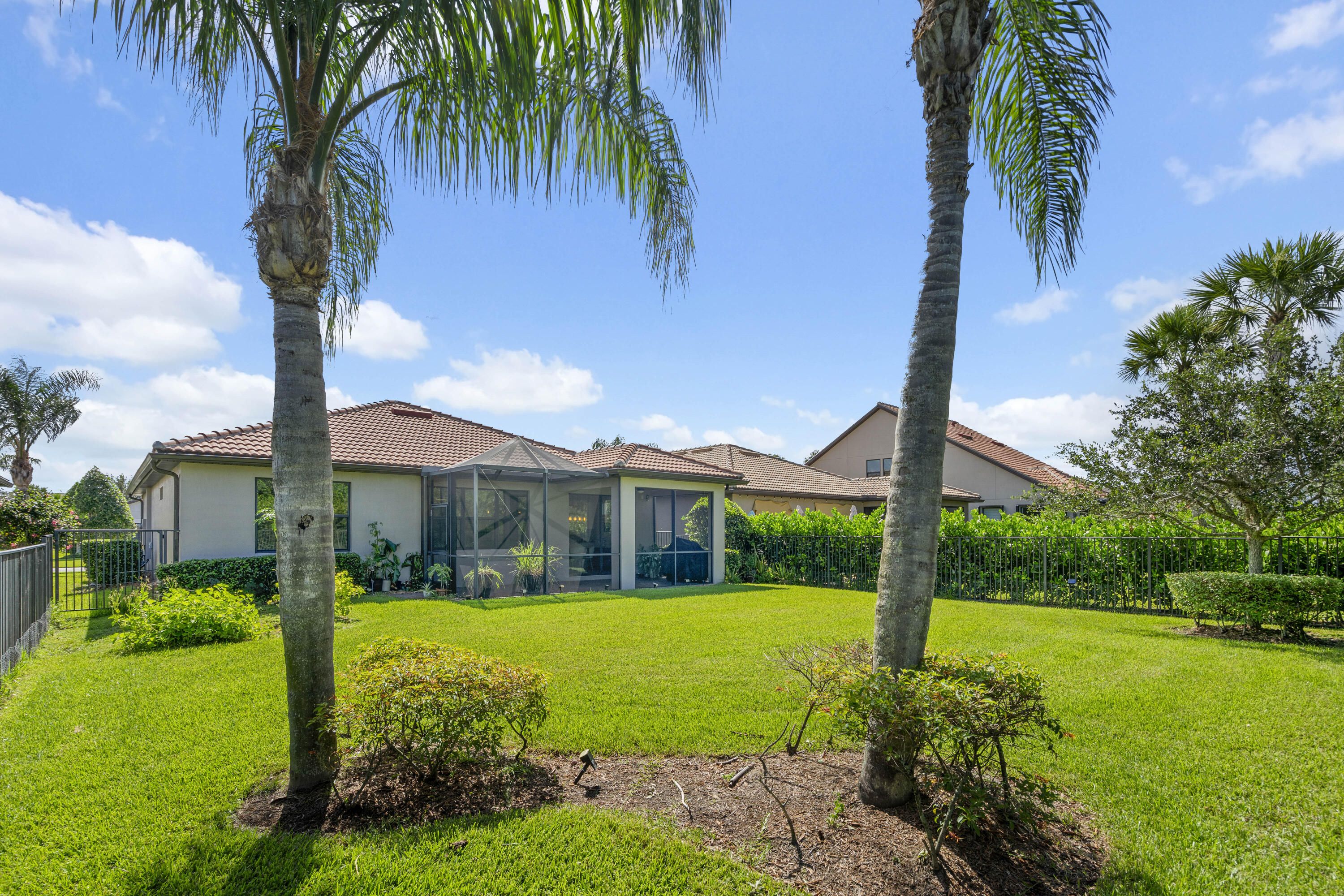 MOVE RIGHT IN! Gorgeous 3BR+Flex/2BA/2CG home with numerous upgrades and a private fenced yard in Veranda Gardens! This home features tile flooring throughout, plantation shutters, glass entry front door, NEW A/C, fresh exterior paint, pantry with custom shelving, screened & partially covered patio, additional flex space/office nook and more. The spacious white kitchen features a large center island, SS appliances, pendant lighting, tiled backsplash, granite counters, a gas range and large pantry. Open floor plan ideal for modern living. Master suite has views of the back yard as well as an ensuite with dual sinks, tiled shower and walk-in closet. Two guest bedrooms have access to a hall bathroom. The fully fenced and private back yard is a great spot for your furry family members. Veranda Gardens is a gated community nestled minutes from Palm City & Stuart with plentiful amenities including a clubhouse with playground, fitness center, multiple pools, dog park, pickleball, tennis, fire pit, outdoor bar/dining area, grilling areas and more. Great location to interstates, beaches, shopping, restaurants and schools. THIS HOME IS THE COMPLETE PACKAGE! Call today to view!