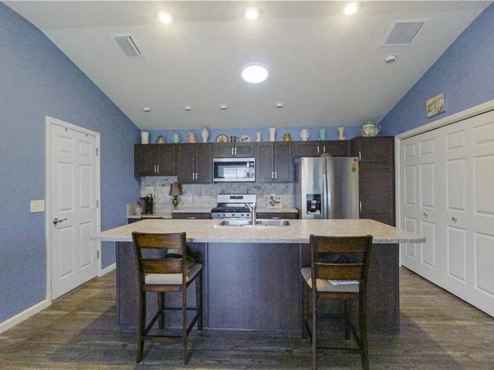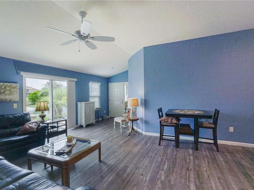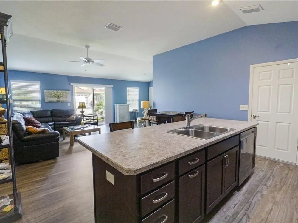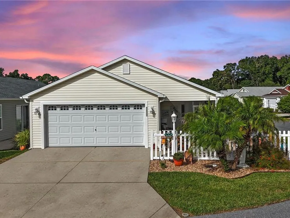Welcome Home to this stunning Topaz Patio Villa! Situated on a desirable corner lot, this villa is filled with natural light and offers a bright, airy feel thanks to the volume ceilings throughout. The kitchen stands out with rich cherry cabinetry, stainless steel appliances including a French door refrigerator and gas range, plus a solar tube that adds even more natural light. The home boasts luxury vinyl plank flooring throughout—with no carpet—for beauty and easy maintenance. One of the rare features of this model is the full 2-car garage, providing ample space for vehicles, golf carts, and storage. Additional upgrades include a gas tankless hot water heater for efficiency and convenience. This villa is ideally positioned between Brownwood Paddock Square and the future Eastport Square, offering easy access to entertainment, dining, and recreation. You’re also close to the Magnolia Plaza shopping center featuring a Publix, golf, pools, and all the lifestyle amenities The Villages is known for. Don’t miss this bright and inviting villa—schedule your showing today!