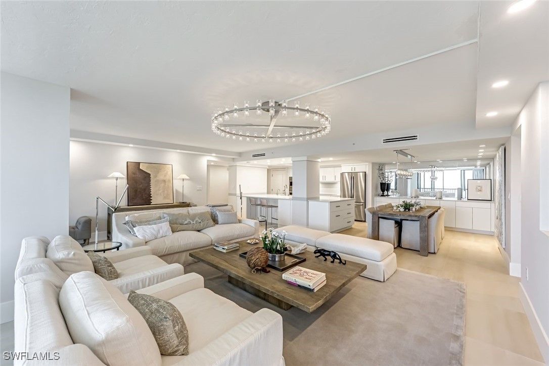 Stratford 1102 embodies effortless coastal luxury. This turnkey furnished 2-bedroom, 2-bath residence offers 2,009 sq. ft. of refined living space with sweeping views of the Gulf of Mexico. Most furnishings are from Restoration Hardware, blending modern elegance with relaxed comfort. The open living area features custom cabinetry, a sleek fireplace, and a large TV, ideal for entertaining or unwinding after a day at the beach. The chef’s kitchen is thoughtfully designed with Bosch appliances and ample workspace. The primary suite is a tranquil retreat, complete with a spa-inspired bath, soaking tub, and heated towel rack. Located in Pelican Bay’s prestigious Stratford building, this residence provides access to world-class amenities, including private beach tram service, two beachfront restaurants, 18 tennis courts, 20 pickleball courts, kayaking, and paddleboarding. If you are looking for a community with a full array of fitness look no further. Pickleball, tennis, miles and miles of jogging and walking trails, canoeing, sea kayaking, yoga and weight training classes and personal trainers. Within Pelican Bay you will find a Publix, Ace Hardware, restaurants, quaint coffee shops and restaurants. All within walking distance in many cases. Pelican Bay offers some of the most luxurious high rises, and at the same time affordable condos starting at 600.000 up to over 30 million for a Gulf villa. short walk takes you to Artis–Naples and the Waterside Shops, home to Hermès, Tiffany, Saks Fifth Avenue, and the Apple Store. Enjoy breathtaking sunsets, lush surroundings, and the best of Naples luxury living — all from this exceptional 11th-floor home at The Stratford. SEE REMARKS