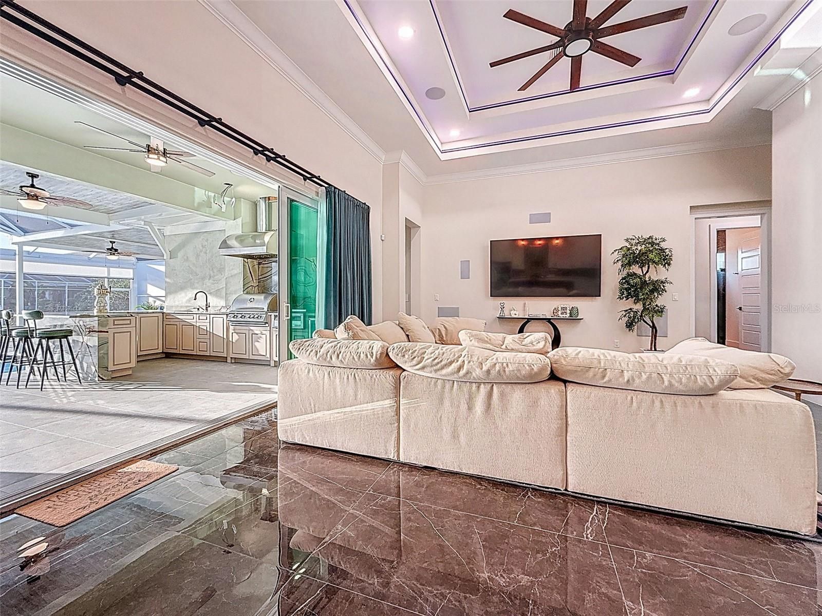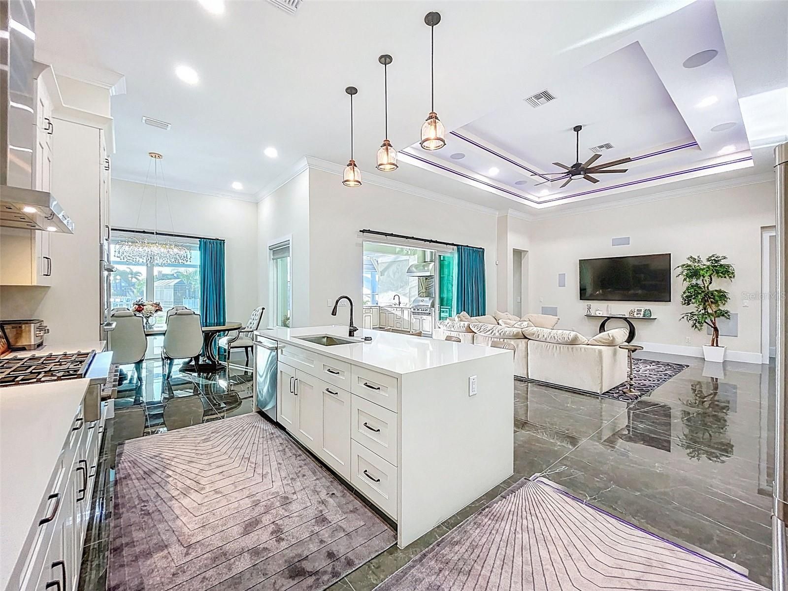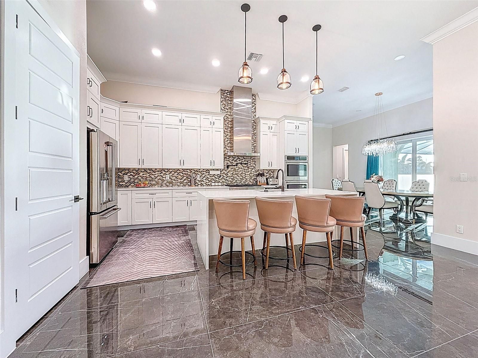 Enjoy resort-style living year-round in this stunning waterfront residence nestled in the prestigious, gated MiraBay. This exceptional home seamlessly blends luxury, comfort, and functionality, offering an unmatched coastal lifestyle just moments from open water access to Tampa Bay. Located on a saltwater canal, this property is a boater’s dream with a private dock and boat lift scheduled to be installed within 60 days, ideal for weekend getaways or spontaneous sunset cruises. Step into your private backyard oasis featuring a custom-designed saltwater heated pool and spa, complete with LED lighting. The expansive screened lanai is enclosed with a seamless panoramic cage, allowing for unobstructed water views while keeping insects, even Noseeums, at bay—ideal for year-round outdoor living. Entertain guests in your outdoor gourmet kitchen, thoughtfully appointed with weather-resistant HDPE cabinetry, striking granite countertops, a full suite of outdoor appliances, and a Japanese teppanyaki grill for memorable culinary experiences. A built-in kegerator with a custom ceramic dual-tap beer tower adds a fun and functional touch to this entertainer’s paradise. Inside, this meticulously maintained home features 3 spacious bedrooms, 3 full bathrooms, and a dedicated office adorned with built-in cabinetry — perfect for remote work or a quiet study space. The open-concept kitchen is the heart of the home, showcasing a sleek waterfall-edge quartz island, undermount sink, and premium stainless steel appliances. Luxurious marble flooring flows throughout the living spaces, complemented by soaring multi-tray ceilings with LED accent lighting that create a dramatic yet inviting ambiance. The wide pavered front porch and grand entryway provide striking curb appeal and a warm welcome for visitors. The primary suite is a true retreat, offering sliding glass doors to the lanai, serene canal views, and remote-operated blackout drapery for ultimate comfort. The en-suite bath is designed to rival a luxury spa, complete with elegant finishes and thoughtful details. All bathrooms throughout the home have been updated with high-end toilets featuring multi-setting electric bidets. Additional upgrades include a whole-home generator for peace of mind, a Culligan water treatment system, a full irrigation system, and a three-car garage with ample storage space. With no neighbor on the south side, the home also enjoys enhanced privacy. Integrated smart home technology allows you to manage pool settings, lighting, and more with ease, making this home as functional as it is beautiful. For buyers seeking a turnkey experience, all high-end furnishings are available to remain, making it possible to step right into the MiraBay lifestyle. As a resident of MiraBay, you’ll enjoy access to a wide array of resort-style amenities, including a state-of-the-art fitness center, luxurious clubhouse, tennis and pickleball courts, heated community pools with waterslides, and an on-site café. The community also offers complimentary use of kayaks, paddleboards, and other watercraft, perfect for exploring the beautiful surroundings. This home is more than just a residence—it’s a gateway to the coastal lifestyle you’ve been dreaming of. Don't miss this rare opportunity to own a waterfront retreat in one of Apollo Beach’s most sought-after communities. Schedule your private tour today and experience the perfect blend of elegance, functionality, and Florida living.