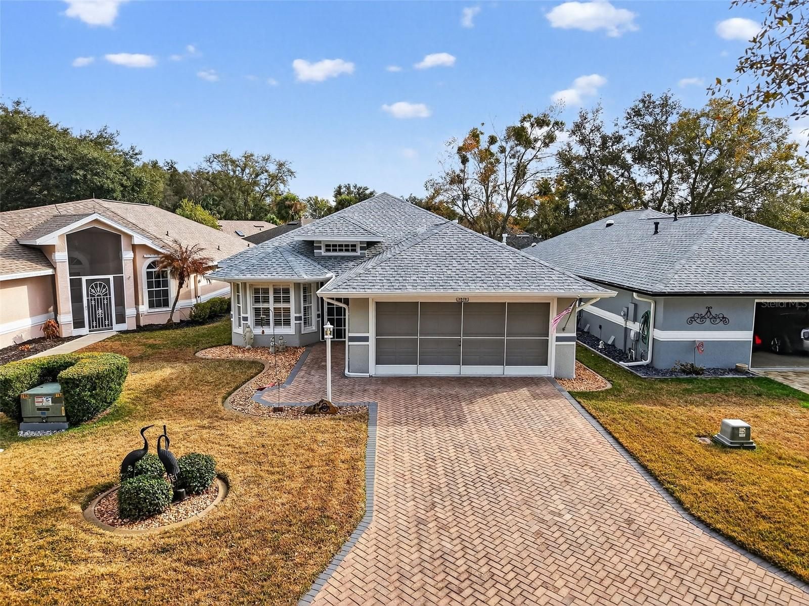 Nestled inside the sought-after 55+ golf community of Royal Highlands, this beautifully maintained 3-bedroom, 2-bath home offers comfort, thoughtful upgrades, and true pride of ownership. From the moment you arrive, the paver driveway and refreshed landscaping create welcoming curb appeal, while gutters with underground drains and leaf guards add long-term peace of mind. Inside, natural light and timeless finishes make the home feel warm and inviting. The kitchen is designed for both everyday living and effortless entertaining, featuring pull-out drawers, Moen fixtures, energy-efficient appliances, and a sunny breakfast nook. Plantation shutters throughout and solar screens on the windows enhance both privacy and efficiency. A solar tube brightens the living area, adding to the home’s open and cheerful feel. Royal Highlands offers residents an active lifestyle with an 18-hole golf course, indoor and outdoor pools, tennis and pickleball courts, a fitness center, and a full calendar of clubs and activities. Conveniently located near shopping, dining, medical facilities, and major roadways, this community is ideal for those seeking both relaxation and connection in a secure, well-established setting. The primary suite offers two walk-in closets with custom organizers and an en-suite bath with dual sinks, tall vanity, two exhaust fans, and thoughtfully installed accessibility rails. The split bedroom layout provides privacy for guests, making this home ideal for seasonal visitors or extended stays. Major system updates include a brand new roof, a 16-SEER HVAC system (2012) with blue light filter and convenient condensate clean-out access, a 2015 water heater, and a 2020 garage door opener. Additional highlights include a whole-house water filtration system, new microwave, oversized garage with utility sink, pull-down attic access with metal ladder and lighting, and meticulous interior and exterior paint updates that keep the home feeling fresh and move-in ready. This is a home that has been consistently cared for—where maintenance has never been deferred and upgrades were made with intention.