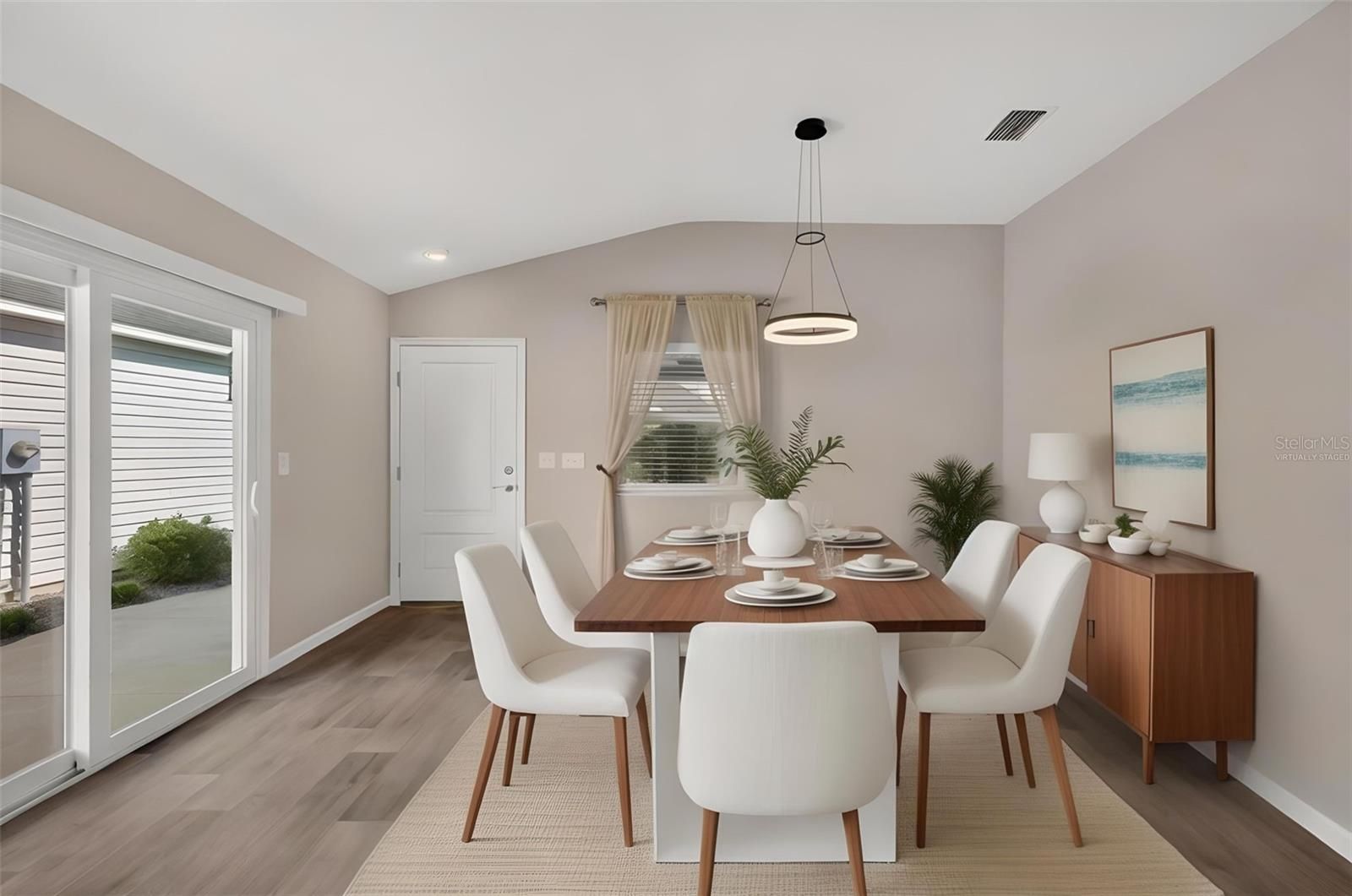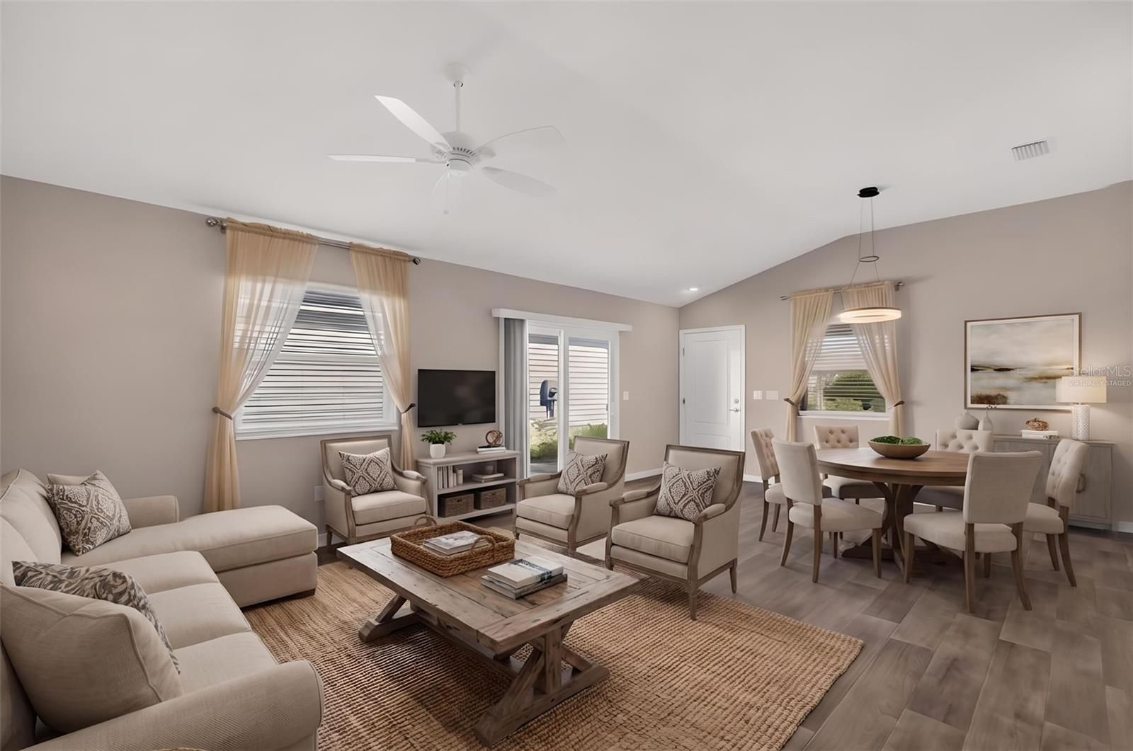 One or more photo(s) has been virtually staged. Enjoy the ease of Florida living in this GORGEOUS, METICULOUSLY-MAINTAINED 2/2 Ruby Patio Villa featuring an INTERIOR LAUNDRY and SPACIOUS FRONT and SIDE PATIOS with REAR PRIVACY FENCING - conveniently located in the Gracie Villas of the contemporary Village of Bradford - JUST MINUTES to Sawgrass Grove and the NEW Eastport Town Square with live nightly entertainment - and CR 44 with an abundance of shopping, dining, and more! As you arrive, this BEAUTIFUL home immediately captures your attention with its inviting white picket fence, LOW-MAINTENANCE STONE landscaping, and EXPANSIVE front and side patios—perfect for soaking up the Florida sunshine or hosting memorable gatherings with family and friends! From the patio, step into the screened lanai, complete with a ceiling fan and PAINTED floor, offering a serene space to unwind with your morning coffee, evening drink, or your favorite book. Enter into the OPEN CONCEPT layout of the living, dining, and kitchen boasting HIGH VAULTED ceilings and RICH, WOOD-GRAIN LUXURY VINYL PLANK flooring. The SPACIOUS main living area offers a set of sliding glass doors to the side patio and two LARGE windows, for ABUNDANT NATURAL LIGHT. The kitchen is a chef’s delight showcasing CHARCOAL SHAKER cabinetry with PULL-OUTS, TWO built-in PANTRY closets, STAINLESS appliances, under-cabinet lighting, TWO corner Lazy Susans, and a counter-height EAT-IN breakfast bar, for casual dining. The primary suite features a VAULTED ceiling and a GENEROUS WALK-IN closet. Its well-appointed en-suite bathroom offers CHARCOAL SHAKER cabinetry and a WALK-IN shower. Bedroom two offers a VAULTED ceiling and a built-in closet, while the second bathroom features a CHARCOAL SHAKER vanity, tub/shower combination, and a hallway LINEN closet. A CONVENIENT, INTERIOR LAUNDRY closet offers additional shelving for EXTRA STORAGE needs. Completing the package is an 18’x24’ one and a half car garage with a UTILITY SINK, shelving, a whole-house NOVA water filtration system, and PLENTY of space for a car and golf cart! DON’T MISS YOUR OPPORTUNITY to make this INCREDIBLE HOME YOUR OWN! The vibrant Village of Bradford is just minutes from Brownwood, Sawgrass, and the NEW Eastport Town Squares! Close to Southern Oaks Championship Course; Longleaf, Loblolly, Lowlands, Red Fox, and Gray Fox Executive Golf Courses; Marsh View Pitch and Putt; Ezell, Rohan, and Everglades Regional Recreation Complexes; Bradford, Aviary, and Chitty Chatty Neighborhood Recreation Centers; Hogeye Walking and Biking Trails; Rupert Canine Park; Magnolia and Lake Deaton Shopping Plazas and CR 44 with a plethora of shopping, dining, banking, medical, and more! PLEASE WATCH OUR WALKTHROUGH VIDEO of this INCREDIBLE HOME in a FANTASTIC LOCATION!