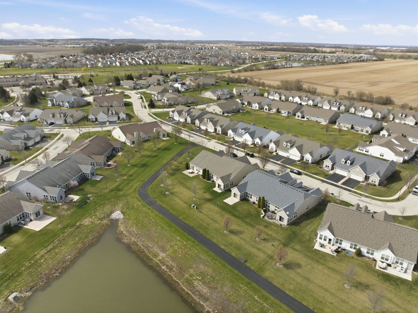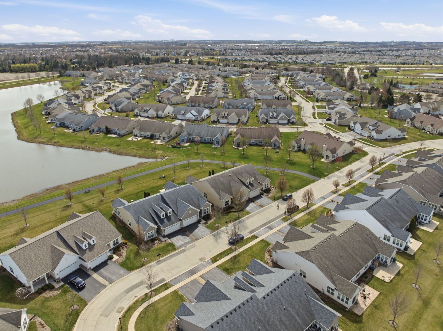 Wow!! Click 3D Tour and Enjoy! Spacious 1/2 Duplex, Ranch, 2 bedroom, 2 bathroom townhome! Enjoy the feel of single-family living in this beautiful, newer construction townhouse featuring an open floor plan and abundant natural light. The updated kitchen offers custom cabinetry, granite countertops, an island, and stainless steel appliances perfect for everyday living and entertaining. Enjoy a rear facing sun room that looks out at the picturesque backyard with a pond for a gorgeous view. The primary suite features a large walk-in closet, and a private luxury bath. A versatile den provides the perfect space for a home office, library, or additional sitting area. Step outside to a private patio overlooking a beautifully landscaped green area and pond, offering a peaceful setting. Amenities of the community include 2 pools, indoor and outdoor, Clubhouse, Pickle Ball Courts, Bocce, Fitness Room, Walking Trails, and a 3-hole Golf Course. Excellent location, just minutes from major expressways, shopping, dining, and Forest Preserves. Don't miss out- this one checks all the boxes!