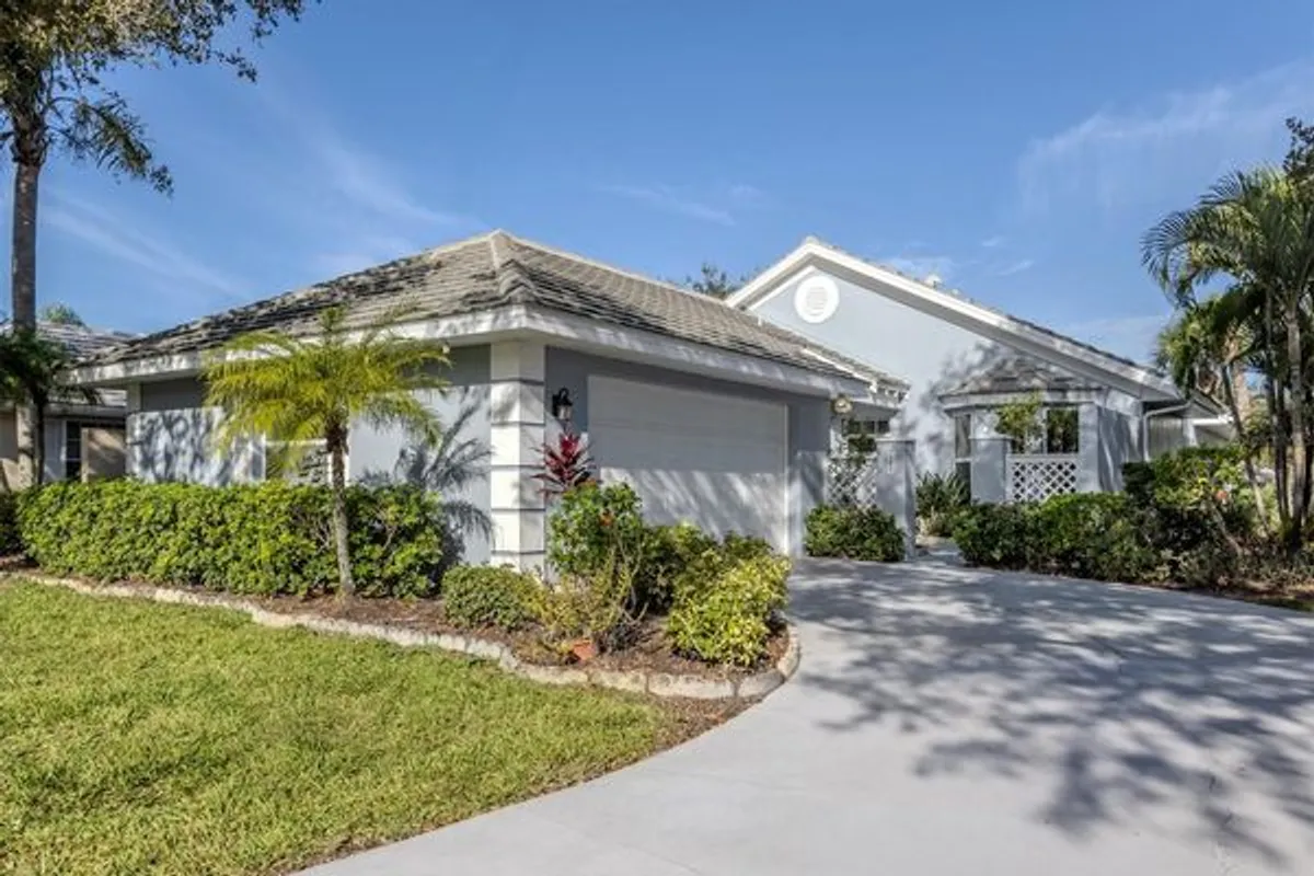 What a great location! Situated in the popular gated, maintenance-free community of Clubside Villas at the Plantation, with its clubhouse and completely refurbished (2022) heated saltwater pool, this home is immediately adjacent to the Plantation Golf and Country Club, with two 18-hole golf courses, tennis courts, pickleball courts and many other activities. Optional memberships are available. Nearby is Wellen Park with new shops, restaurants and the spring training home of the Atlanta Braves at Cool Today Park. Also nearby is the City of Venice's shopping, restaurants, beaches and water sports. Enjoy this spacious two-bedroom plus a bedroom or den, free-standing villa with a two-car attached garage is move-in ready! This home was only used during the winter season for a number of years. Feel comfortable with a recent roof (2017). Moving from the ceramic tiled entry way into the kitchen with its gas-fired (propane) range and ceramic tiled flooring, to the extensive covered patio with ceramic tile flooring. The kitchen has a full set of convenient appliances, solid Corian counters, ceramic tile flooring and a well-lit breakfast nook. The open, high-ceiling, furnished dining/living area is ideal for entertaining and connects to the enclosed patio with sliding glass doors. The north-facing Florida room overlooks a substantial pond, fountain, mature plantings and beautiful trees. The large primary bedroom suite, with a large closet, has a bay window overlooking the pond and an entry to the adjoining Florida room. The En-Suite, windowed, primary bath has a large jacuzzi type tub, a separate glass doored shower, a dual vanity sink counter and a large walk-in closet. The guest bedroom also has a large bay window and En-suite bath with a tub and shower and window, as well as a full linen closet. A third bedroom or den has cabinetry with built-ins for a desk, ample space for a sleeper sofa and a light-filled atrium that holds outdoor plantings. Come take a look!