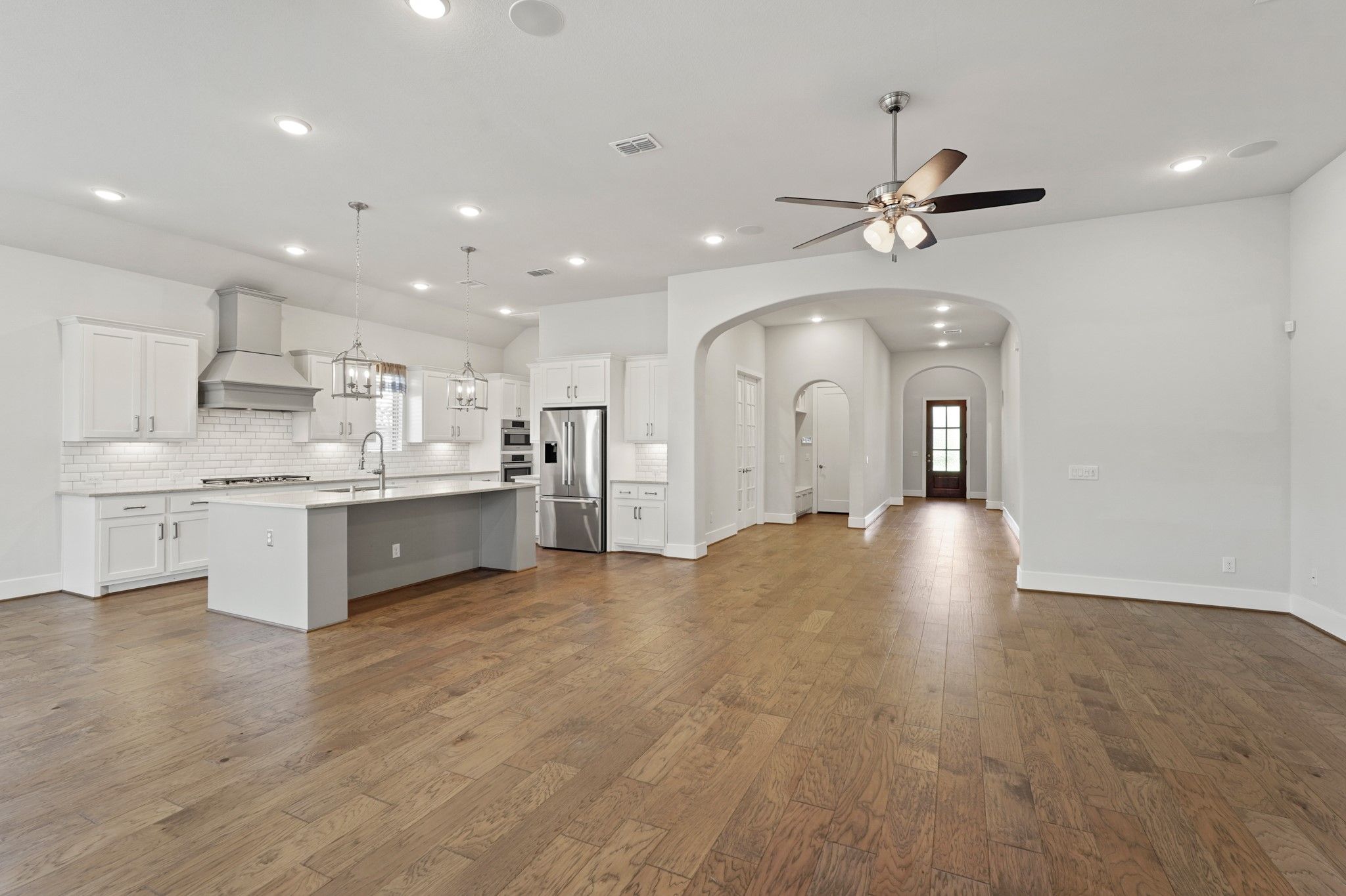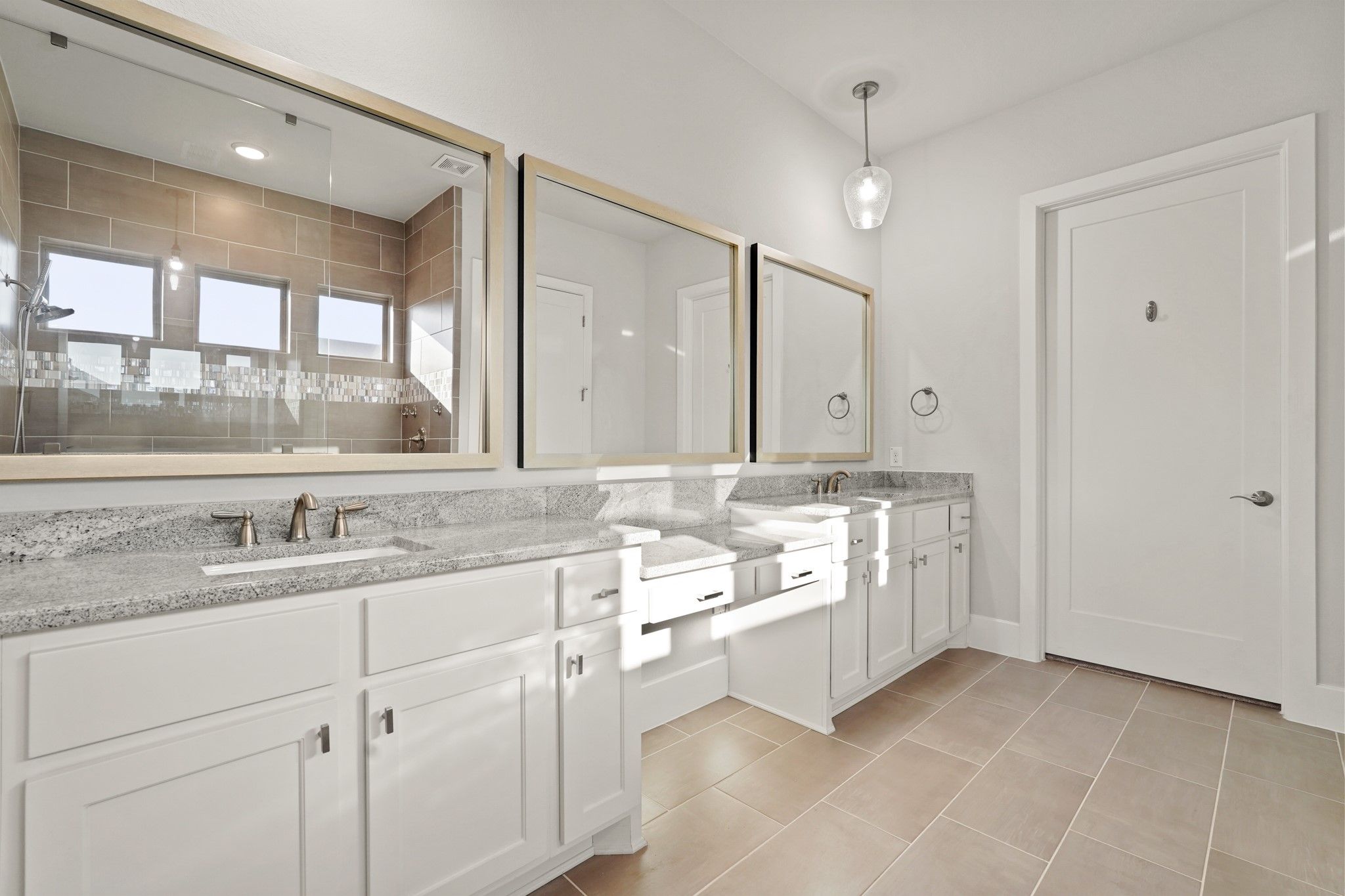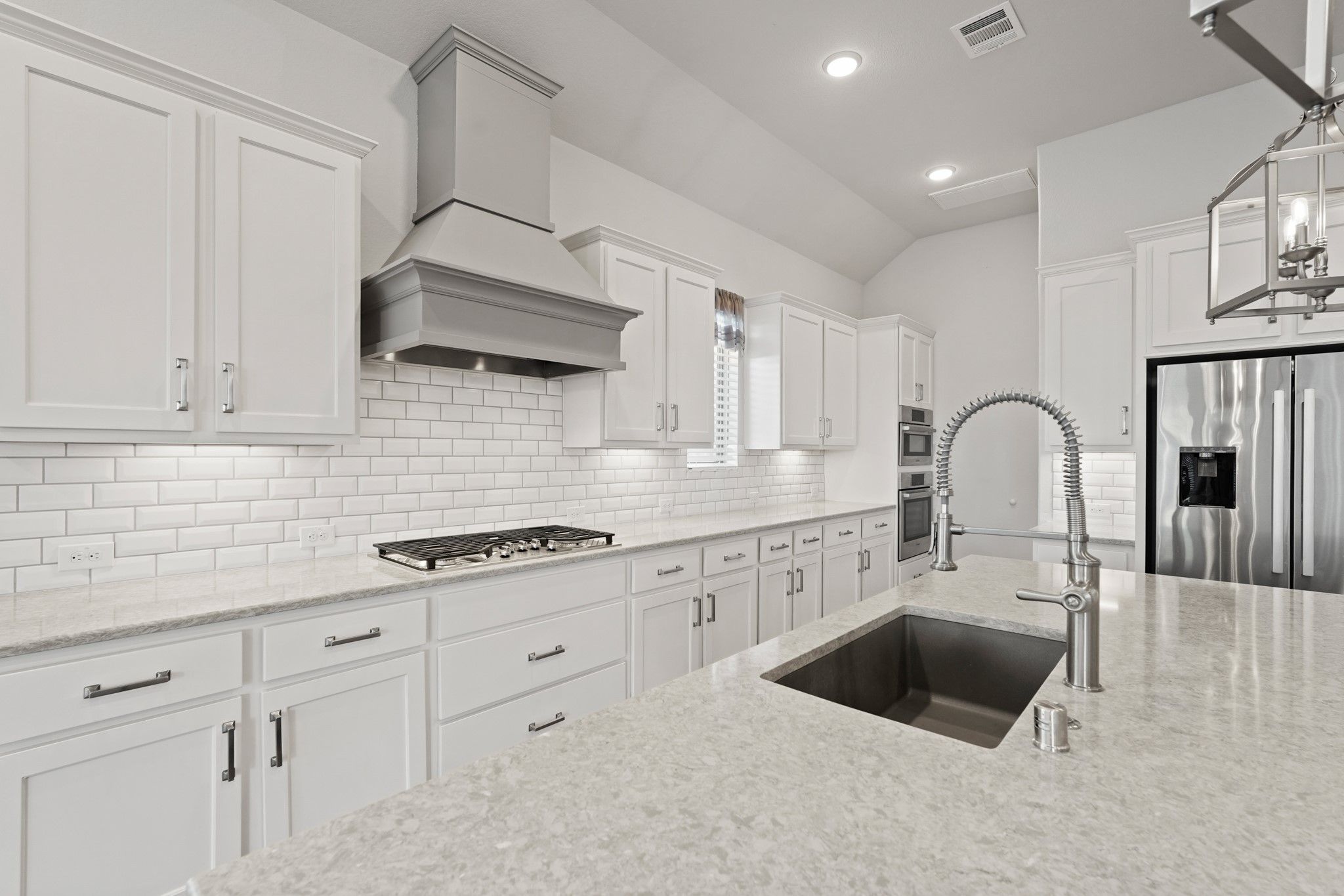 - Crown Molding, Double Vanity, Entrance Foyer, Kitchen Island, Kitchen/Family Room Combo, Bath in Primary Bedroom, Pots & Pan Drawers, Pantry, Quartz Countertops, Tub Shower, Walk-In Pantry, Wired for Sound, Window Treatments, Ceiling Fan(s), Programmable Thermostat