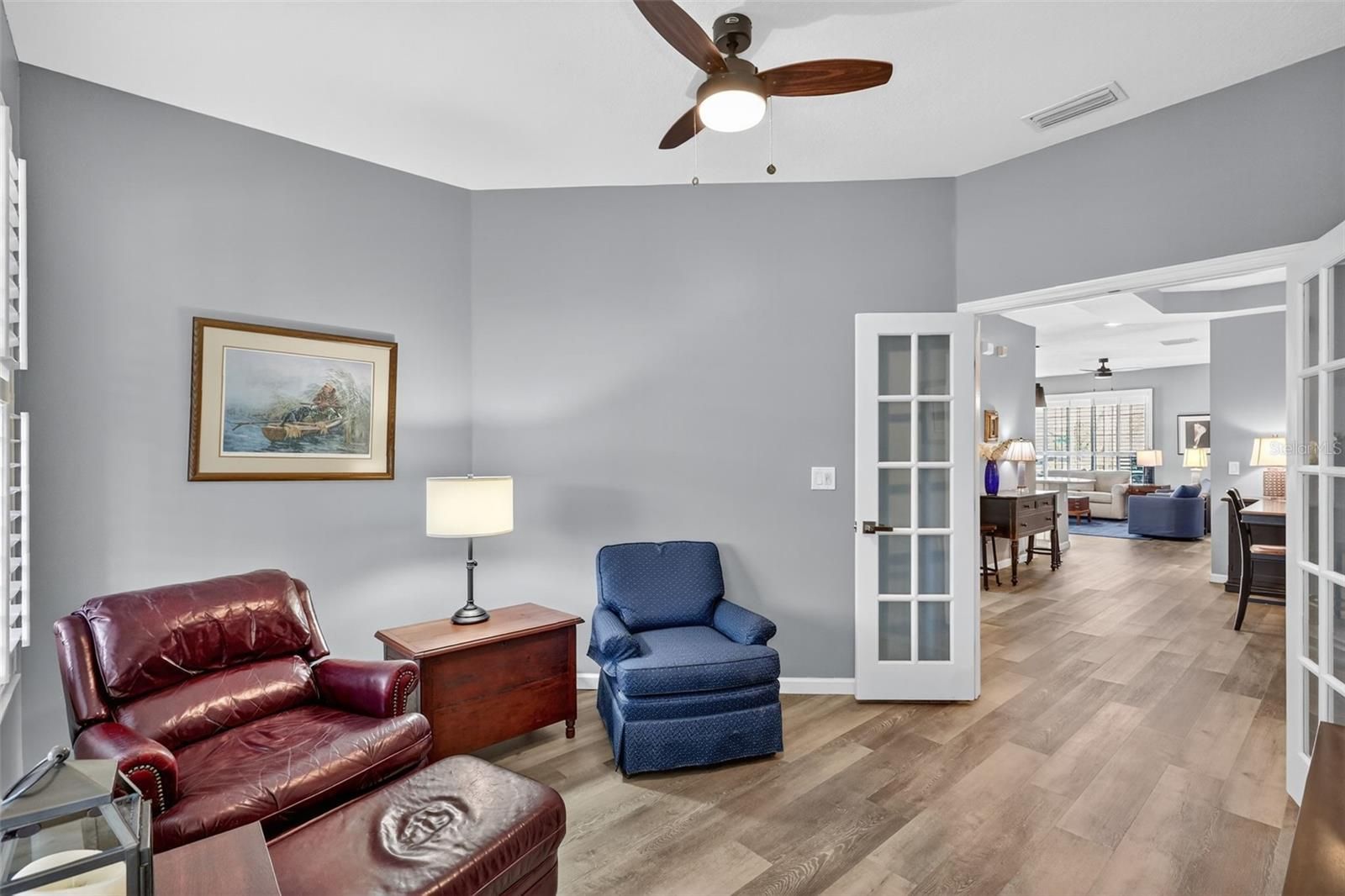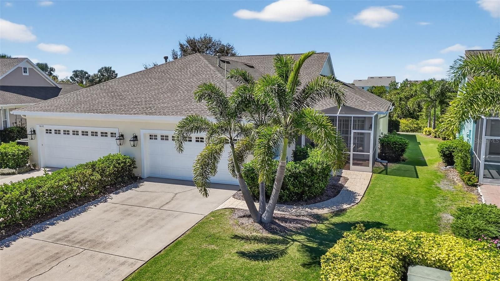 Welcome to your Coastal Community Paradise in Mirabay! This Fabulously Renovated Villa is Nestled between Lush Mangroves on a Canal at the front of the property, and a Serene Pond at the back of the property with Views from Both Patios! Enjoy Low Maintenance Living where The Landscaping & Lawn Care is Handled for you! This Truly Move-In Ready Home Offers Two Bedrooms, Two Full Bathrooms PLUS a Den/Office, in a very Open Floor Plan. No concerns with The Big-Ticket Items...They’ve Already Been Replaced! A New Roof (2023), A New AC System (both HVAC & Condensing Unit -2024), Water Heater & Water Softener (2021), Freshly Painted Interior (2020) & Newly Painted Exterior (2025)! From the moment you step inside, you’ll appreciate all the professionally completed High Quality Updates (2020-2022), Including Luxury Vinyl Flooring Throughout (Neutral & Easy to Maintain), A Delightful Kitchen that overlooks the Living Room and features Stunning Quartz Counters, Solid Wood Cabinets w/Crown Molding, Stainless Steel Appliances (all included), All New Decorative Hardware & Light Fixtures, a Breakfast Nook and Breakfast Bar. Both Bathrooms have also been recently renovated (2020-2022). Across from the Kitchen, you'll find a Laundry Room (Washer & Dryer also Included) with Built-In Cabinets, as well as a Spacious Dining Area with Tray Ceiling and can accommodate large dining set for bigger parties. The Roomy Primary Suite features a Double Tray Ceiling, and a Walk-In Closet with custom Built-in Shelving System. The Updated Primary Bath is adorned w/Quartz Counters, Solid Wood Cabinets, New Cabinet Hardware, Faucets, Light Fixtures, a Seamless Glass Shower w/New Tile, and A Built-In Storage Cabinet Unit that can also be used as a Wardrobe. Additional Updates include All New Light Fixtures throughout, New Ceiling Fans in Living Room, Both Bedrooms, Den (2020) & Covered Front Patio (2024), New Garage Door Opener (2022), New Doorknobs Throughout (2023), New Coach Lights (2025) and Plantation Shutters throughout. The Open Floor Plan in this home is Perfect for Entertaining, and the Split Bedroom plan provides privacy and a separate space for guests. This Home has Plenty of Windows that have pretty views and allow lots of natural light to flow through! Relax on your Back Lanai to watch the wildlife on the Pond OR enjoy a cup of coffee and a good book with a lovely view of the Conservation/Mangroves from your Screened Front Porch! Take advantage of all there is to do in Mirabay! Amenities include a Resort Style Pool w/ Water Slide, Zero Entry Wading/Swimming Pool, Lap Pool & Clubhouse w/Café, Fitness Center, Tennis & Pickleball Courts, Basketball Courts, Playgrounds, Kayak & Paddle Board use, Walking/Biking Trails and Plenty of Organized Events & Activities! Mirabay is conveniently located near area beaches, restaurants, shopping, banking, hospitals, and freeways for easy commute to Tampa, Sarasota and St Pete. Come make THIS HOME Your New Home in the Incredible Mirabay Community!