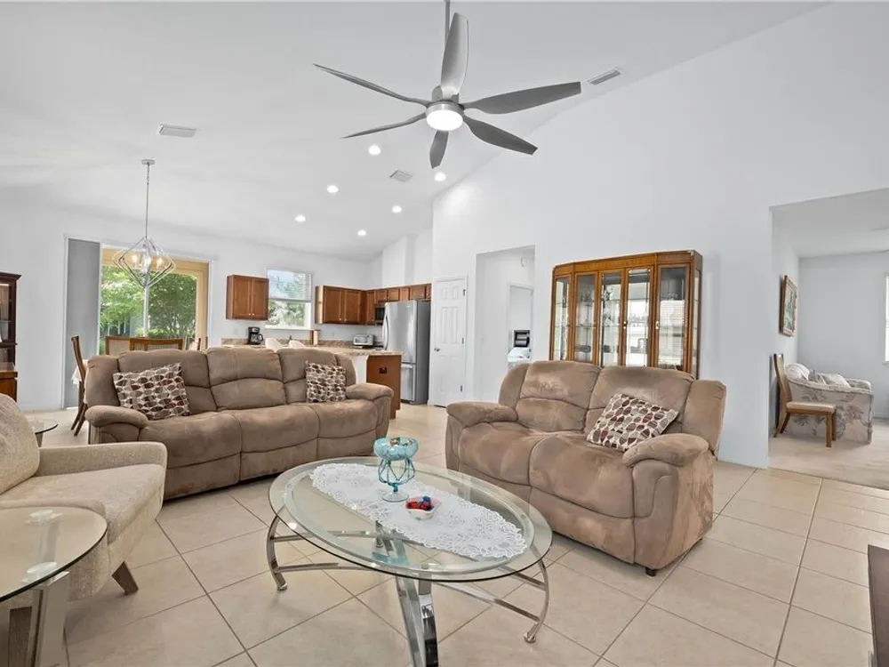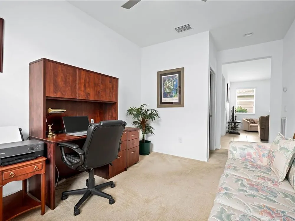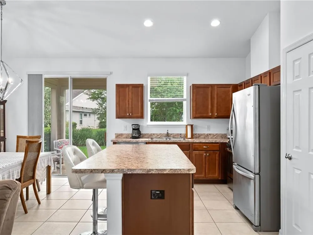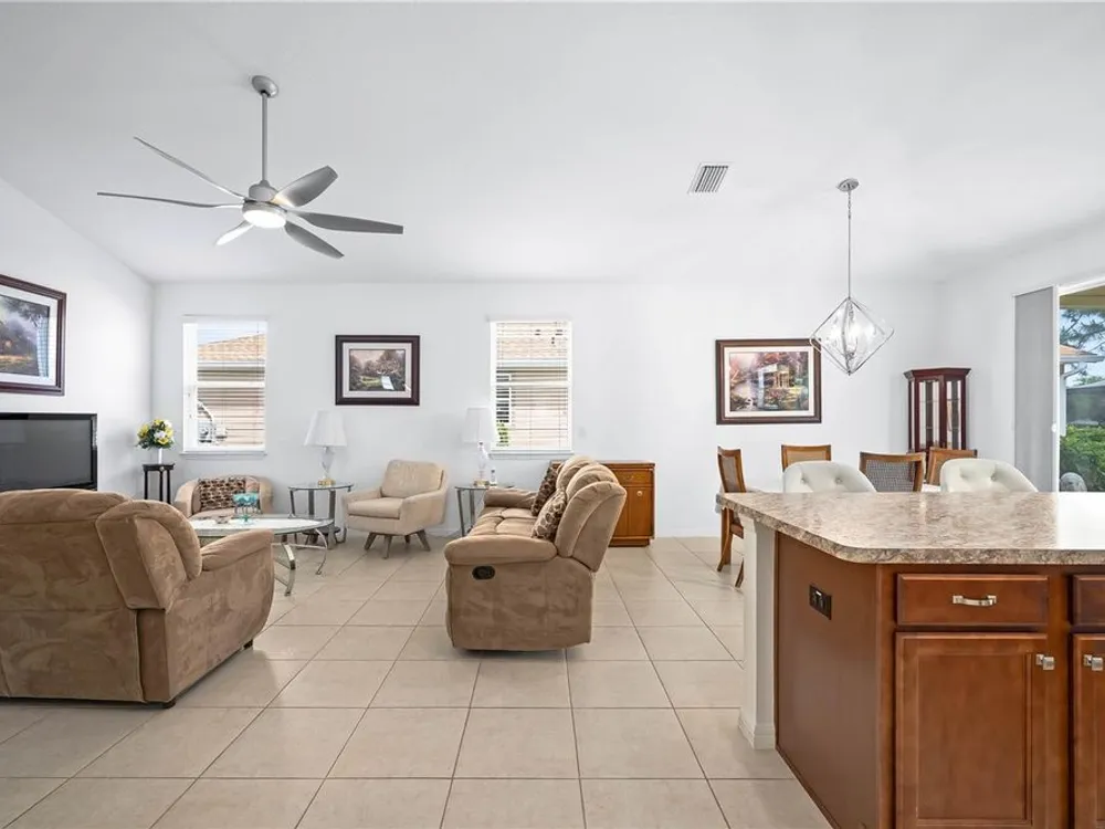 Welcome to this beautifully maintained Shea-built Rome model in the sought-after gated community of Ocala Preserve! This thoughtfully designed home offers 2 bedrooms, 2 bathrooms, a versatile den/office space, and a 2-car garage, all within 1,454 sq ft of comfortable under air living space?. Step inside to find tile flooring throughout the main living areas, with plush carpeting in the bedrooms for added comfort. The open-concept kitchen is the heart of the home, featuring a large center island, ample cabinetry, and plenty of counter space—perfect for everyday living or entertaining guests?. The living room flows seamlessly to the covered lanai, where you can sip your morning coffee or unwind in the evenings. The primary suite offers a peaceful retreat with a walk-in closet, dual vanities, and a spacious stand-up shower. The guest bedroom is generously sized with a built-in closet, and the guest bath includes a convenient shower/tub combo?. You’ll also appreciate the dedicated den/office space—ideal for working from home or your favorite hobby—as well as the indoor laundry room for added convenience?. All of this in Ocala Preserve, where resort-style living meets everyday comfort. Don’t miss the chance to call this one home!