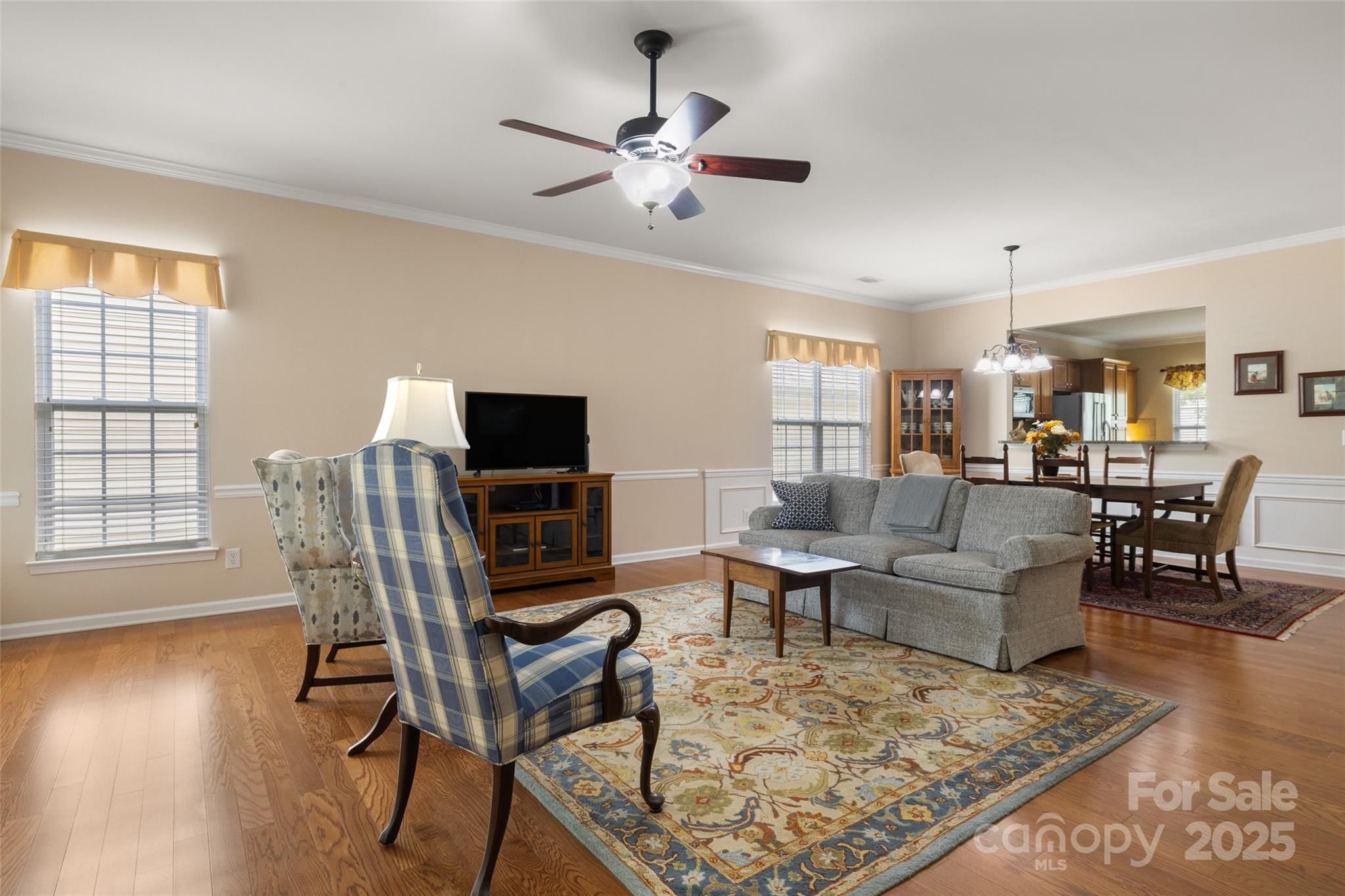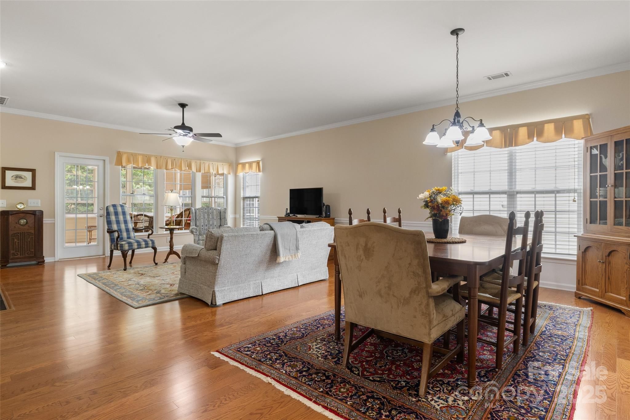 Turn-key meticulously maintained Willow Bend tucked away on a small cul-de-sac street! Gleaming hardwood floors & sunny open concept. Cook's dream with spacious island, stainless steel appliances, granite countertops, pull-out shelving & spacious pantry. Breakfast area and open dining space perfect for entertaining! All appliances remain, including refrigerator, washer & dryer. Gas log fireplace in great room with custom granite surround & heavy moldings. Screened porch was converted to 3 season room in 2013 to include vinyl windows, tile flooring and side shades. New A/C in 2024. Six zone irrigation added in 2015 w/ 4 sprinkler zones and 2 drip zones. Recently rebuilt deck w/ fresh stain & retractable awning. Bricked patio area surrounded by holly trees & privacy screen. Roof 2011. Dedicated golf cart outlet and garage surge protector. New garage door w/ windows added in 2018. Come see all that Sun City Carolina Lakes has to offer in care-free resort-style living every day!