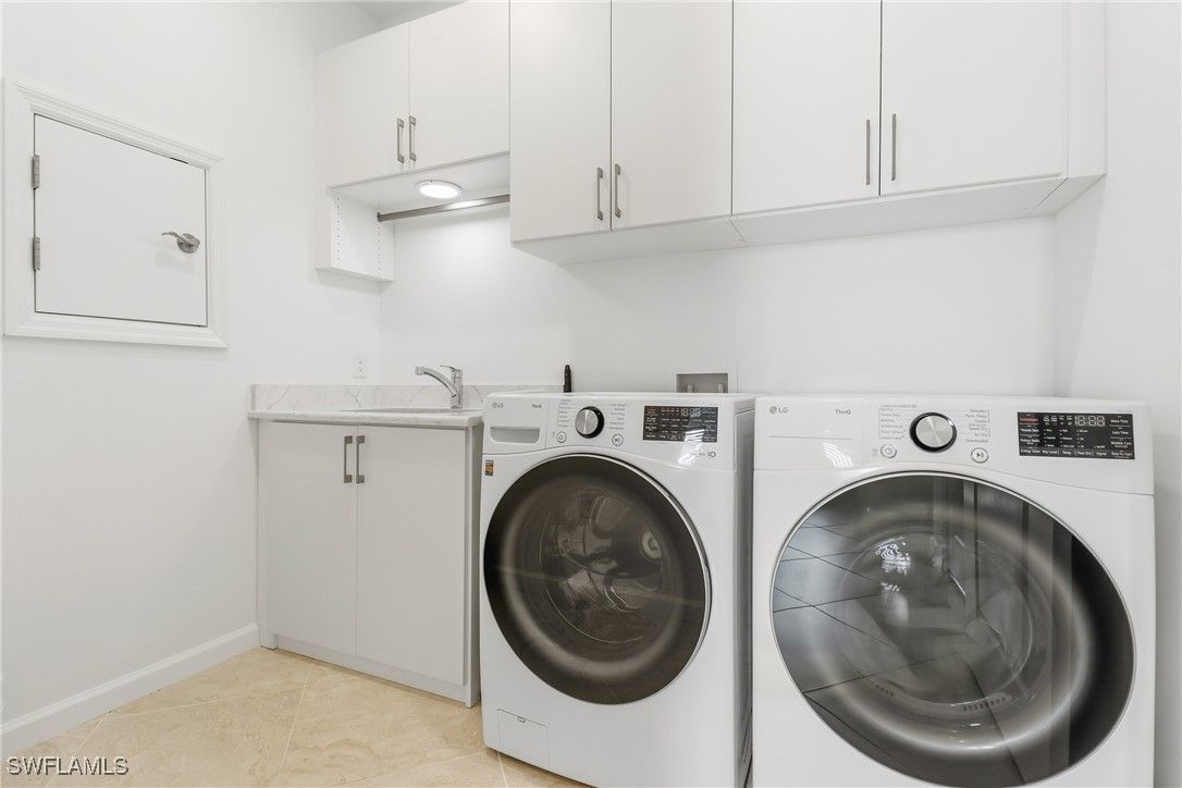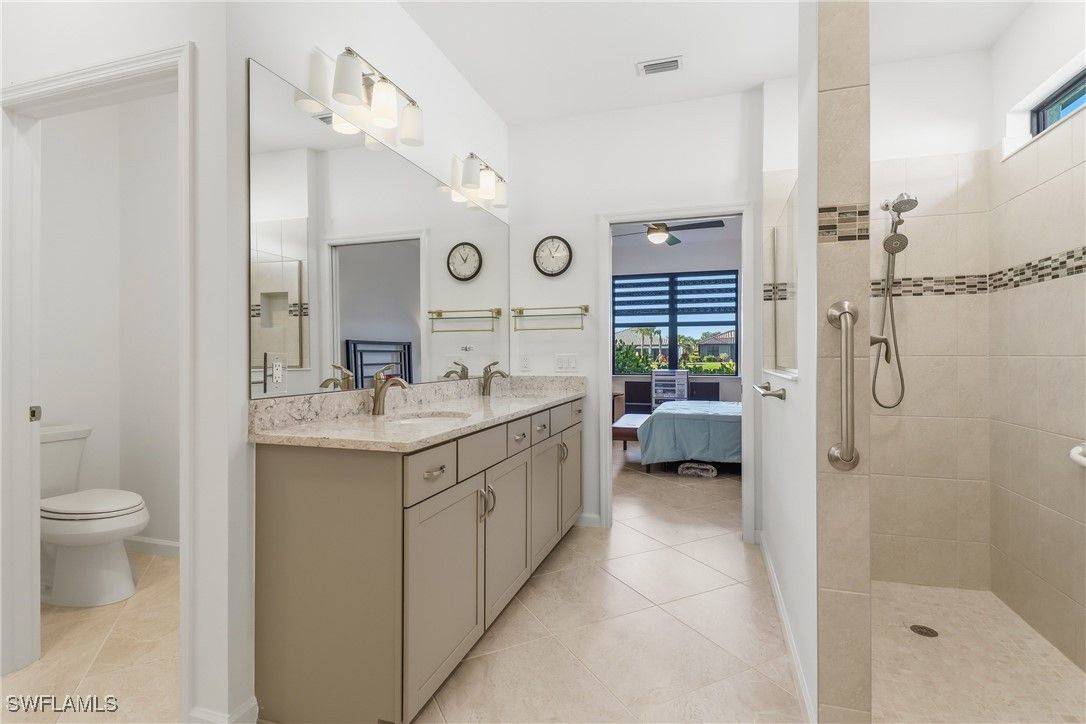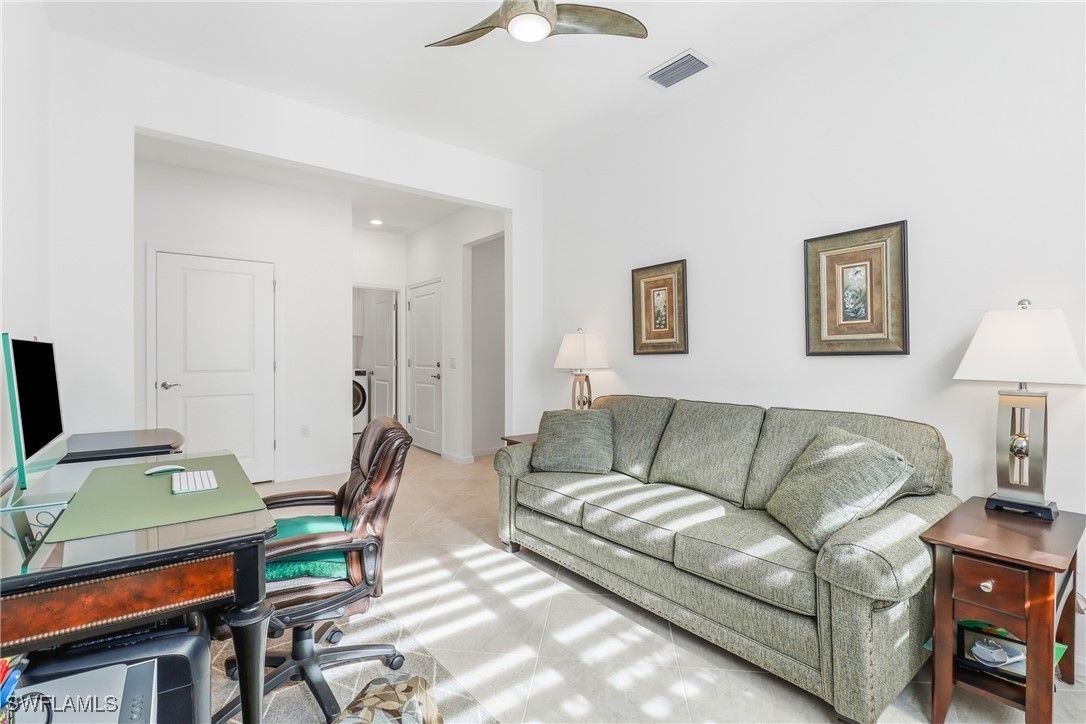 This spacious 2-bedroom/2 bathroom/versatile den Prosperity floor plan features $45,000 in owner-added improvements; including custom window treatments and cabinetry, an extended garage with custom cabinets and a polymer floor, a whole-house Kinetico water treatment system and an extended patio as well. There are also custom upgrades and features throughout. Also throughout, tile on the diagonal. Experience a fabulous gourmet kitchen with built-in stainless steel appliances, cooktop and oven plus quartz countertops and a beautiful custom backsplash. Custom laundry room cabinets, as well. Residents enjoy access to two world-class clubhouses— Oasis Club and Grand Hall that feature more than 30,000 square feet of amenities: including an 8,000 sq. ft. beach-entry pool and a lap pool, a state-of-the-art fitness center, golf simulator and fabulous on-site dining at The Rusty Putter Bar & Grille. Golfers of all skill levels can hit the links at the optional 18-hole championship course. Also, 12 lighted pickleball, tennis and bocce ball courts. All of this in addition to miles of walking and biking trails. With a chock full calendar of events from fitness classes to social gatherings and arts and crafts, Del Webb Naples offers a spectacular active adult lifestyle.