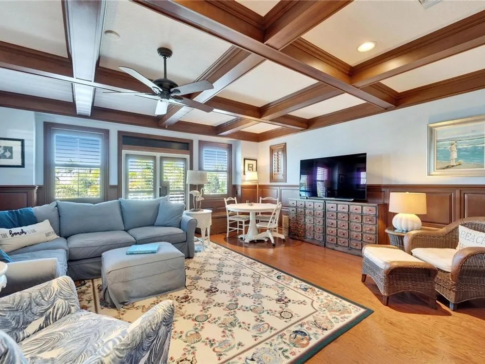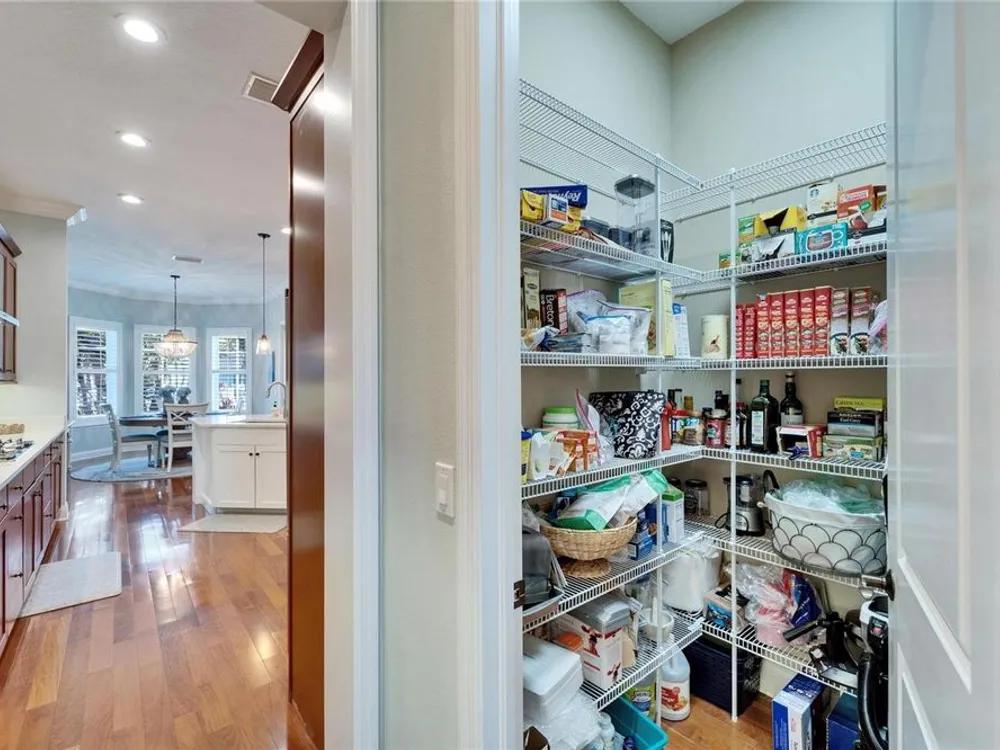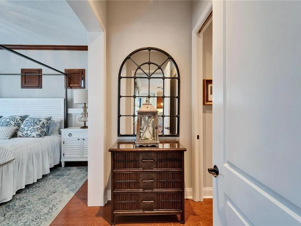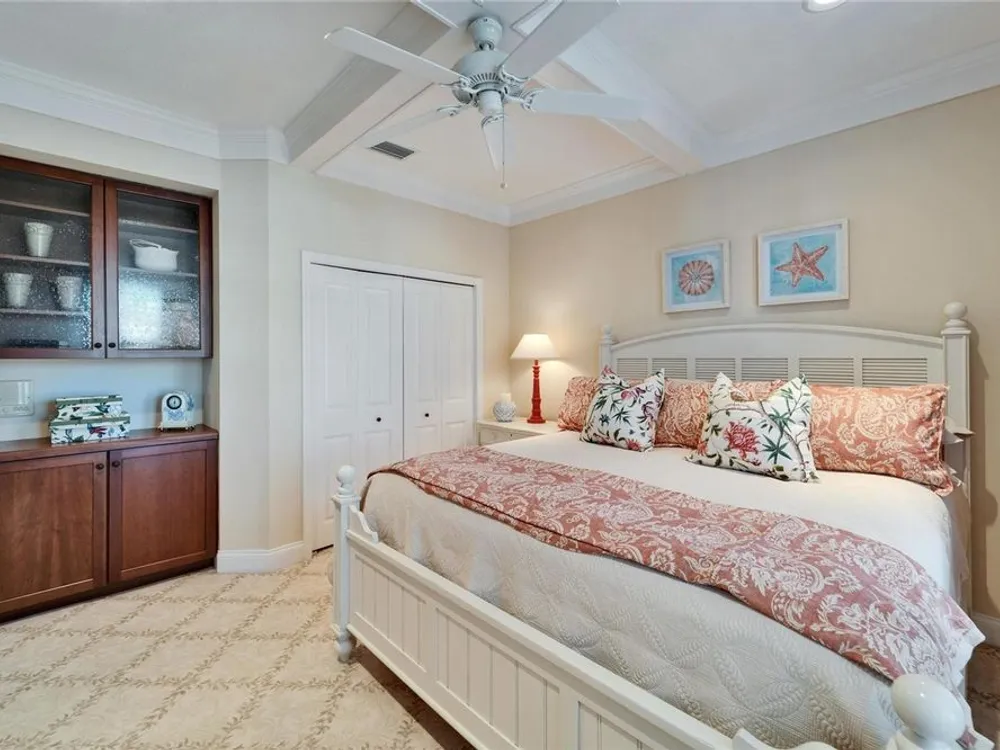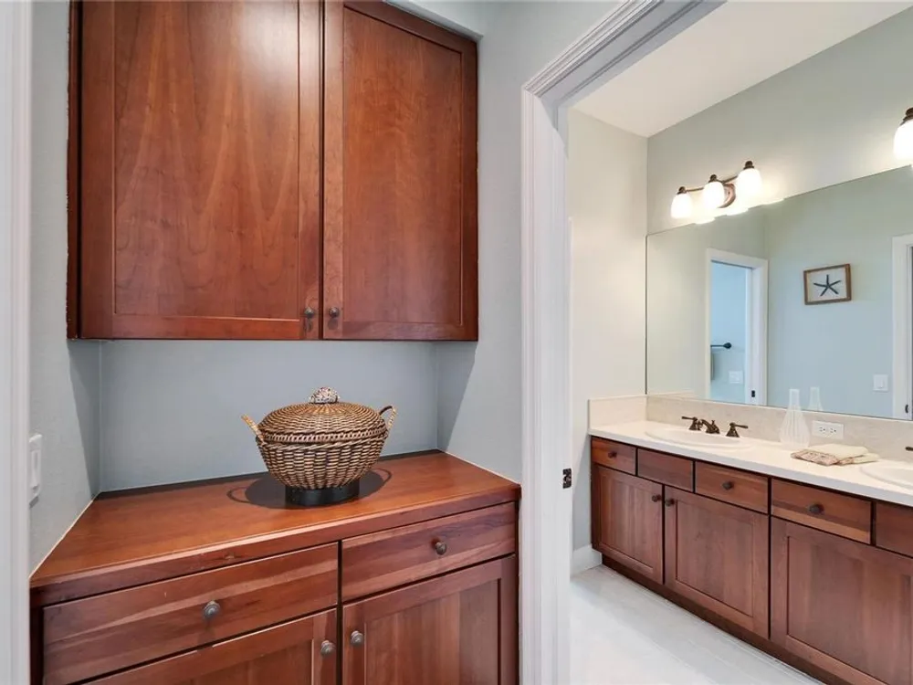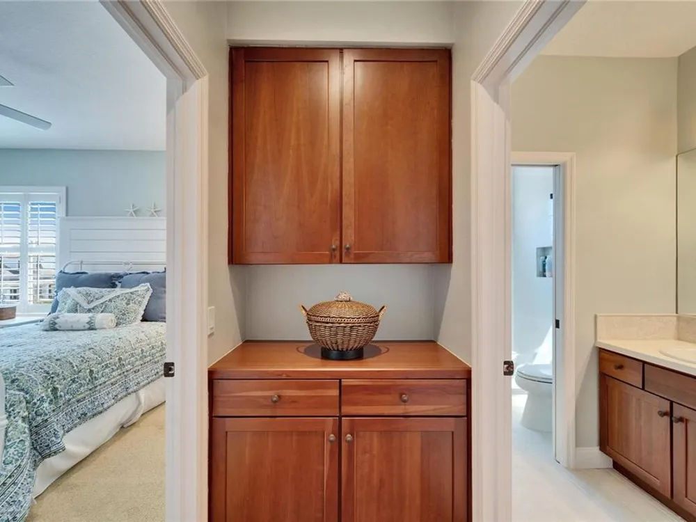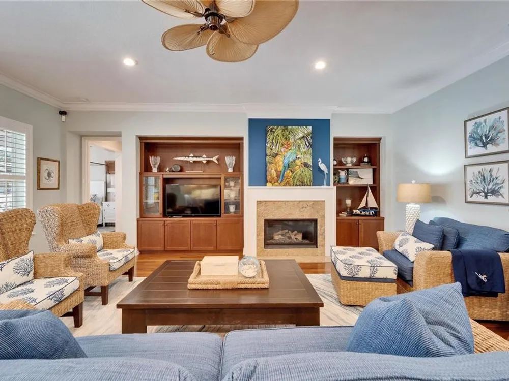 - Built-in Features, Ceiling Fan(s), Coffered Ceiling(s), Crown Molding, Eat-in Kitchen, High Ceilings, Kitchen/Family Room Combo, Open Floorplan, Main Level Primary, Solid-Wood Cabinets, Split Bedrooms, Stone Counters, Thermostat, Tray Ceiling(s), Walk-In Closet(s), Wet Bar, Window Treatments