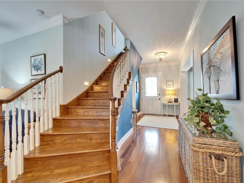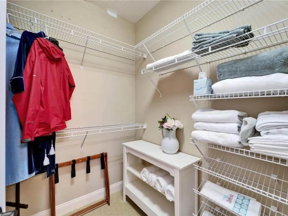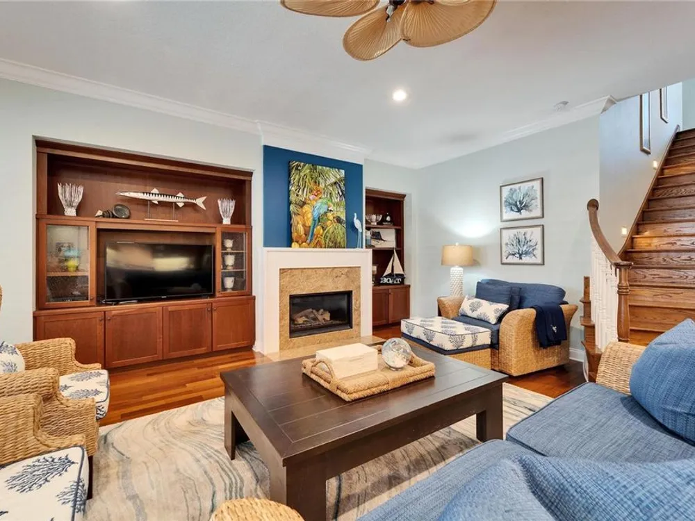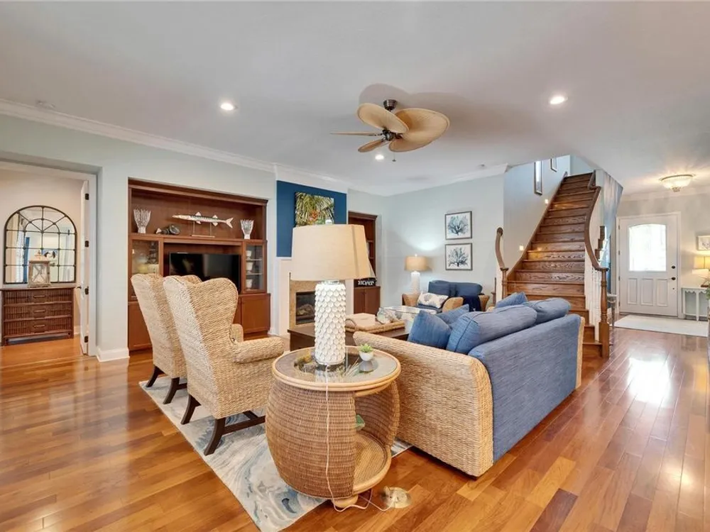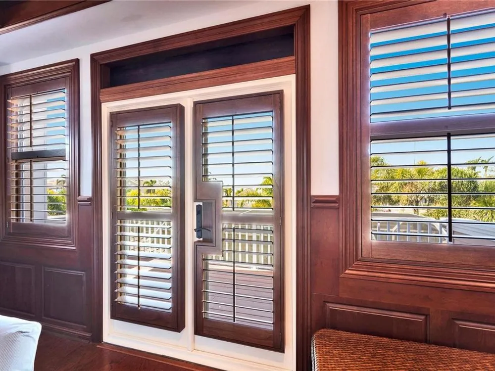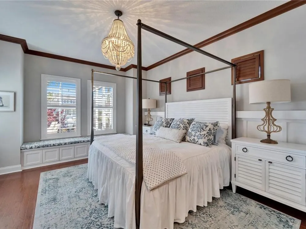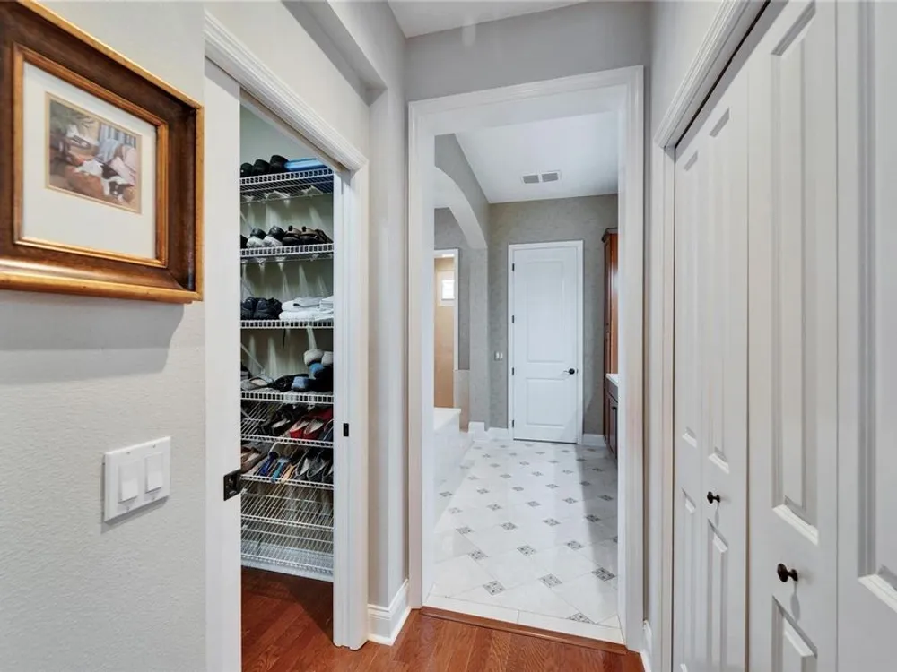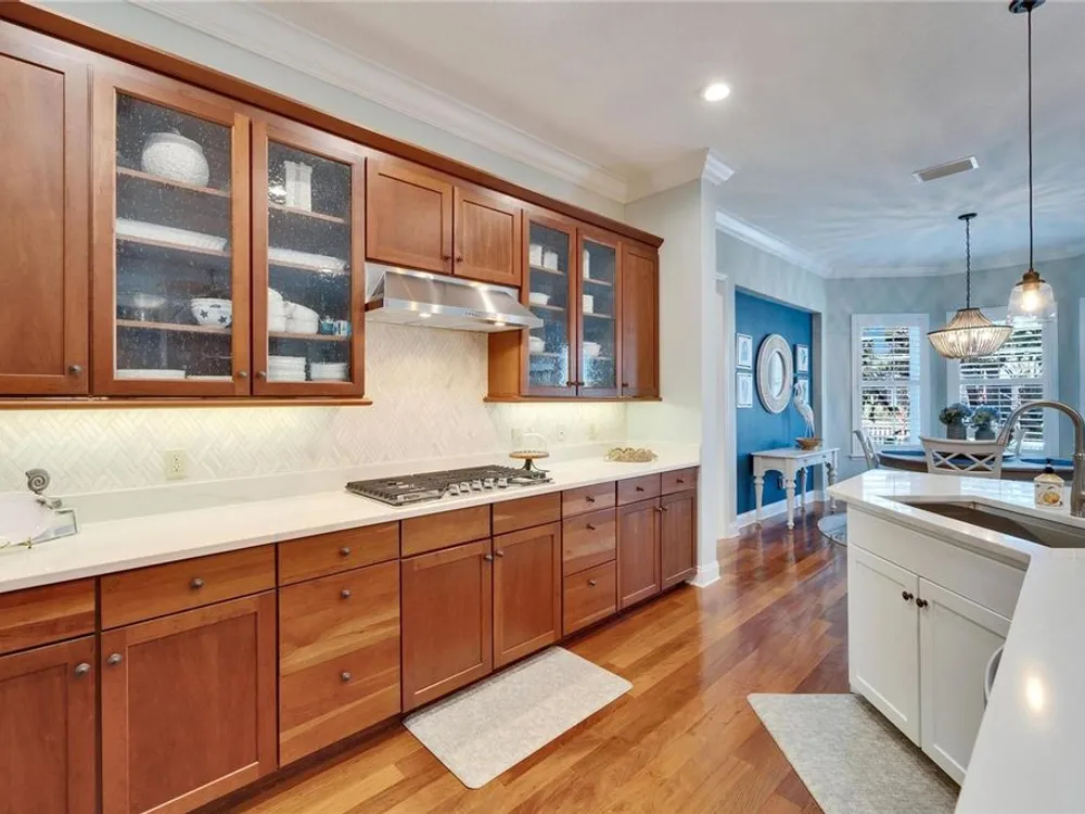 - Built-in Features, Ceiling Fan(s), Coffered Ceiling(s), Crown Molding, Eat-in Kitchen, High Ceilings, Kitchen/Family Room Combo, Open Floorplan, Main Level Primary, Solid-Wood Cabinets, Split Bedrooms, Stone Counters, Thermostat, Tray Ceiling(s), Walk-In Closet(s), Wet Bar, Window Treatments