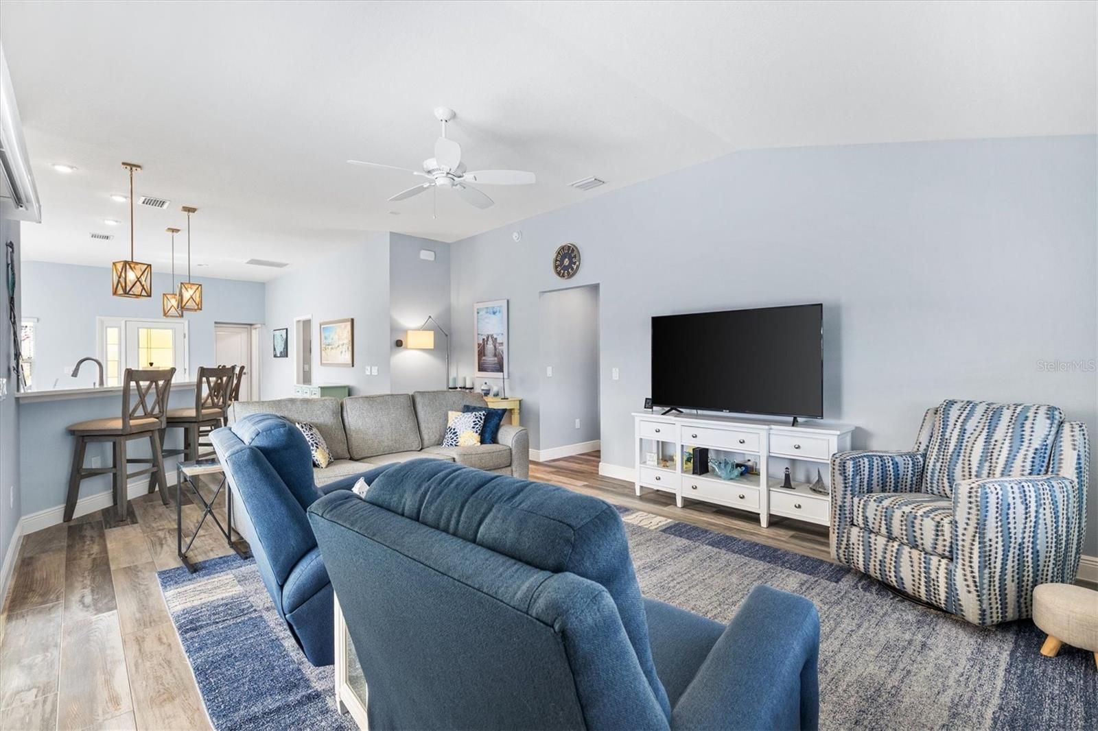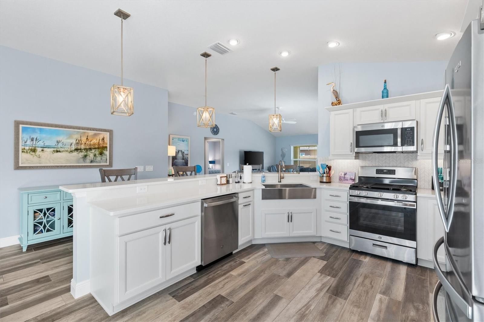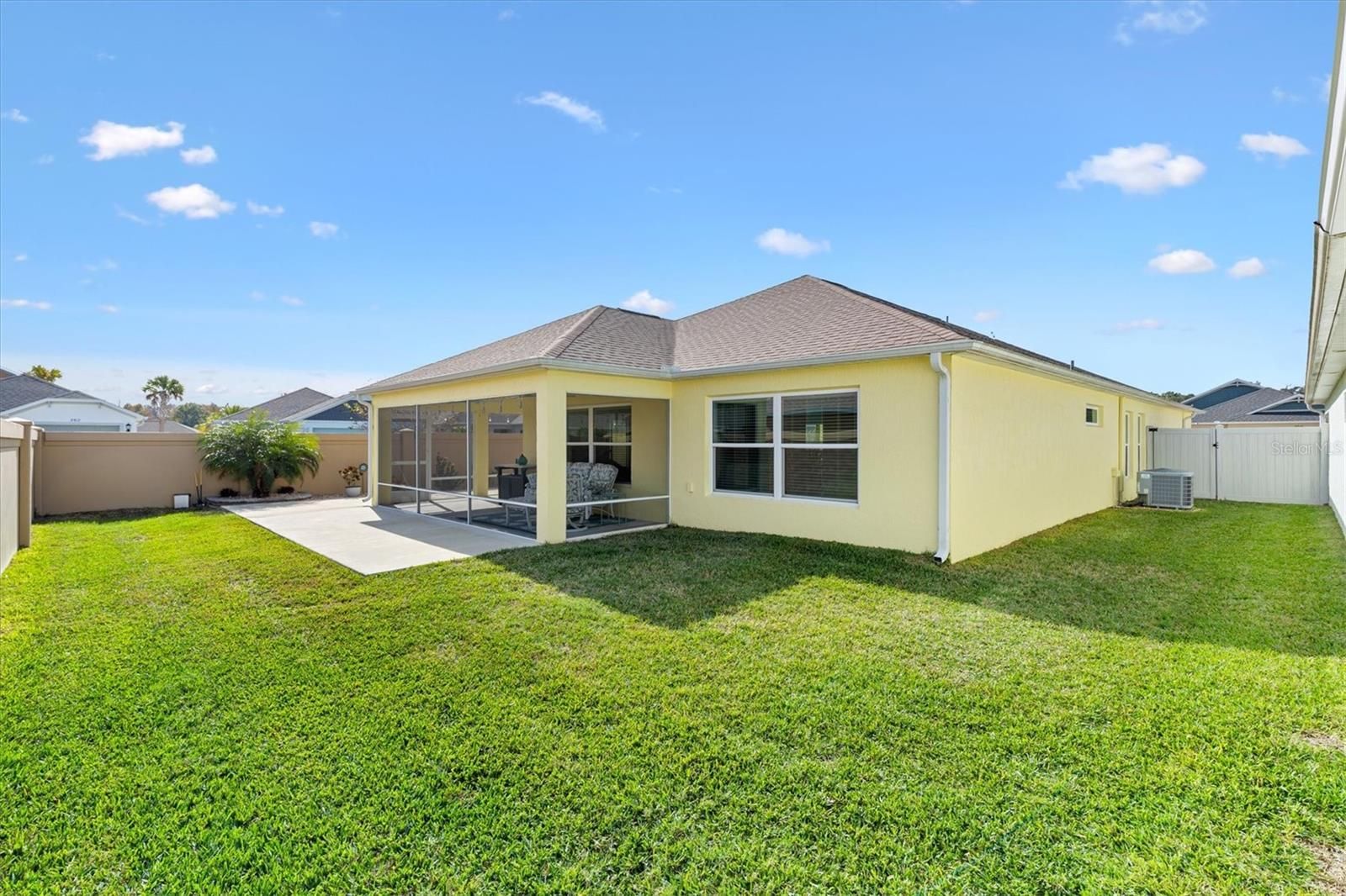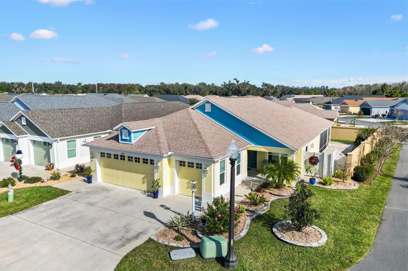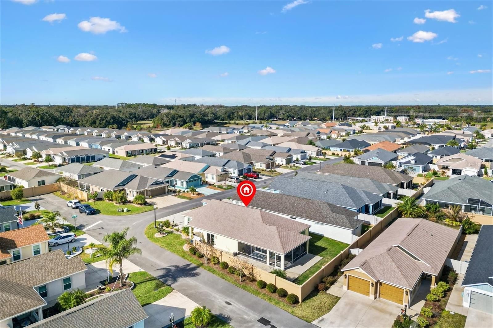 Welcome to 5617 Stricklin Street, a beautifully enhanced home tucked away in the highly sought-after Village of Hammock at Fenney, right in the heart of Palmetto Villas—one of the most picturesque and naturally serene pockets of The Villages. From the moment you arrive, you’ll notice the thoughtful care poured into this home, beginning with upgraded landscaping in both the front and back, outdoor lighting that warmly highlights the home at night, and added gutters that help ensure long-term exterior protection. A lovely glass front door with transom sets the tone for the bright, inviting interior waiting inside. Step through the entryway to an open-concept living space filled with natural light and modern comfort. The kitchen has been beautifully improved with pull-out shelves, under-cabinet lighting, a stylish tile backsplash, and sleek quartz countertops—all working together to create a space that’s both functional and elegant. The upgraded refrigerator adds even more convenience. Tile flooring flows throughout the home, giving every room a clean, cohesive look and easy maintenance. The primary suite offers a peaceful retreat, while guest spaces provide comfort for friends and family. Storage has been thoughtfully expanded with added laundry room cabinets, making organization effortless. One of the highlights of this home is the extended lanai, a perfect place to relax, entertain, or simply enjoy the peaceful Fenney breezes. Whether you’re savoring your morning coffee or unwinding after a day of golf and recreation, this expanded outdoor area brings the best of Florida living right to your doorstep. Additional upgrades—such as the included washer and dryer—make this home truly move-in ready, allowing the next owner to enjoy an effortless transition. Living in Palmetto Villas means being surrounded by nature trails, shimmering ponds, and the rustic charm of Fenney’s unique setting—while still being just minutes from golf, recreation centers, resort-style pools, dining, shopping, and all the incredible amenities that make The Villages famous. 5617 Stricklin Street isn’t just a home—it’s a lifestyle. With its premium upgrades, serene location, and beautifully expanded living spaces, this property is ready to welcome its next proud owner. Buyer to verify data and dimensions.