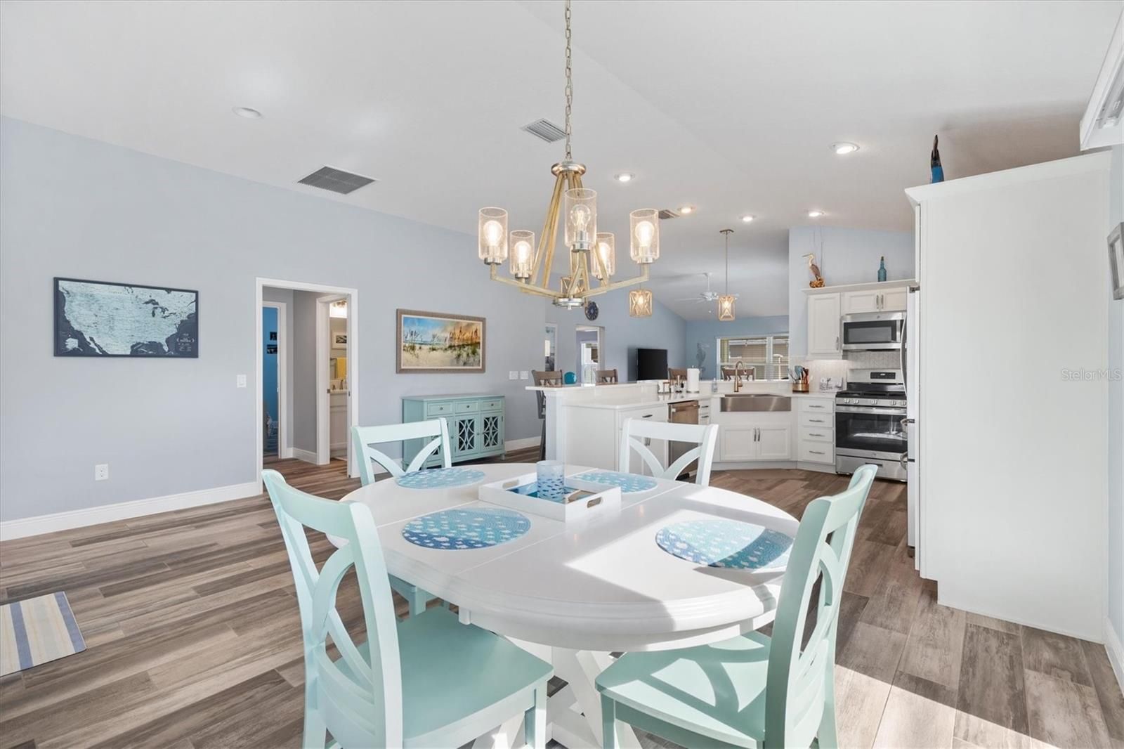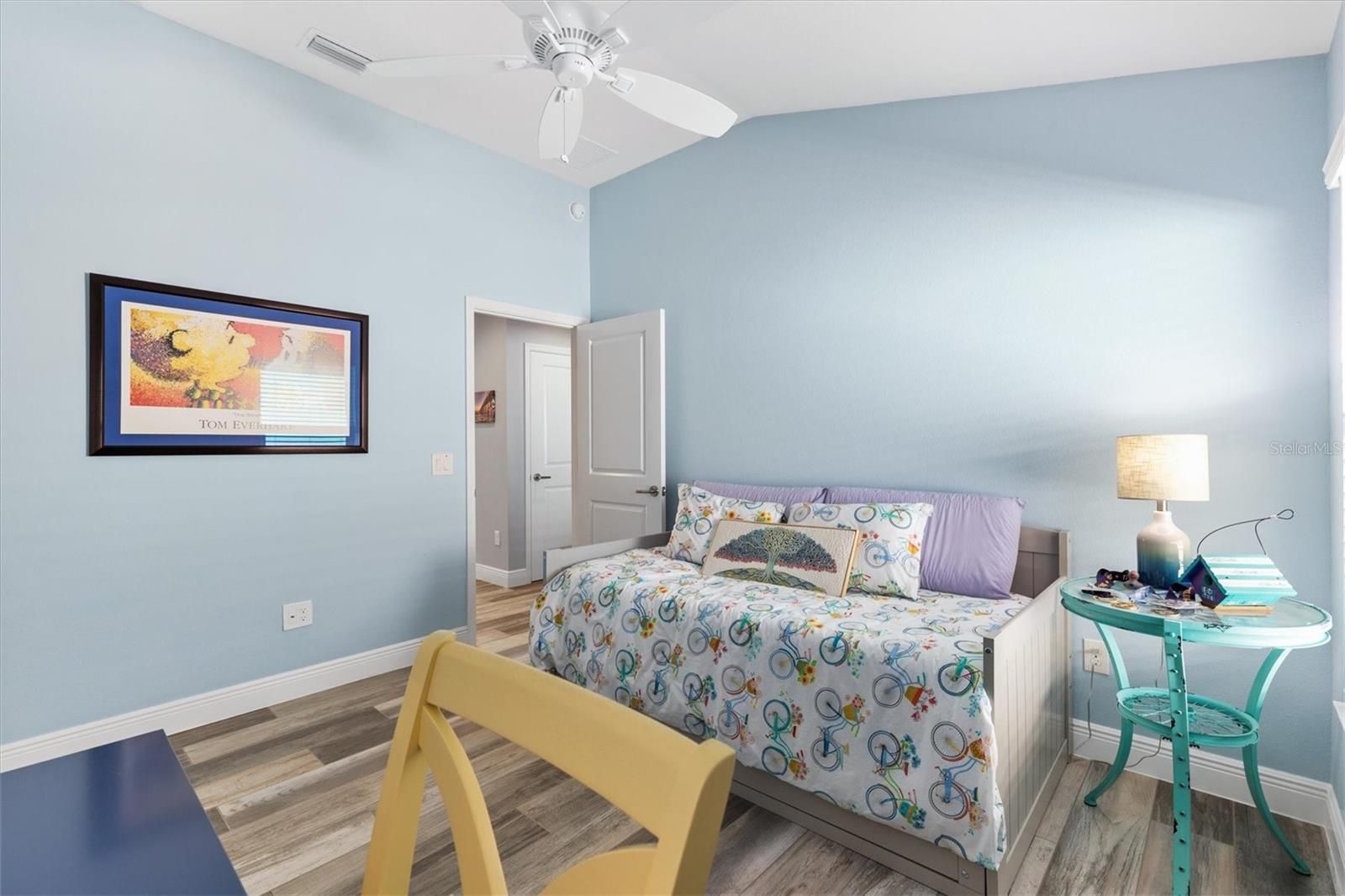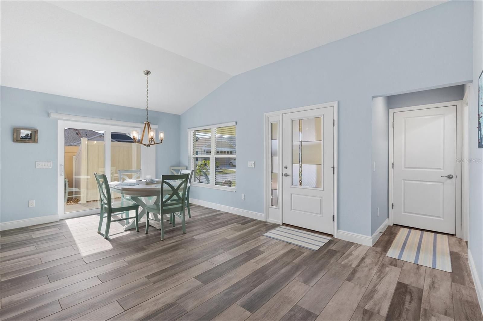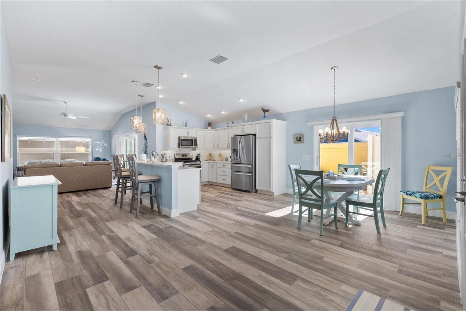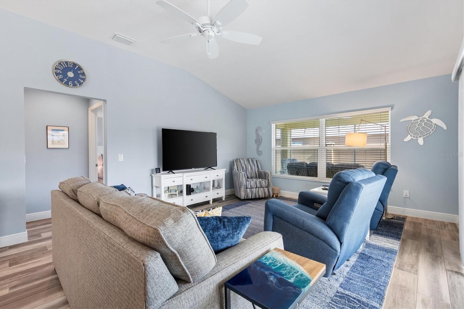 Welcome to 5617 Stricklin Street, a beautifully enhanced home tucked away in the highly sought-after Village of Hammock at Fenney, right in the heart of Palmetto Villas—one of the most picturesque and naturally serene pockets of The Villages. From the moment you arrive, you’ll notice the thoughtful care poured into this home, beginning with upgraded landscaping in both the front and back, outdoor lighting that warmly highlights the home at night, and added gutters that help ensure long-term exterior protection. A lovely glass front door with transom sets the tone for the bright, inviting interior waiting inside. Step through the entryway to an open-concept living space filled with natural light and modern comfort. The kitchen has been beautifully improved with pull-out shelves, under-cabinet lighting, a stylish tile backsplash, and sleek quartz countertops—all working together to create a space that’s both functional and elegant. The upgraded refrigerator adds even more convenience. Tile flooring flows throughout the home, giving every room a clean, cohesive look and easy maintenance. The primary suite offers a peaceful retreat, while guest spaces provide comfort for friends and family. Storage has been thoughtfully expanded with added laundry room cabinets, making organization effortless. One of the highlights of this home is the extended lanai, a perfect place to relax, entertain, or simply enjoy the peaceful Fenney breezes. Whether you’re savoring your morning coffee or unwinding after a day of golf and recreation, this expanded outdoor area brings the best of Florida living right to your doorstep. Additional upgrades—such as the included washer and dryer—make this home truly move-in ready, allowing the next owner to enjoy an effortless transition. Living in Palmetto Villas means being surrounded by nature trails, shimmering ponds, and the rustic charm of Fenney’s unique setting—while still being just minutes from golf, recreation centers, resort-style pools, dining, shopping, and all the incredible amenities that make The Villages famous. 5617 Stricklin Street isn’t just a home—it’s a lifestyle. With its premium upgrades, serene location, and beautifully expanded living spaces, this property is ready to welcome its next proud owner. Buyer to verify data and dimensions.