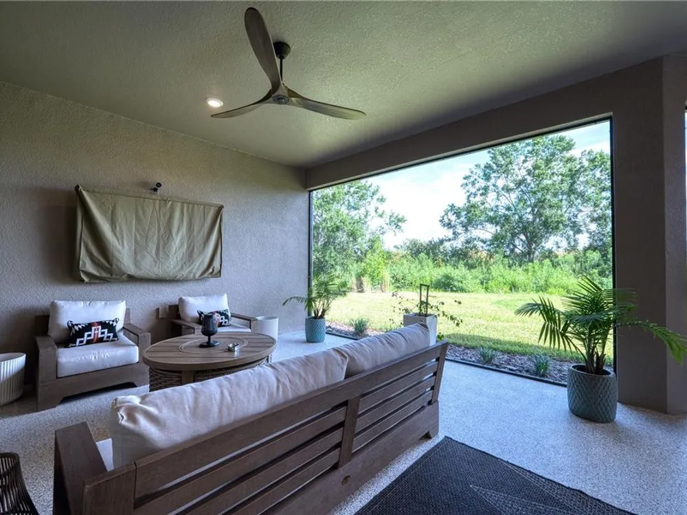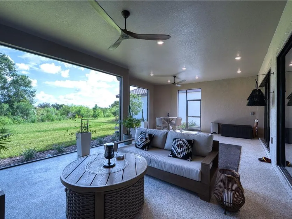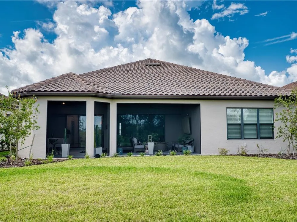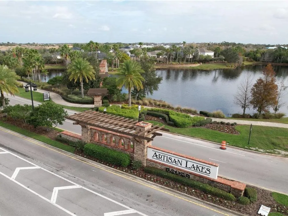 NEW PRICE on this gorgeous move-in ready 3,000+ Sq Ft Pallazio in the community of Esplanade at Artisan Lakes. This spaciously designed home boasts 3 bedrooms, 3 full bathrooms, an office/flex rm, massive kitchen, upgraded Monogram professional grade appliances, 8' doors, upstaged structural design, 4' extended garage, high-end ceiling fans throughout, plus it is only 2 years old. This premium lot has conservation privacy to the rear and sits on a cul-de-sac street. As you walk through the grand double door front entry you will experience that 'wow' feel of the open floor plan with the tall ceilings and abundance of natural lighting. Each room has been enhanced with upscaled ceiling fans. The appliances, including the washer and dryer, have 4 more years under warranty. Designer closet system in the master that can be reworked to meet your needs at no cost. Entry way through the kitchen electric has been upgraded with Legrand Adorne light switches and plugs. The Whole house water softener has a warranty valid until April 2028. The bar is highlighted by a 100 bottle Dual-Temp wine and beverage refrigerator. The two sliders lead to the massive covered /screened lanai which has been plumbed for an outdoor kitchen as well as a fireplace, if desired. Note that there is Plenty of room to put in your own private pool... the Seller has renderings of those displayed. The beautiful Polyaspartic pro grade floor sets off the garage which includes 4' extended depth as well as overhead storage. The Polyaspartic flooring was used in the lanai also and looks top-notch! Artisan Lakes is a natural gas community with minimal owner maintenance required for your convenience. Come and be a part of it all...from the option to enjoy a high variety of social and fitness activities to choose from to the concept of optimal location to I-75 and I-275 so you can access endless shopping, restaurants and entertainment!
