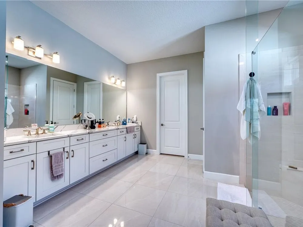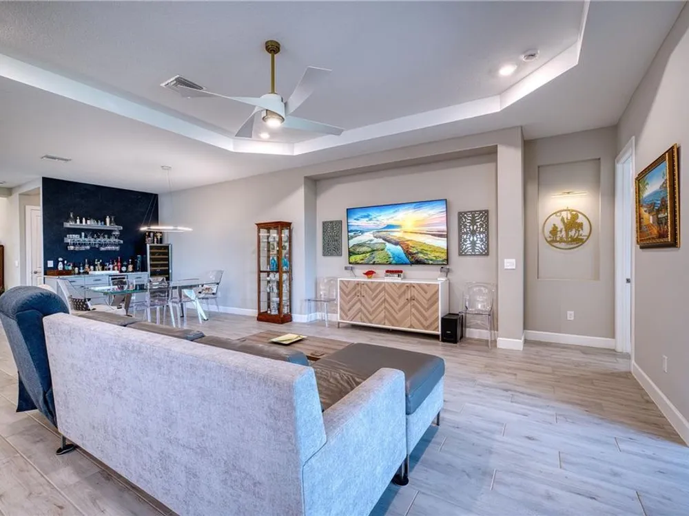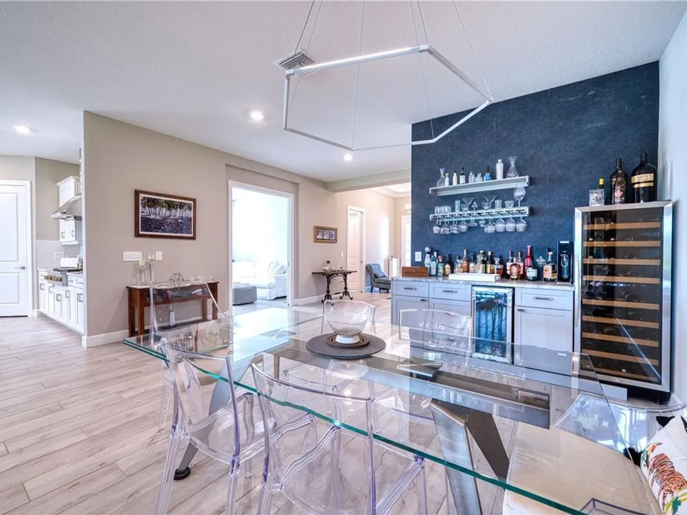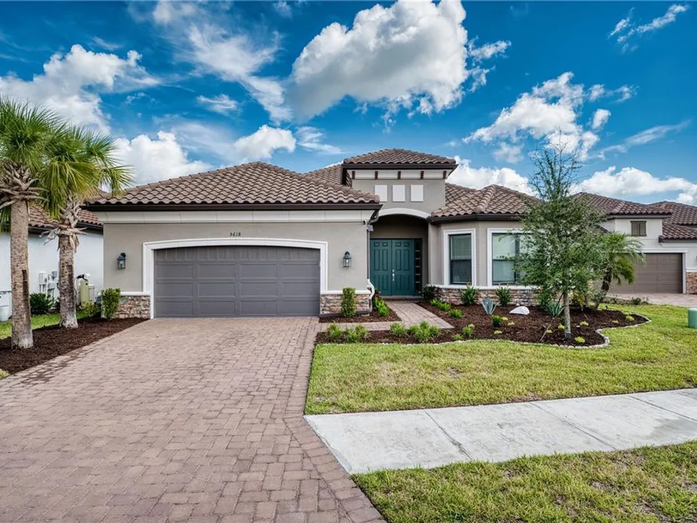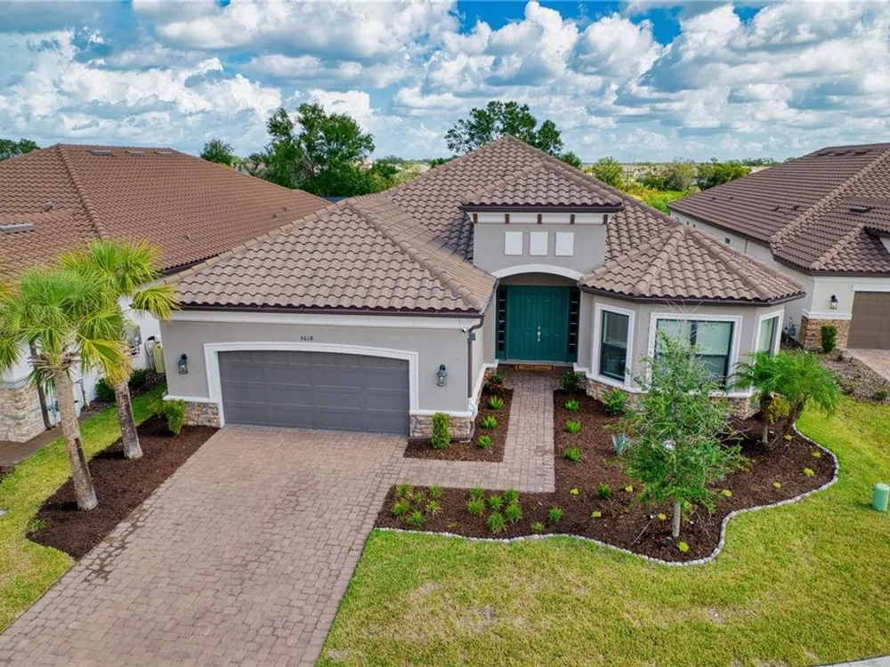 NEW PRICE on this gorgeous move-in ready 3,000+ Sq Ft Pallazio in the community of Esplanade at Artisan Lakes. This spaciously designed home boasts 3 bedrooms, 3 full bathrooms, an office/flex rm, massive kitchen, upgraded Monogram professional grade appliances, 8' doors, upstaged structural design, 4' extended garage, high-end ceiling fans throughout, plus it is only 2 years old. This premium lot has conservation privacy to the rear and sits on a cul-de-sac street. As you walk through the grand double door front entry you will experience that 'wow' feel of the open floor plan with the tall ceilings and abundance of natural lighting. Each room has been enhanced with upscaled ceiling fans. The appliances, including the washer and dryer, have 4 more years under warranty. Designer closet system in the master that can be reworked to meet your needs at no cost. Entry way through the kitchen electric has been upgraded with Legrand Adorne light switches and plugs. The Whole house water softener has a warranty valid until April 2028. The bar is highlighted by a 100 bottle Dual-Temp wine and beverage refrigerator. The two sliders lead to the massive covered /screened lanai which has been plumbed for an outdoor kitchen as well as a fireplace, if desired. Note that there is Plenty of room to put in your own private pool... the Seller has renderings of those displayed. The beautiful Polyaspartic pro grade floor sets off the garage which includes 4' extended depth as well as overhead storage. The Polyaspartic flooring was used in the lanai also and looks top-notch! Artisan Lakes is a natural gas community with minimal owner maintenance required for your convenience. Come and be a part of it all...from the option to enjoy a high variety of social and fitness activities to choose from to the concept of optimal location to I-75 and I-275 so you can access endless shopping, restaurants and entertainment!