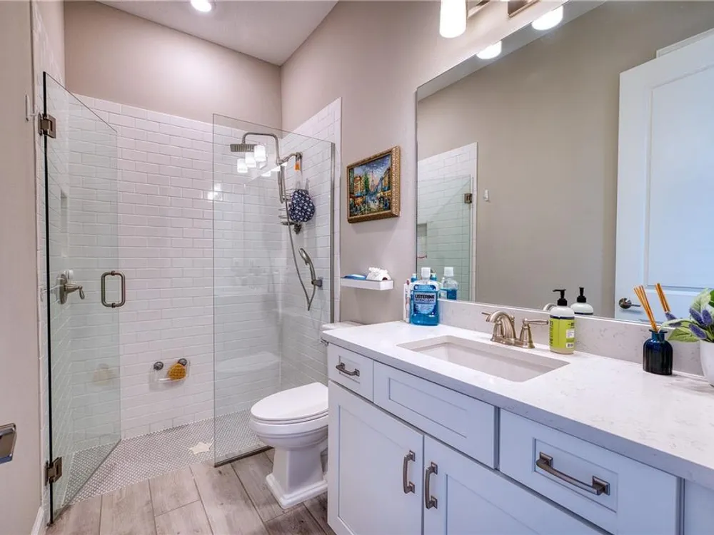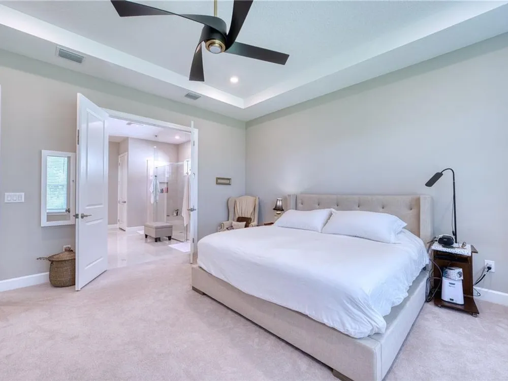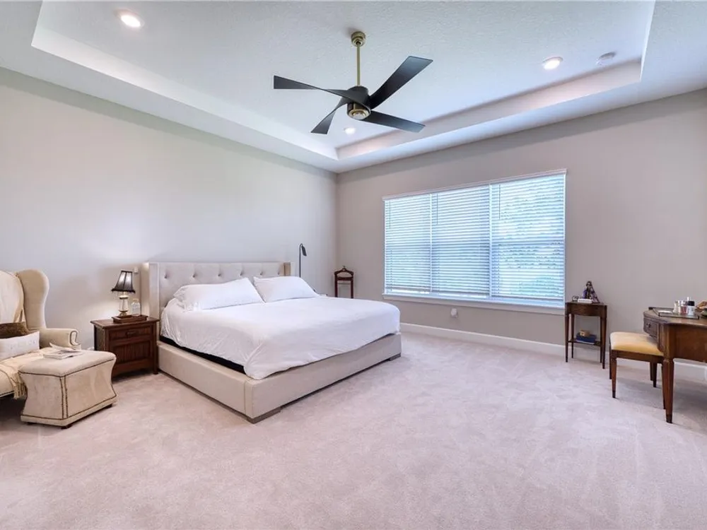 - Ceiling Fan(s), Eat-in Kitchen, Open Floorplan, Main Level Primary, Stone Counters, Thermostat, Tray Ceiling(s), Walk-In Closet(s), Window Treatments