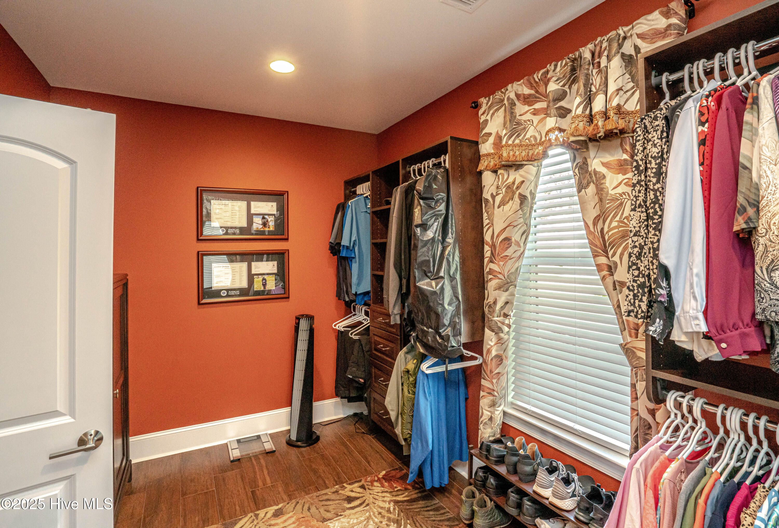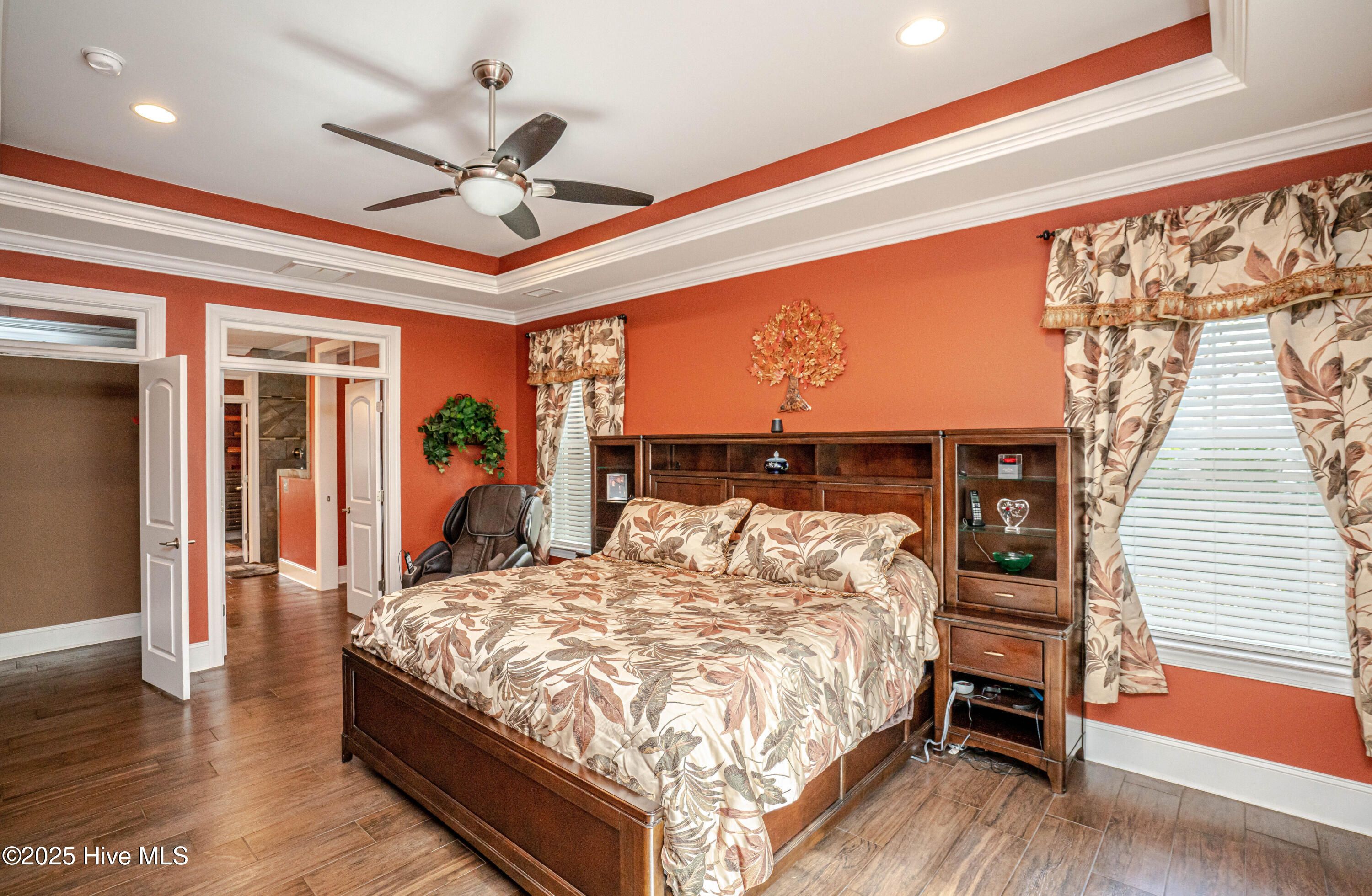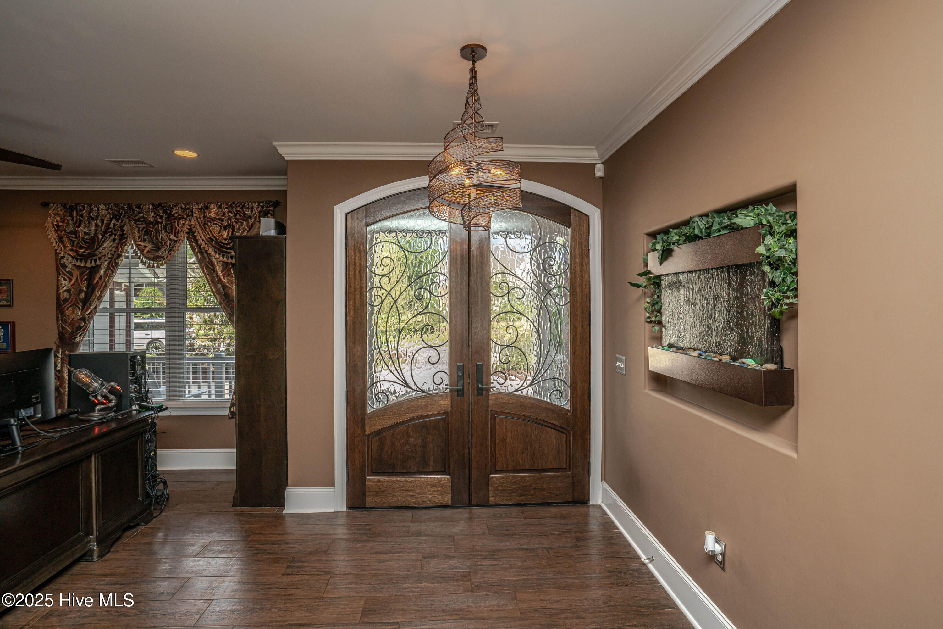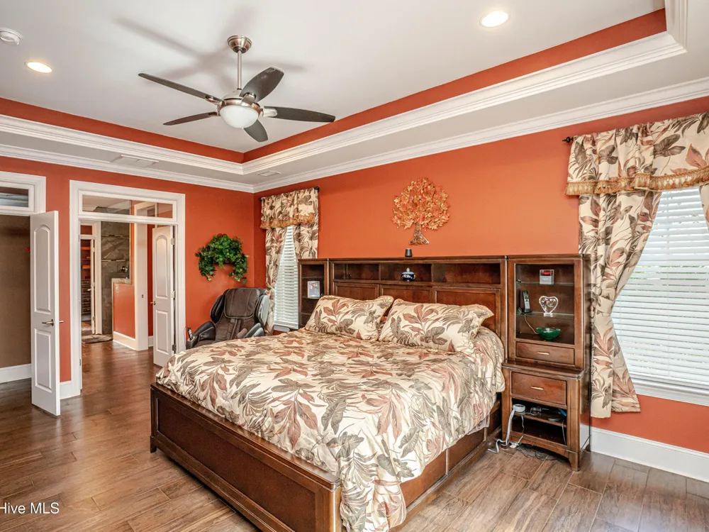 - Blinds/Shades, Solid Surface, Wet Bar, Walk-In Closet(s), Walk-in Shower, Tray Ceiling(s), Sound System, Entrance Foyer, Pantry, Mud Room, Master Downstairs, Kitchen Island, High Ceilings, Generator Plug, Gas Log, Ceiling Fan(s), Bookcases