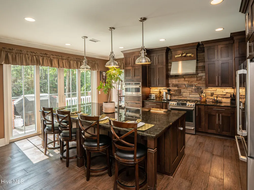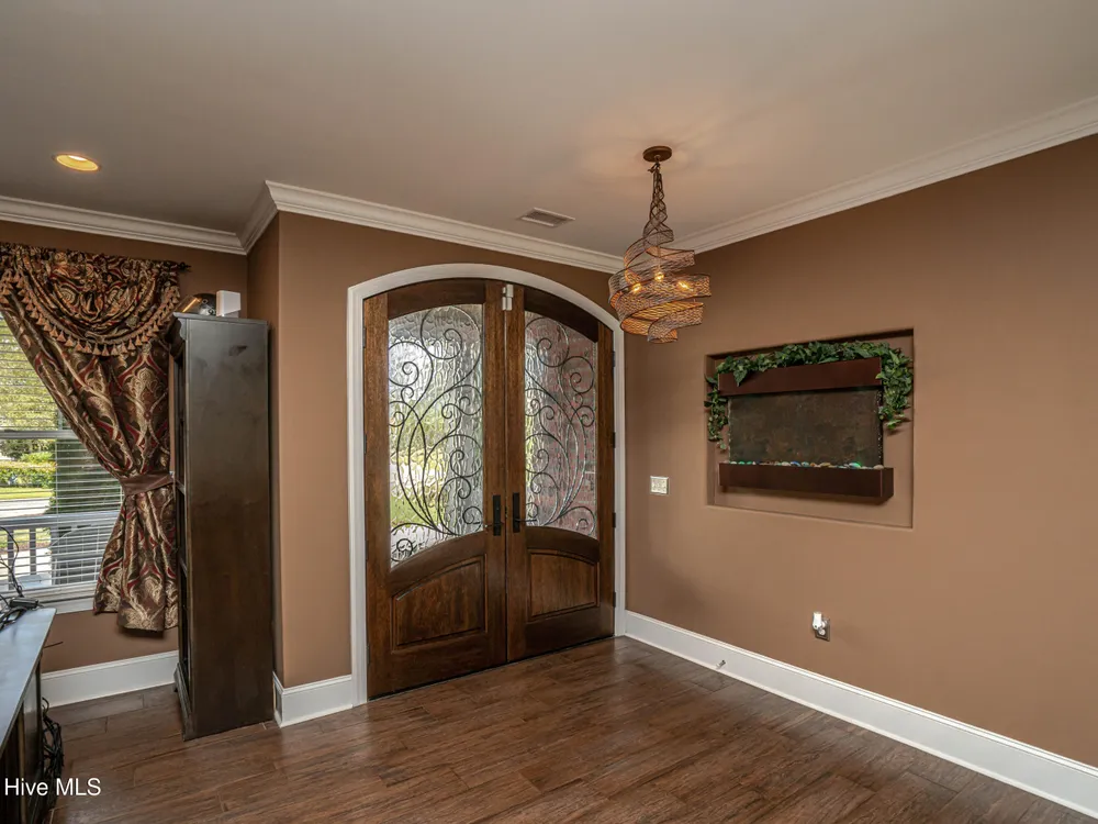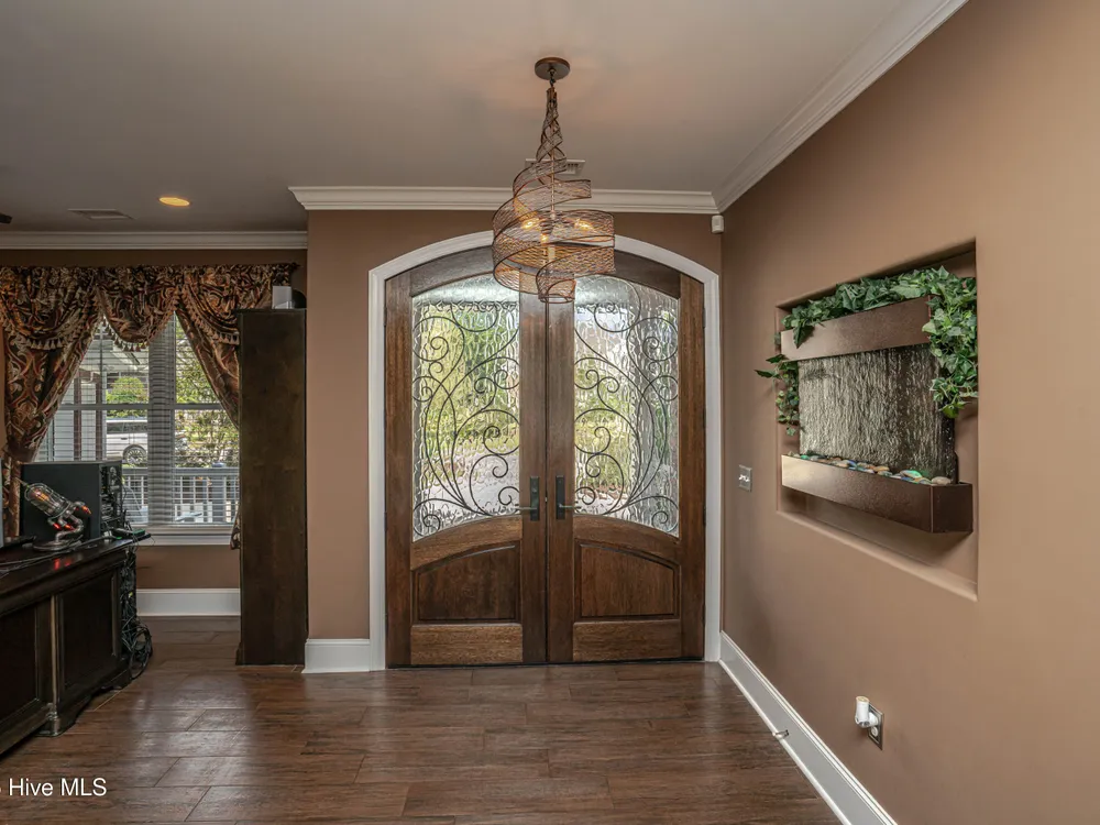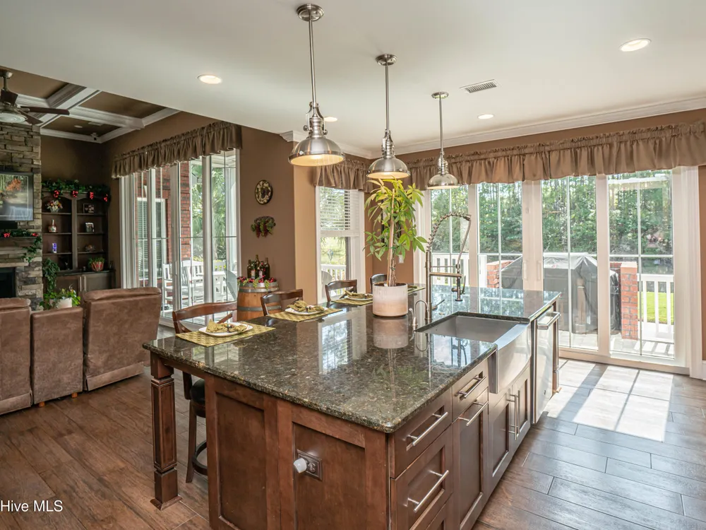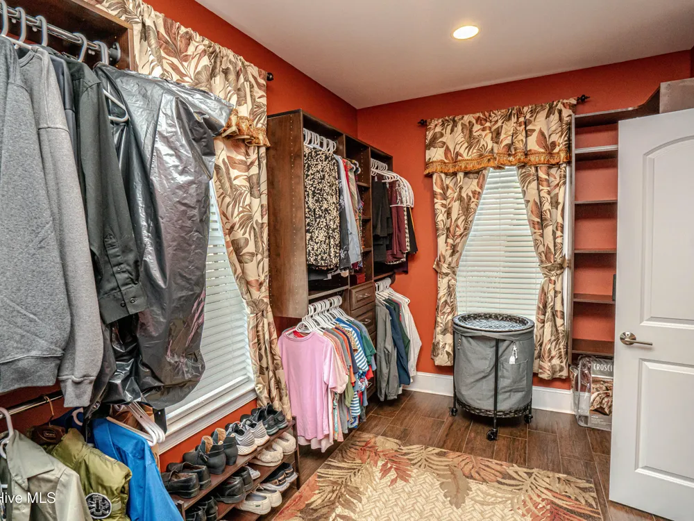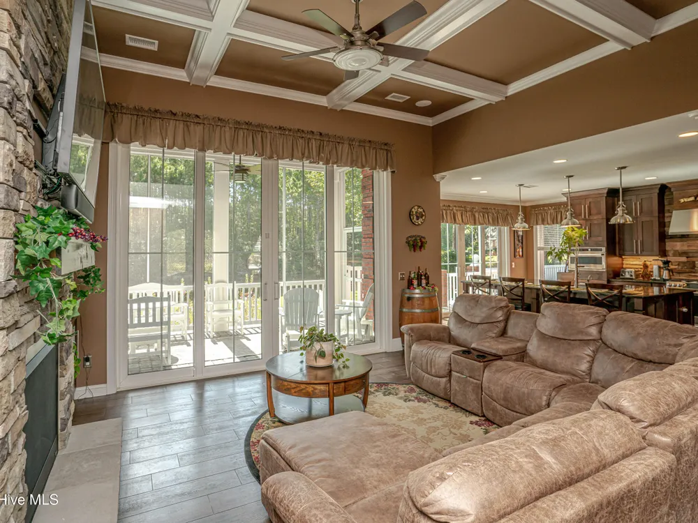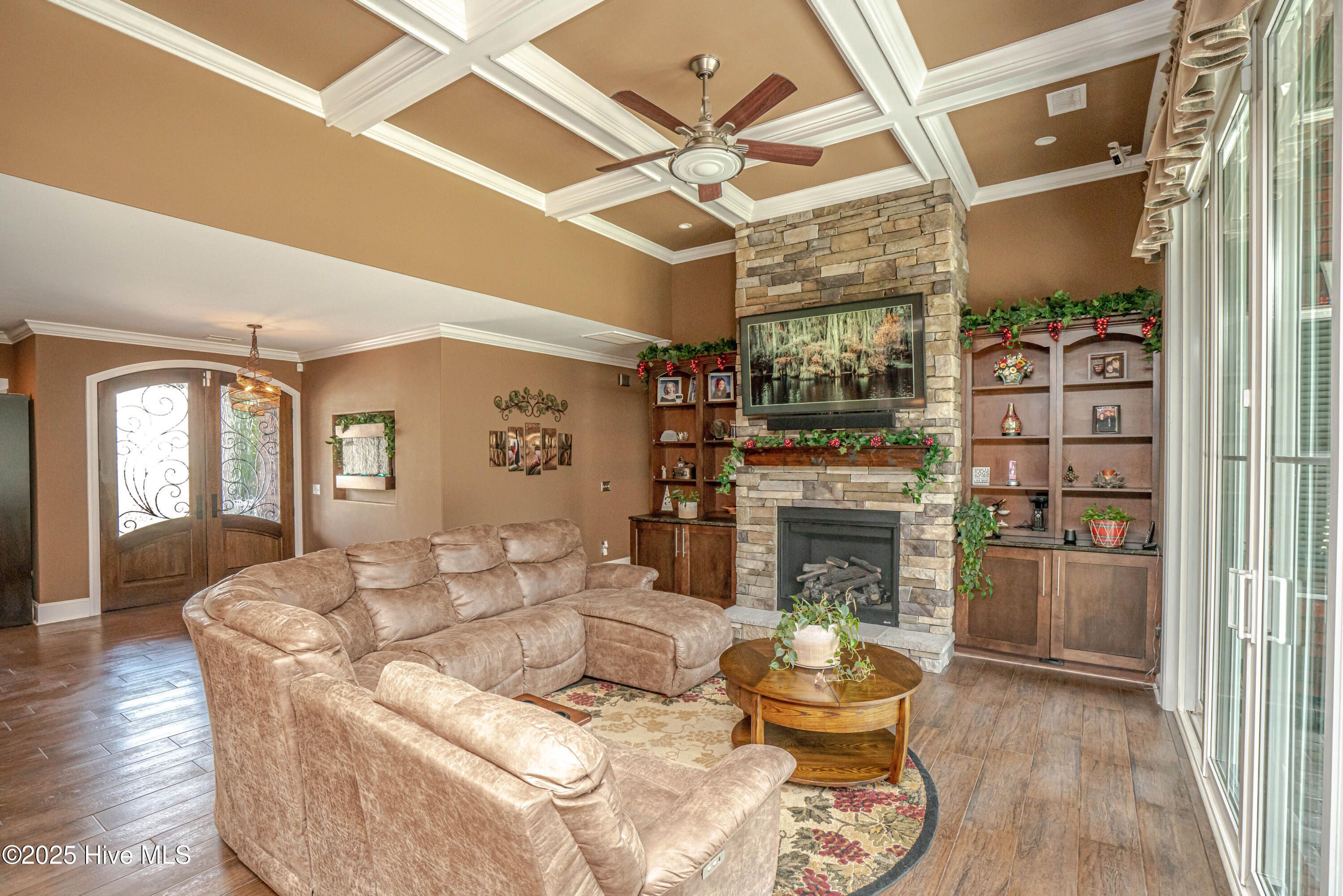 - Blinds/Shades, Solid Surface, Wet Bar, Walk-In Closet(s), Walk-in Shower, Tray Ceiling(s), Sound System, Entrance Foyer, Pantry, Mud Room, Master Downstairs, Kitchen Island, High Ceilings, Generator Plug, Gas Log, Ceiling Fan(s), Bookcases
