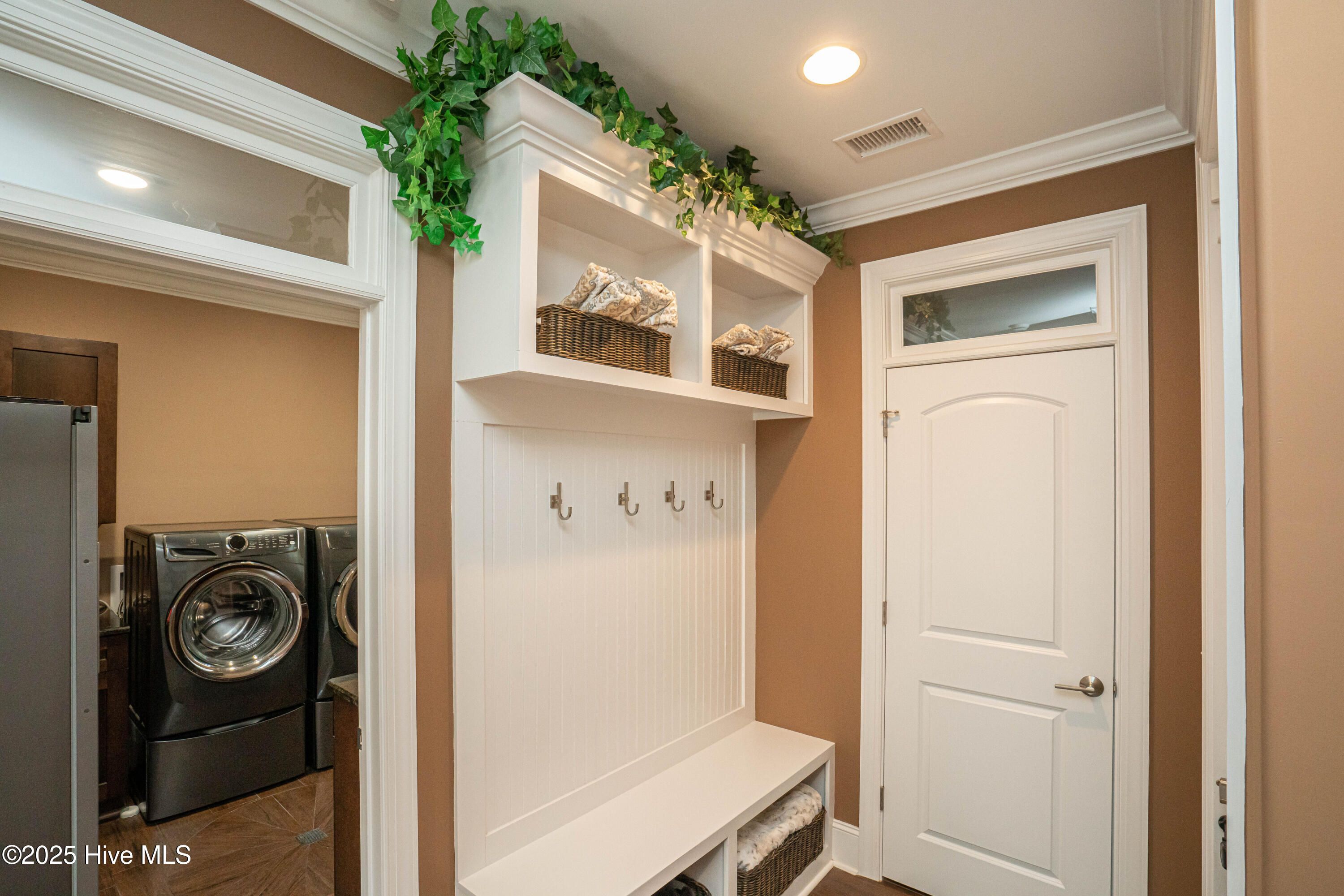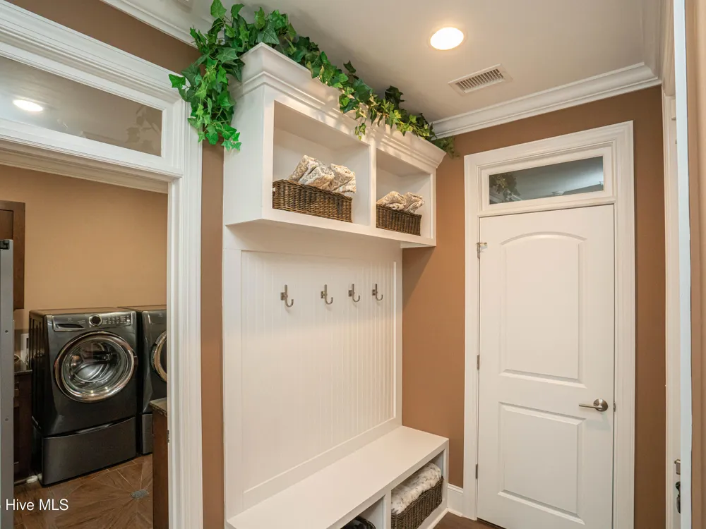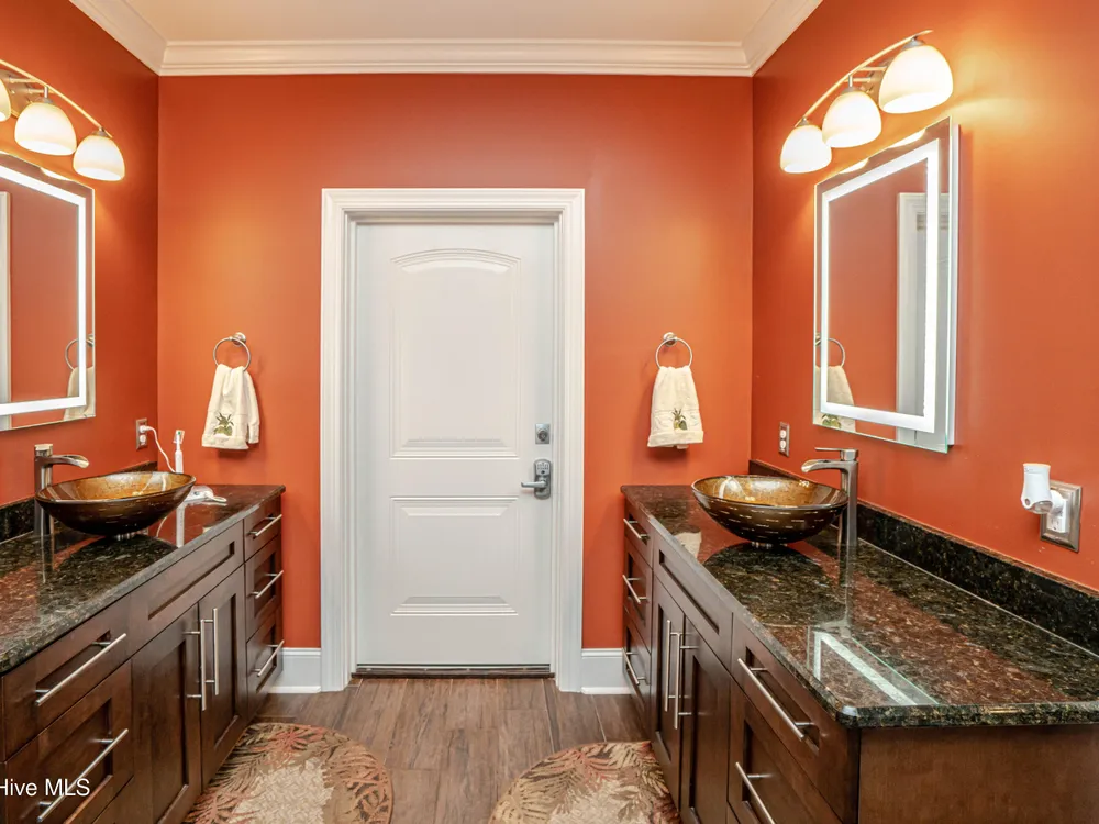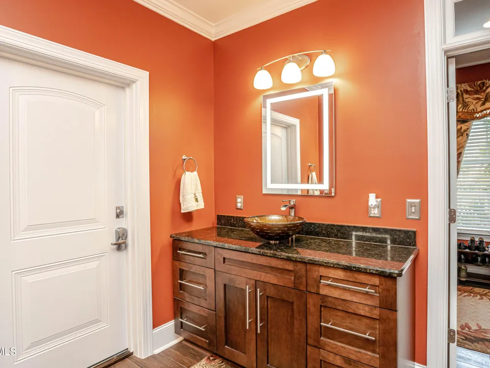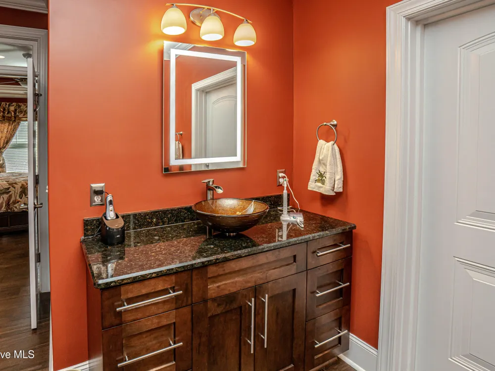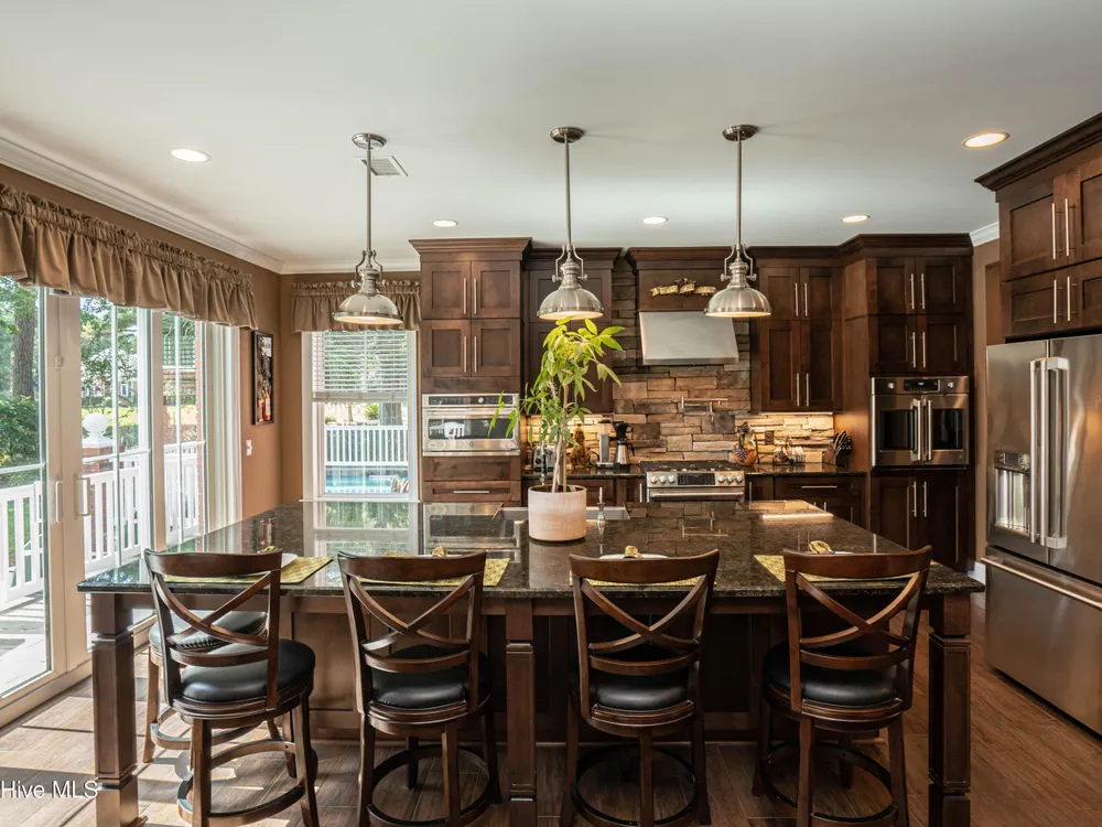 - Blinds/Shades, Solid Surface, Wet Bar, Walk-In Closet(s), Walk-in Shower, Tray Ceiling(s), Sound System, Entrance Foyer, Pantry, Mud Room, Master Downstairs, Kitchen Island, High Ceilings, Generator Plug, Gas Log, Ceiling Fan(s), Bookcases