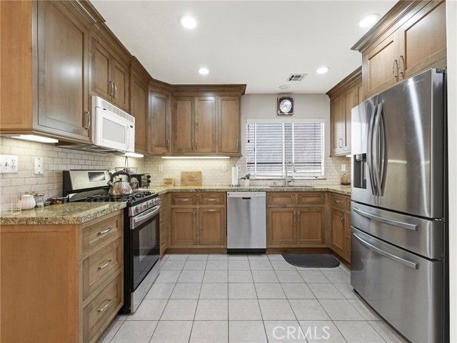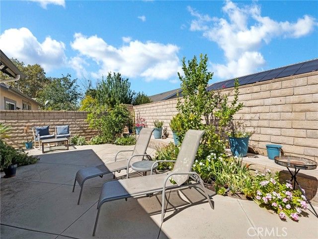 Welcome to this beautifully maintained single-story home nestled in the highly sought-after Casa Flores 55+ gated community. This inviting residence showcases a bright, open-concept layout with high ceilings, abundant natural light, and an effortless flow between the living and dining areas—perfect for both everyday living and entertaining. The well-appointed kitchen features elegant granite countertops, updated cabinetry, and a large stainless steel sink, creating a stylish and functional space for any home chef. The spacious primary suite provides a serene retreat, featuring a vaulted ceiling, dual sinks, and a private sliding glass door that opens to the patio—perfect for enjoying morning coffee or evening relaxation. Both bedrooms feature rich wood laminate flooring and ceiling fans, blending comfort with contemporary design. Step outside to a peaceful, low-maintenance backyard highlighted by charming planters and flowerbeds, offering the perfect balance of beauty and simplicity. Residents of Casa Flores enjoy resort-style amenities, including manicured grounds, a sparkling pool, a relaxing spa, and a community park with picnic areas. Additional features include central air and heat, dual-pane windows, an indoor laundry area, and direct access to an attached two-car garage. Conveniently located near shopping, dining, healthcare, parks, and the 118 Freeway, this home combines comfort, convenience, and an active lifestyle in one of East Simi Valley’s most desirable 55+ communities. Don’t miss this exceptional opportunity to make Casa Flores your new home!