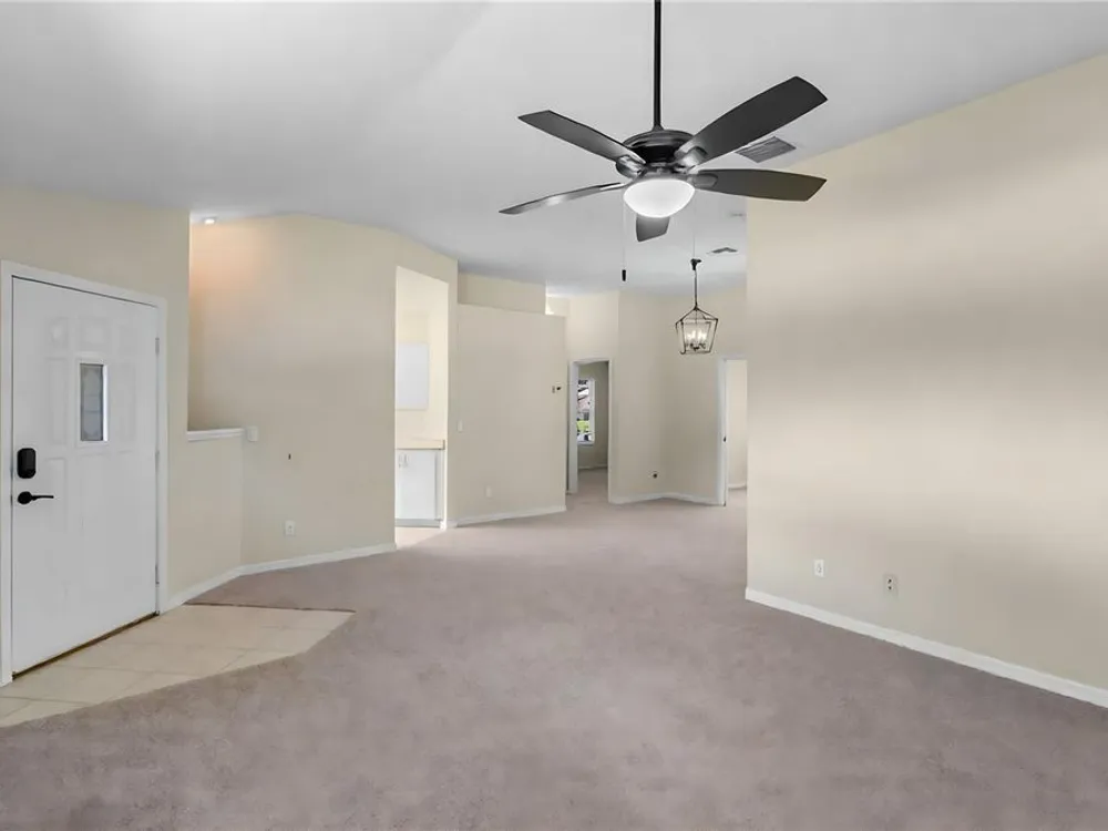- Ceiling Fan(s), Eat-in Kitchen, High Ceilings, Living/Dining Room, Main Level Primary, Stone Counters, Vaulted Ceiling(s), Walk-In Closet(s)