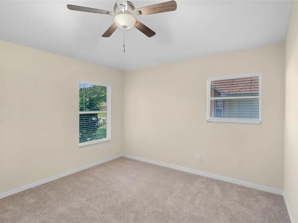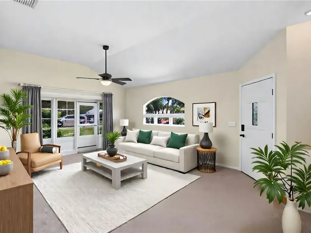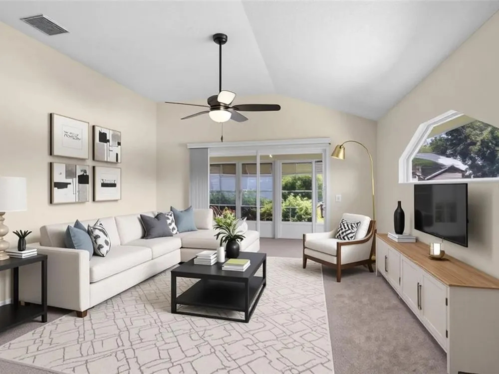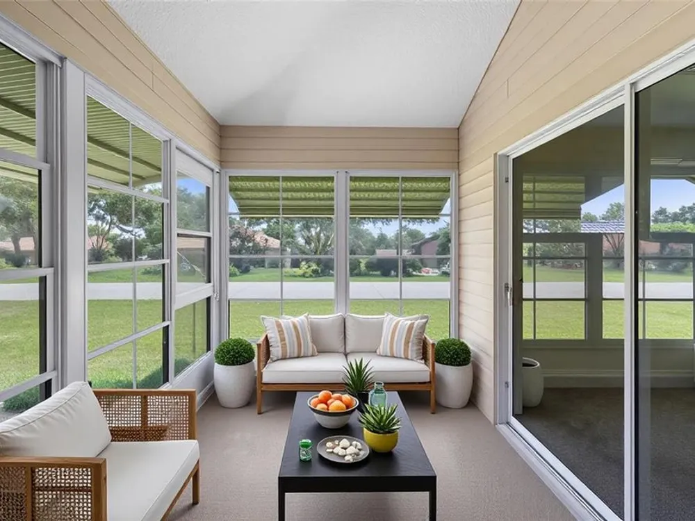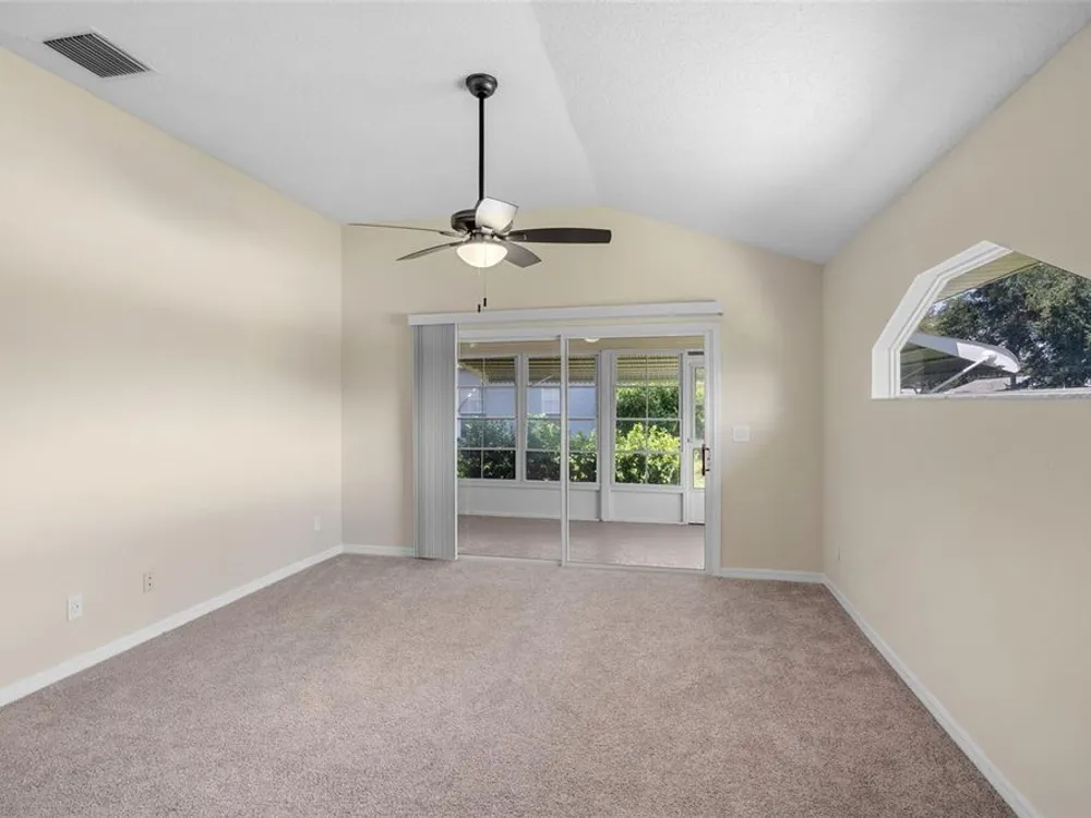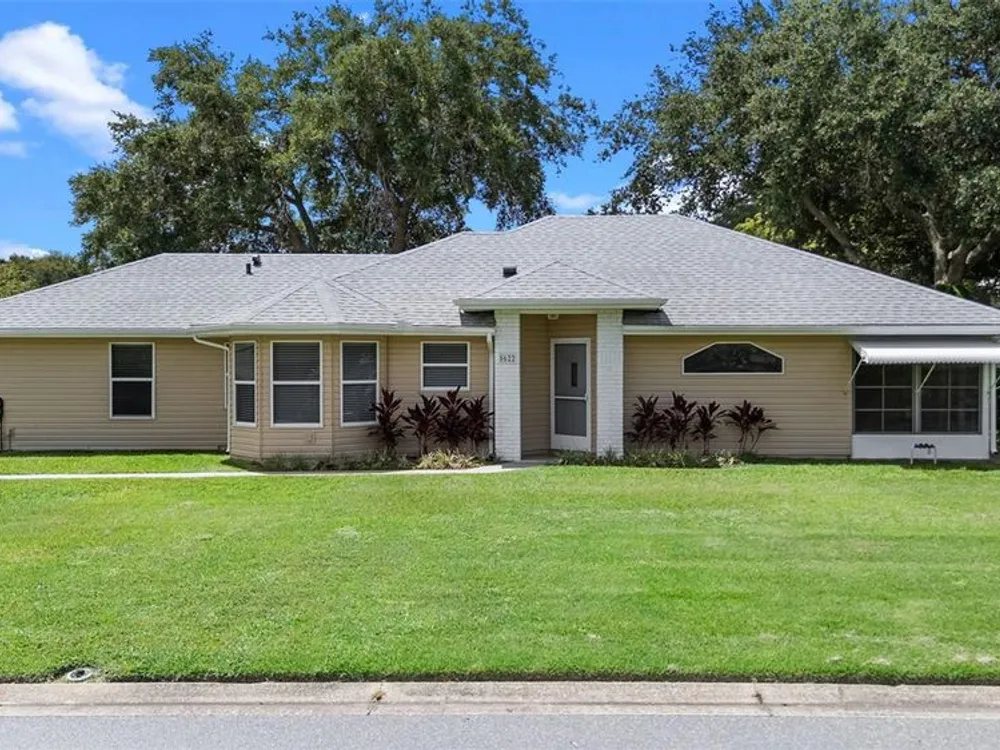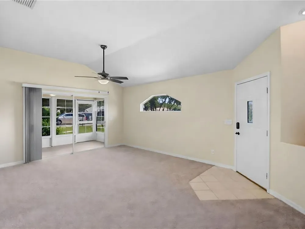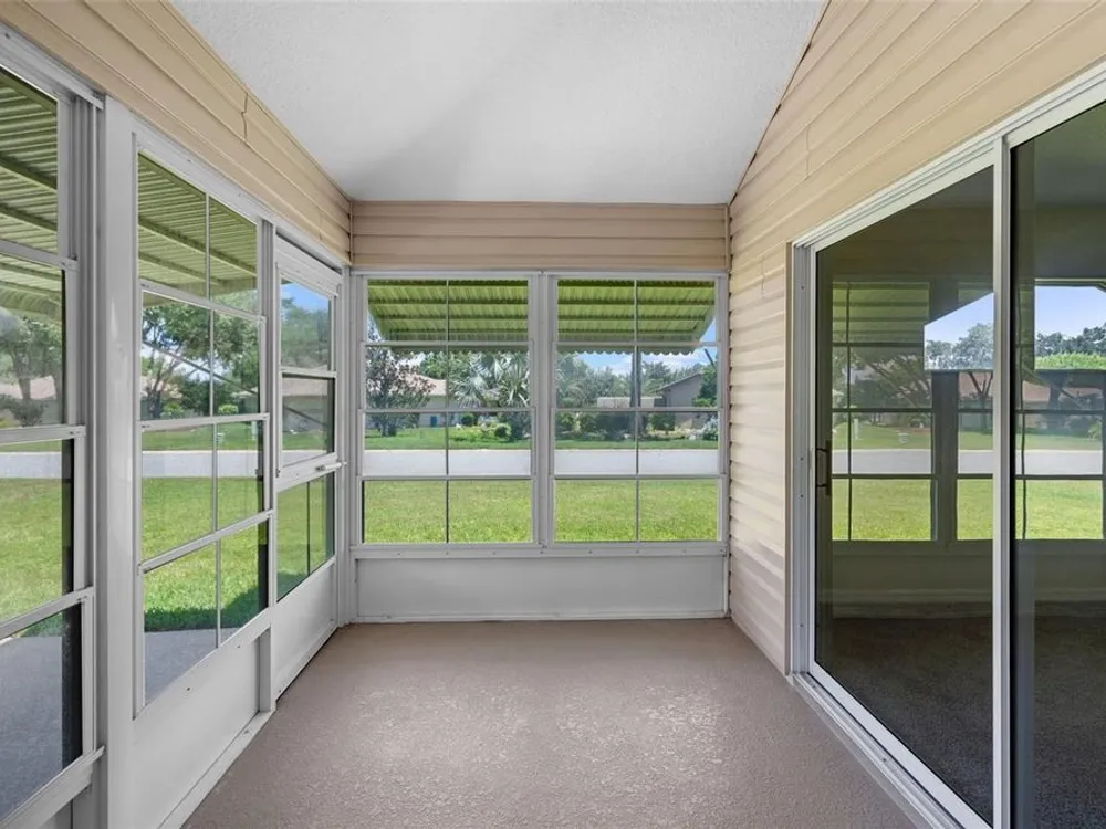 One or more photo(s) has been virtually staged. Located in the highly sought-after Royal Highlands 55+ gated golf course community—a premier resident-owned neighborhood known for its vibrant lifestyle, top-tier amenities, and unbeatable location. This charming 2-bedroom, 2-bathroom home features vaulted ceilings in the open-concept living area and primary suite, creating a spacious and airy atmosphere. A versatile office/bonus room offers the perfect space for remote work or hobbies. Brand-new carpet, new stainless steel appliances, and a bright laundry room with extra closet storage add to the home's move-in-ready appeal. Washer and dryer are included. The home also features a 2-car garage and a screened-in garage enclosure—perfect for fresh air without the bugs, transforming the space into a usable hangout or hobby area. Enjoy the bright and airy Florida room complete with sealed concrete flooring that offers both durability and style. This versatile space is perfect for a sunroom, play area, or indoor-outdoor retreat, ideal for relaxing and enjoying the peaceful neighborhood setting. This home is located on a desirable corner lot and features a 2024 roof, making it a low-maintenance and comfortable option for your next chapter. Royal Highlands offers resort-style amenities, including: 18-hole championship golf course, restaurant and pro shop, indoor and outdoor pools, lighted tennis courts, pickleball, shuffleboard, and bocce ball courts, a softball field, billiards, fitness center, card rooms, and library. The community’s Great Hall hosts regular social functions, concerts, plays, and fitness classes. HOA fees are low and include cable and internet. Secure RV/boat parking and storage are also available. The community has a 24/7 manned security gate for peace of mind. Perfect for those seeking to stay active, be social, and live the luxurious retiree lifestyle, this home offers opportunities for fun and connection every day. Whether it’s swimming, golfing, joining clubs, or simply enjoying quiet evenings in the Florida room, this home and community are built for enjoying life to the fullest. Located just minutes from The Villages and with convenient access to the Florida Turnpike, I-75, Orlando attractions!