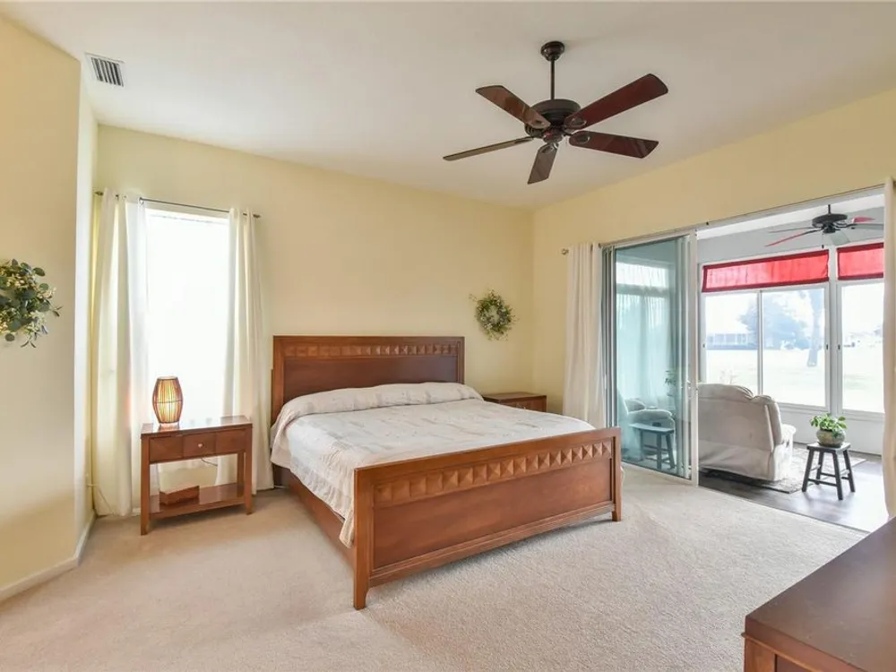Under contract-accepting backup offers. NOTICE: SUPER PRICE REDUCTION OUTSTANDING GOLF COURSE VIEW from this upgraded 3BD/2BA house with a prestigious floor plan. Roof (2023) A/C (2022), Water Heater (2023). This Majesty model home is a beautiful one level living home situated in a 55+ community. The kitchen has upgraded granite countertops, built in microwave, dishwasher, clear top stove, and refrigerator. The expanded family room, just off the kitchen, is great for entertaining or just relaxing. The dining room is open and airy and offers comfortable space. The Master bedroom has triple glass sliding doors and has plenty of room for a king-size bed and furnishings. The room has two separate walk-in closets for your convenience. The Master Bathroom has a new resurfaced walk-in shower (2022), separate vanities with plenty of storage and a large soaking tub. The house has a central vac system. Just off the kitchen is a pocket door that allows guests to enjoy the privacy of a bedroom suite and bath as well as a sitting room or another bedroom. These rooms have ceiling fans and extra storage above the closets. The furniture can be sold. The Florida room has an outstanding view of the backyard and great golf course view! Furniture is available outside of sale. Ocala Palms offers a pristine golf course, indoor and outdoor pools, and fitness center. Situated in a prime location, this home is just a short drive from the World Equestrian Center (WEC) and nearby shopping and restaurants are just across the street. Embrace the vibrant lifestyle and numerous amenities that Ocala Palms has to offer in this exceptional home. All measurements are approximate. Buyer(s) to re-measure.