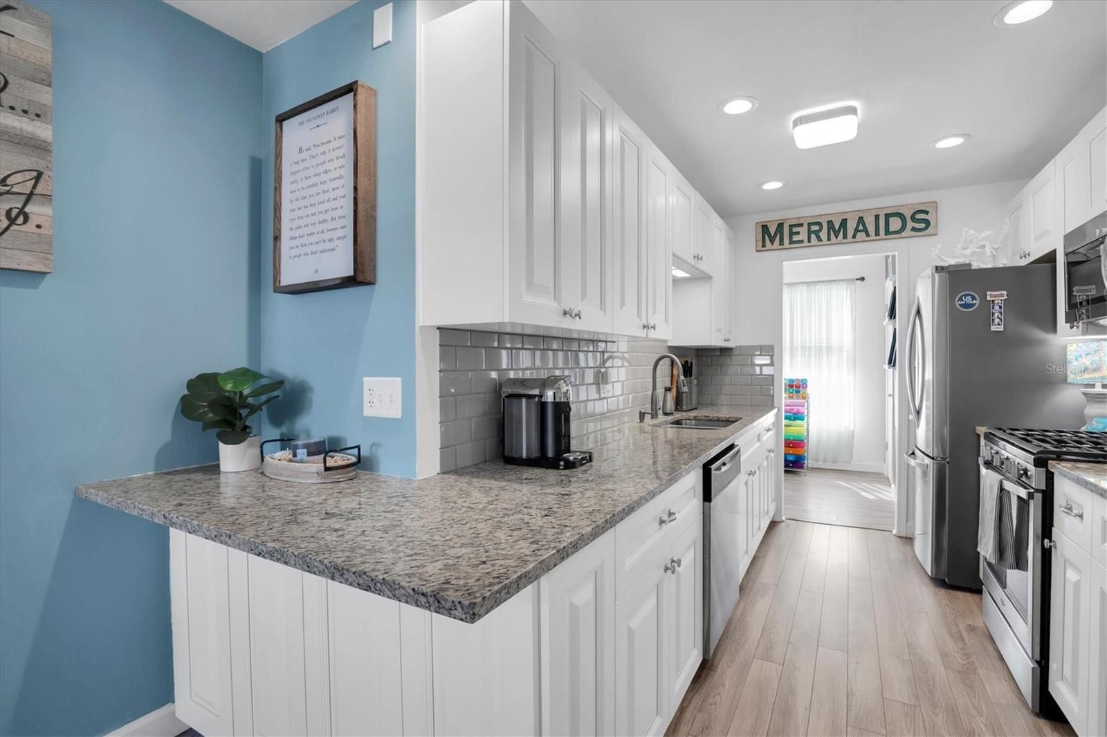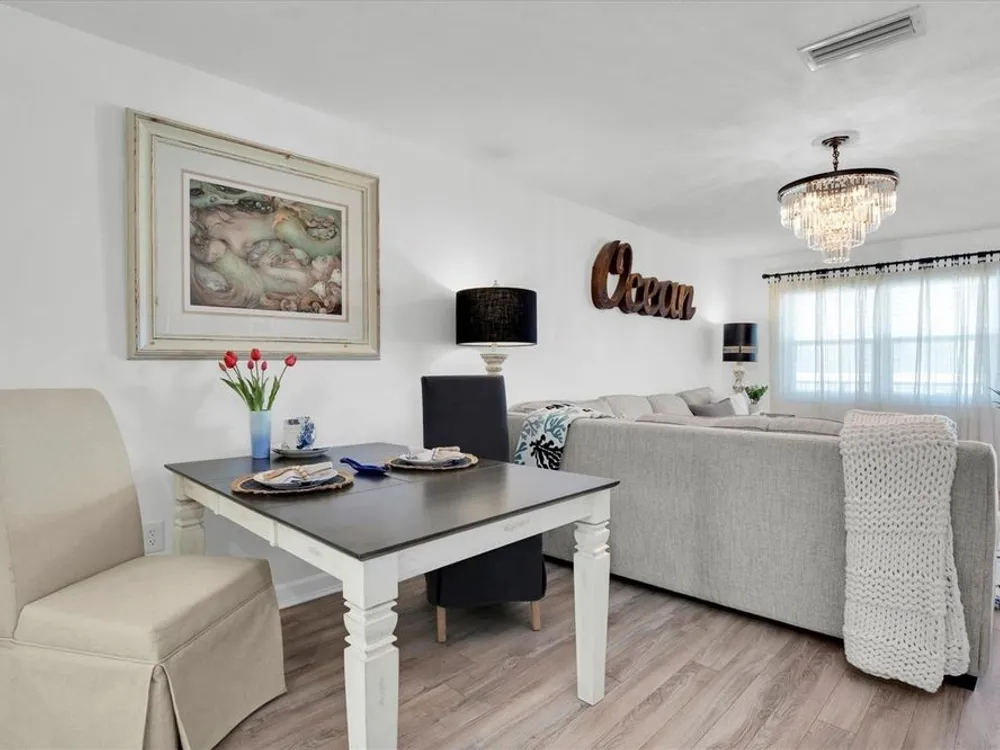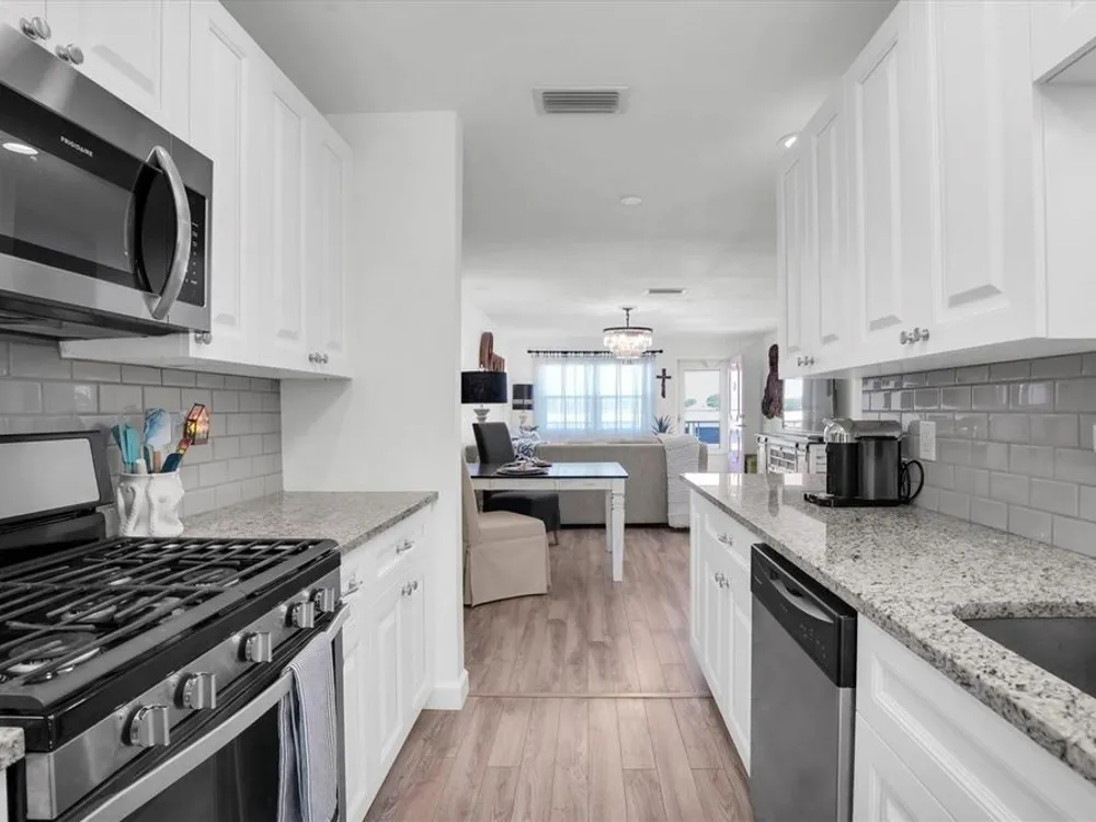 Enjoy the HIGH AND DRY worry-free lifestyle in this beautiful top-floor condo! Unit 505 features 2 bedrooms, 2 bathrooms, and a versatile flex space that can serve as a third bedroom, dining room, craft room, or whatever suits your needs. This stunning condo showcases newer hurricane impact-rated windows, a BRAND NEW A/C (April 2025), elegant flooring, custom kitchen cabinets with gorgeous granite countertops, and stainless steel appliances. Plus, a reserved covered parking spot is conveniently located directly across from the building entrance. You’ll love the panoramic views of the fireworks on the 4th of July! Five Towns' expansive grounds provide a perfect backdrop for leisurely strolls or relaxation. The property features six man-made lakes and six swimming pools, three of which are heated, along with two community centers that accommodate various activities, including a main auditorium with a stunning stage. Additional amenities include an exercise room, a billiard room with eight tables, and a library. Tennis courts, shuffleboard, and bocce ball courts are available for residents. The community also boasts numerous card rooms, two large auditoriums with kitchens, barbecue areas with grills, and much more! Conveniently located within walking distance of Eagles Shopping Mall, which features a Publix supermarket, post office, banks, restaurants, a sports bar, and much more. Madeira Beach is just a few miles away. Don’t miss your chance to embrace the lively lifestyle this community has to offer!