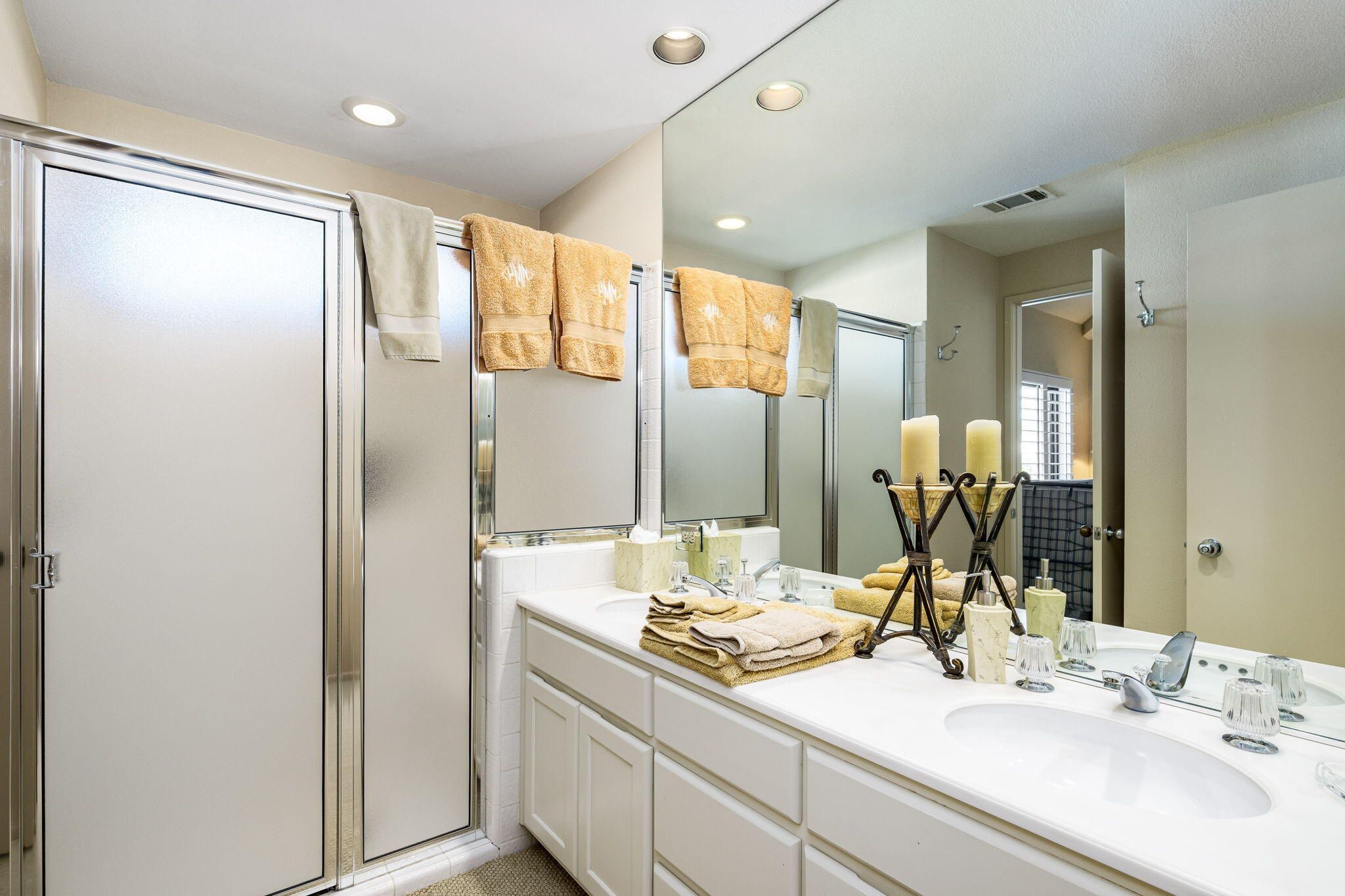 Welcome to your dream retreat in PGA WEST! This stunning end unit Legend 30 offers a perfect blend of luxury and comfort, nestled on the second hole of the world-famous Stadium Course at PGA West. As you stroll through the gate, you'll be greeted by a very large and open front courtyard, setting the stage for the comfort that awaits inside. Step through the front door and be welcomed by the exquisite stone flooring in the entry, hallway, and kitchen. The spacious 2,846 square foot home features 3 bedrooms and 3.5 bathrooms, all completely redone with travertine floors and plush carpeting in the living room, formal dining room, master bedroom, and two secondary bedrooms. The plantation shutters throughout add a touch of sophistication and privacy. Relax and unwind in the inviting living spaces, or take a dip in the pool to cool off on warm days that is conveniently located across the street. If you are looking for a home with a private pool this property boosts an extra large lot that can accompany the private pool of your dreams. This condo is Turnkey Furnished and is truly a must-see, offering a premier membership opportunity for those looking to enjoy the best of La Quinta living.