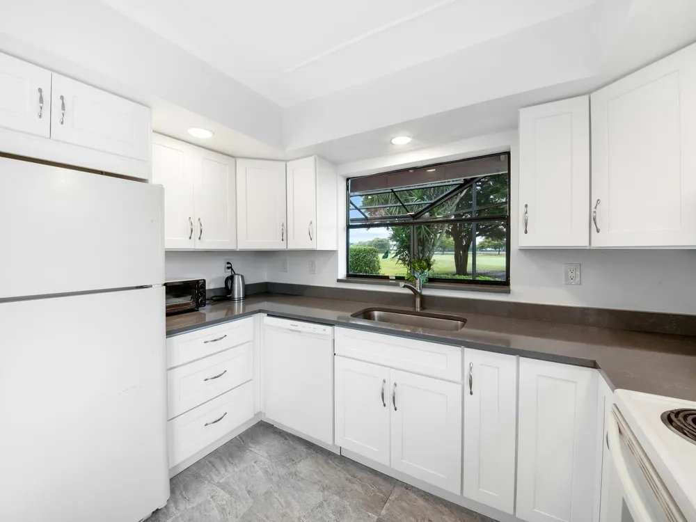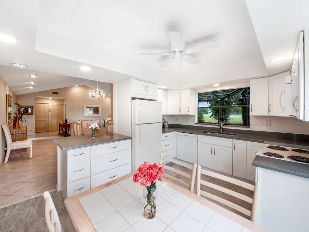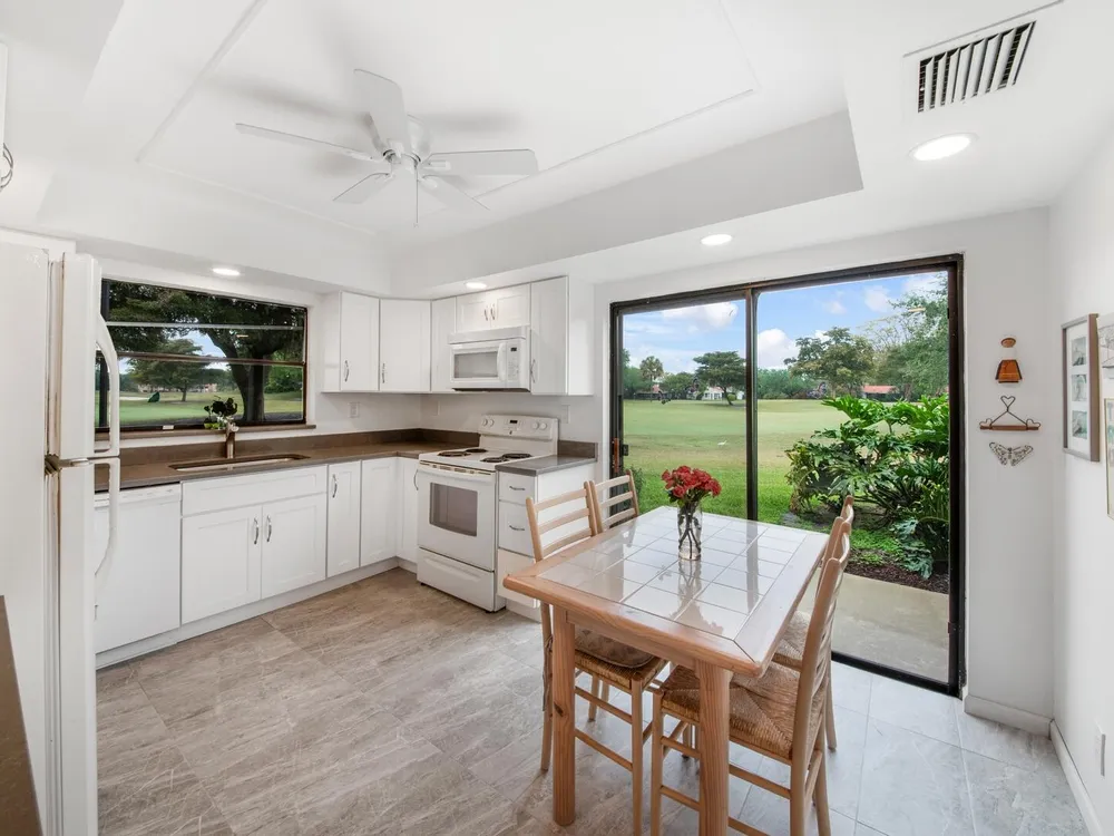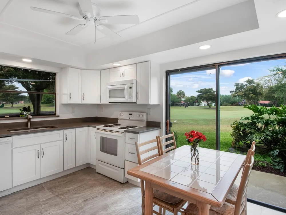 Welcome to this beautifully maintained 2-bedroom, 2.5-bathroom home nestled in the desirable Indian Springs community a 55+ community. Situated on a quiet cul-de-sac, this residence offers a perfect blend of comfort and style with vaulted ceilings, neutral flooring, and smooth walls, creating a bright and airy atmosphere throughout. The spacious kitchen features classic white cabinetry, quartz countertops, and a cozy breakfast nook, with a slider leading to the screen-enclosed patio, perfect for enjoying the serene golf course views. High-hat lighting enhances the home's inviting ambiance, while tons of natural light fills every corner. The primary suite is a private retreat, complete with dual closets and an en-suite bath.