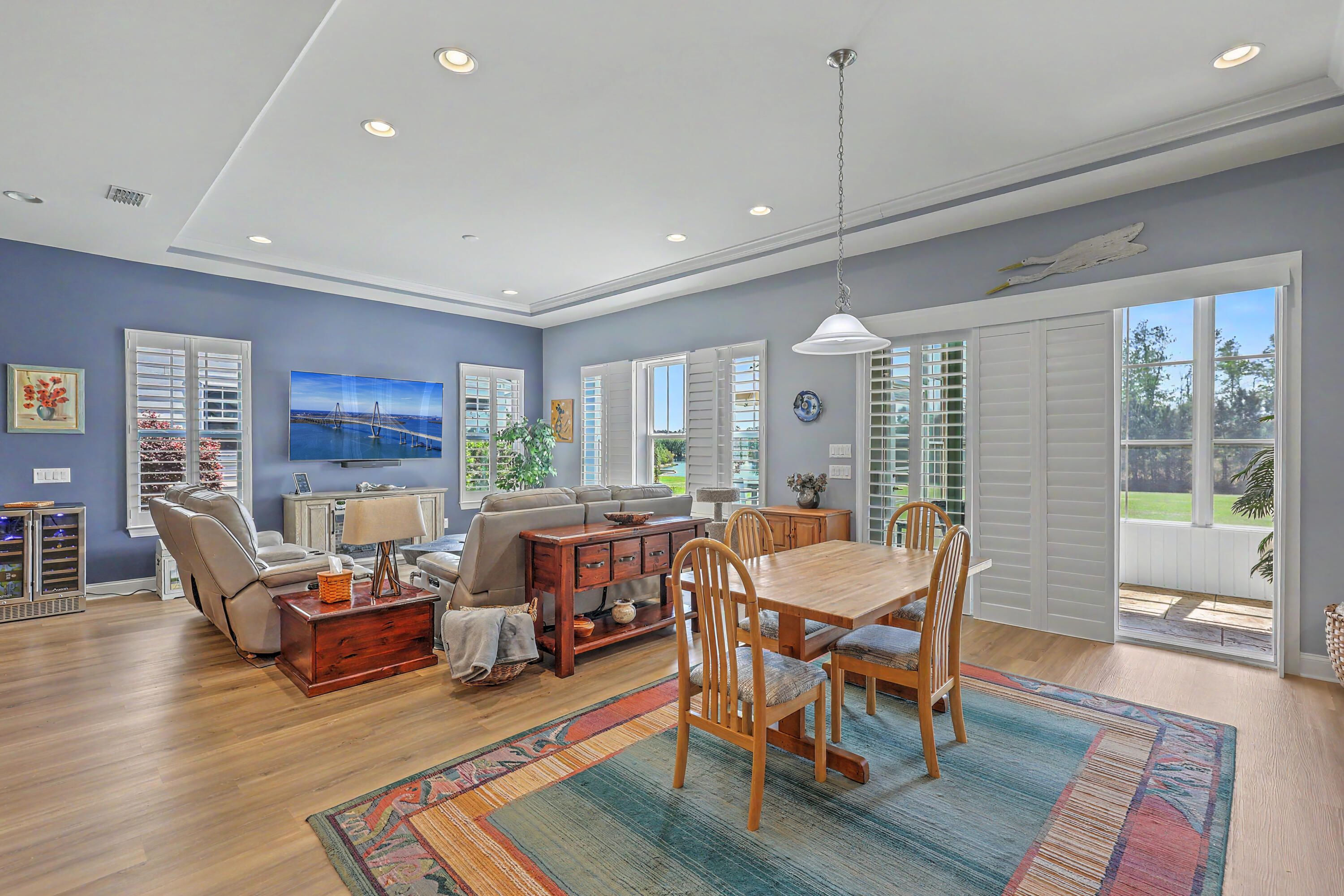 Stunning, lakeview home in the resort style Four Seasons at the Lakes of Cane Bay community! As you approach, you will notice the custom landscaping all around the home. Upon entering, you will find beautiful LVP flooring throughout, except in the bathrooms and utility rooms which have tile flooring. The 10-foot ceilings and 8-foot doors give more of an airy feeling. The large foyer has a recessed ceiling with crown molding. The chair railing and picture molding add elegance to the space. The first bedroom/ensuite is just to the right. It has recessed lighting and a large closet with custom shelving. The full bathroom has a tub/shower combo. The flex room or third bedroom has french doors. As you make your way through, you will find a large open floor plan. The kitchen has quartz countertops. The huge island has a porcelain farm sink and seating area. The 42-inch cabinets have crown molding. This luxury kitchen comes with GE stainless appliances including dual wall ovens, a dishwasher, and a built-in microwave. The gas cooktop has an over-range vent hood that vents outside. The area below the microwave is great for a coffee bar. The dual pantries with custom wood shelving provide plenty of storage. The great room has a tray ceiling and recessed lighting. The dining area has a glass door providing more natural light. You will also find a cove that would make a great reading nook. The large primary is off the great room. It has a tray ceiling and recessed lighting. The primary bathroom has a dual sink vanity, walk-in shower and a water closet. The custom walk-in closet is enormous with tons of shelving. The half bathroom is off the entry hallway. It has a pedestal sink and LVP flooring. The utility/mud room is also off the entryway. Other features include plantation shutters throughout, a tankless gas water heater, gutters, and a garage door opener. The 2-car garage has epoxy flooring and a bay for a golf cart. As you exit to check out the backyard you will find a four-seasons room with pressed concrete flooring. You can sit and enjoy the lake view year-round. The patio is perfect for grilling. The large backyard backs up to the 8 miles of free-flowing water that lead to the 300 acre lake in the back of the community. Enjoy all this 55+ community has to offer, starting with fishing, kayaking, and canoeing from your backyard. The location is so convenient to just about anything you would need. The Market at Cane Bay is golf cart accessible and includes Publix, several restaurants, Starbucks, doctor's office, physical therapy, chiropractic, eye care, dentist office, bank, hair salon, nail & spa, insurance, gas station and more.