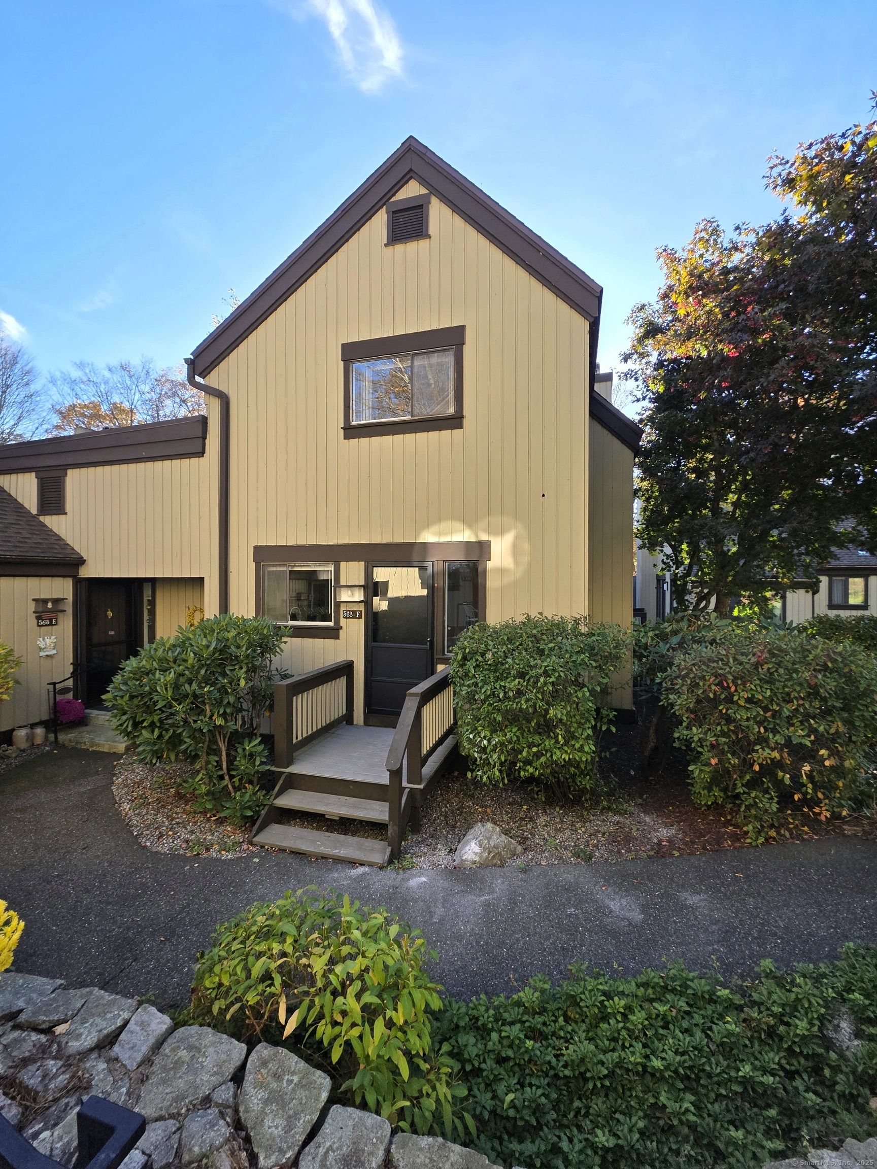 This bright and sunny New Englander style townhouse has a great location in Heritage Village with easy access in and out of the complex plus walking distance to most activity buildings and pools 1 and 2. While the condo has stairs, you also have your own private entrance, no one above or below you, and a real dining room that flows into the living room for easy entertaining. The 2 spacious bedrooms upstairs provide a quiet place to relax even if something's happening on the main level. Another popular feature of the New Englander is the double deck. The covered deck is accessible from the living room slider, while another deck above it, in the larger of the 2 bedrooms will feel like you're perched in a tree house; offering seasonal views of the golf course and a delightful place to relax. The powder room is tucked away for privacy while the wood burning fireplace provides a cozy place to curl up. Newly refinished hardwood floors on the main level. On the upstairs landing you'll find the 2 year old washer and dryer and an additional closet providing even more storage. Both bedrooms share the renovated full bath with a low step shower. NEW HEAT PUMP. End garage w/ storage locker. HOA includes Spectrum w/ premium channels & internet. 4 pools, clubs for all interests, tennis and pickleball courts and so much more here and in the nearby towns. Easy access to Route 84. 90 minutes to NYC, 2 hours to JFK. All residential buyers pay a one time fee of $5000 to HVF at closing.