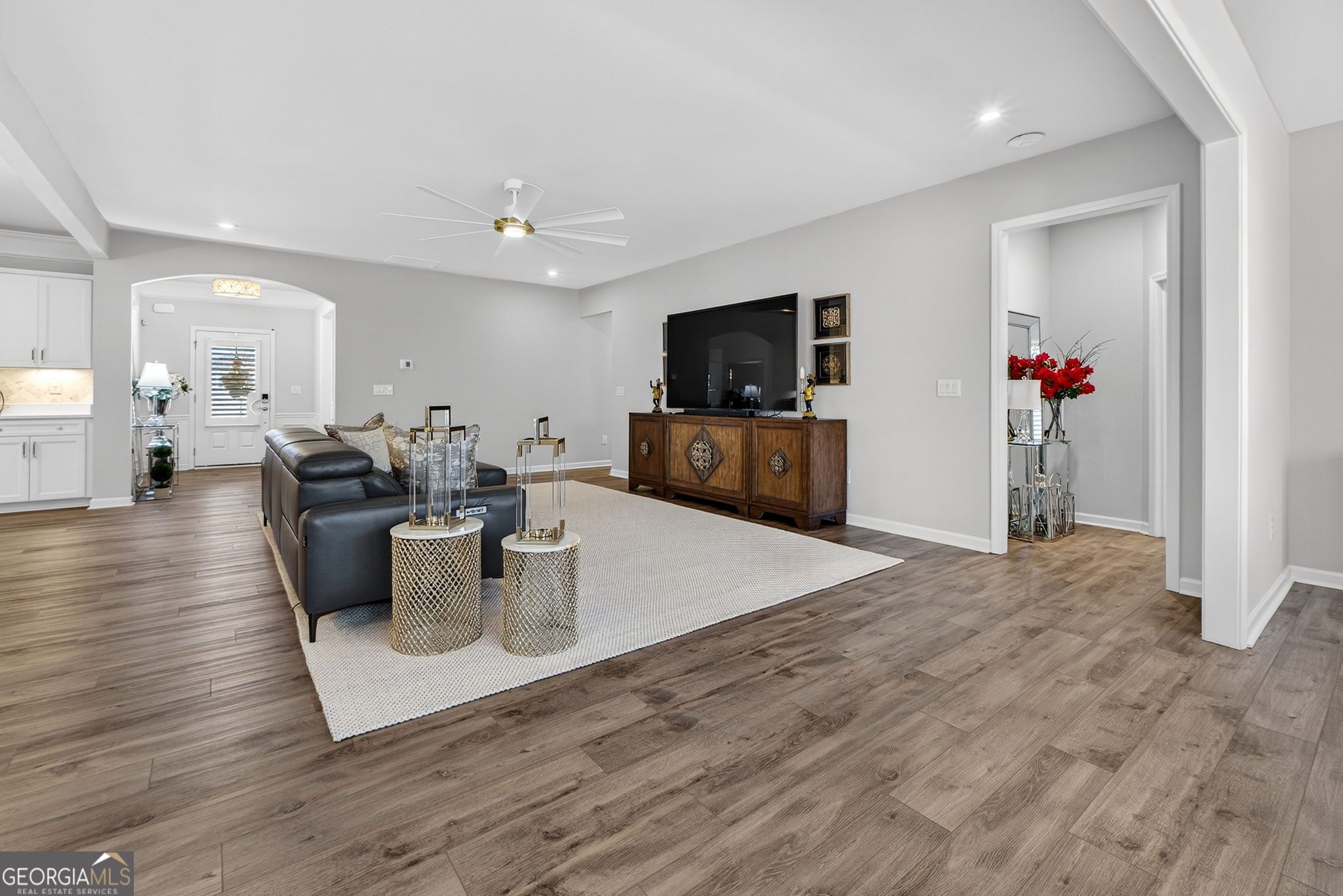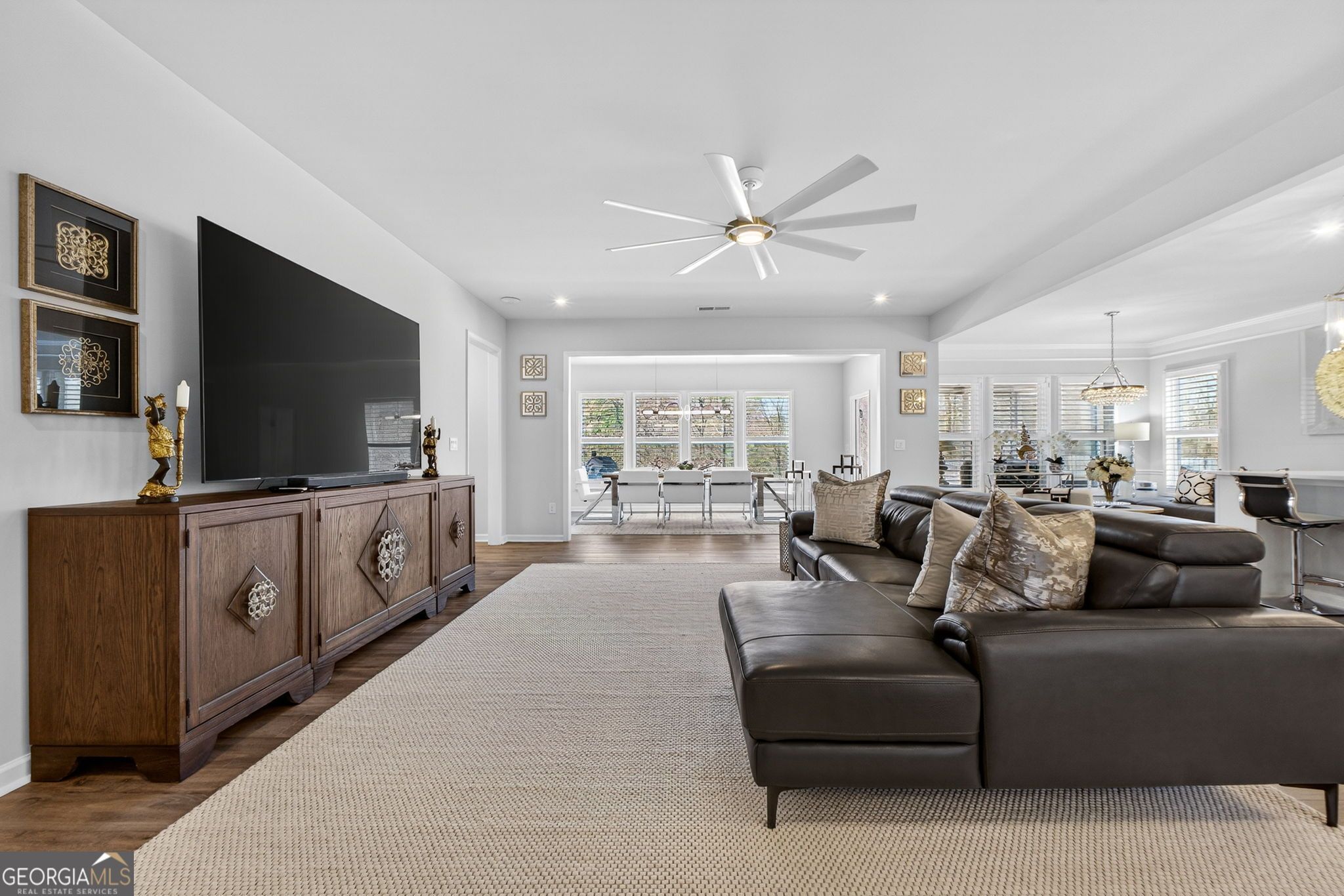 Welcome to the spacious Dunwoody Way floor plan at Sun City Peachtree! This stunning home offers 3 bedrooms plus an office, providing flexibility to suit your lifestyle. Enjoy the open living room perfect for relaxing evenings and entertaining. With 3 full baths!!! The extended garage comfortably accommodates 2 cars plus a golf cart. No need to worry about carpet - this home features LVP flooring throughout, offering durability and easy maintenance. Tastefully designed, the home boasts neutral colors and coordinating finishes, creating a welcoming atmosphere with tons of natural light. The kitchen is a chef's dream, with Stainless Steele appliances, quartz countertops, tiled backsplash, and cabinet pullouts for added convenience. Step into luxury with this expansive master suite, boasting an ensuite bathroom featuring an extra-large walk-in accessible shower, perfect for indulgent relaxation. Seamlessly connected to the ensuite is a spacious master closet complete with built-ins, providing ample storage and organization. Experience comfort, style, and practicality all in one stunning space. The home offers every upgrade that Pulte Homes of Sun City Peachtree offers plus many more! Additional upgrades include custom plantation shutters, custom closets, and lighting upgrades, adding both style and functionality to the home, pre-wired for sound system, Additionally, there's a walk-up staircase to access the above garage storage area. The screened in back patio is the perfect place for quiet gatherings or reading a book. This home is built on a premium lot and no other homes can build behind you and an open side yard to offer a feeling of plenty of room. Priced below value for instant equity in one of Sun City's most sought after plans. Don't miss your chance to make this exquisite home yours - schedule your showing today.