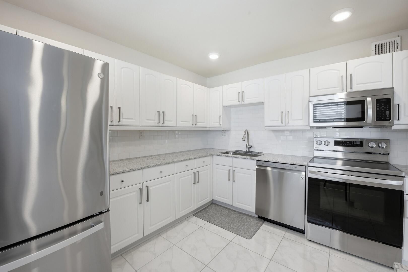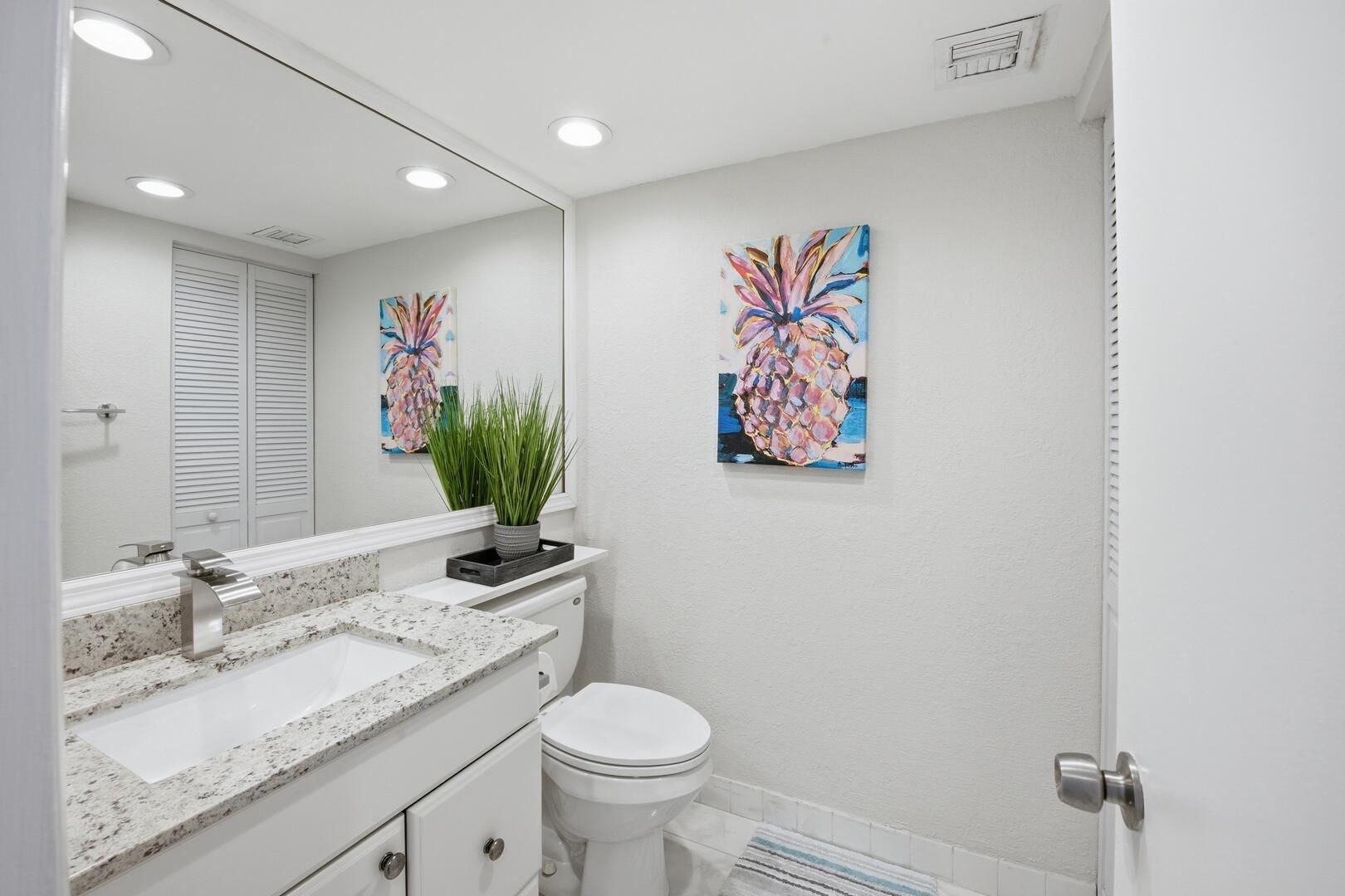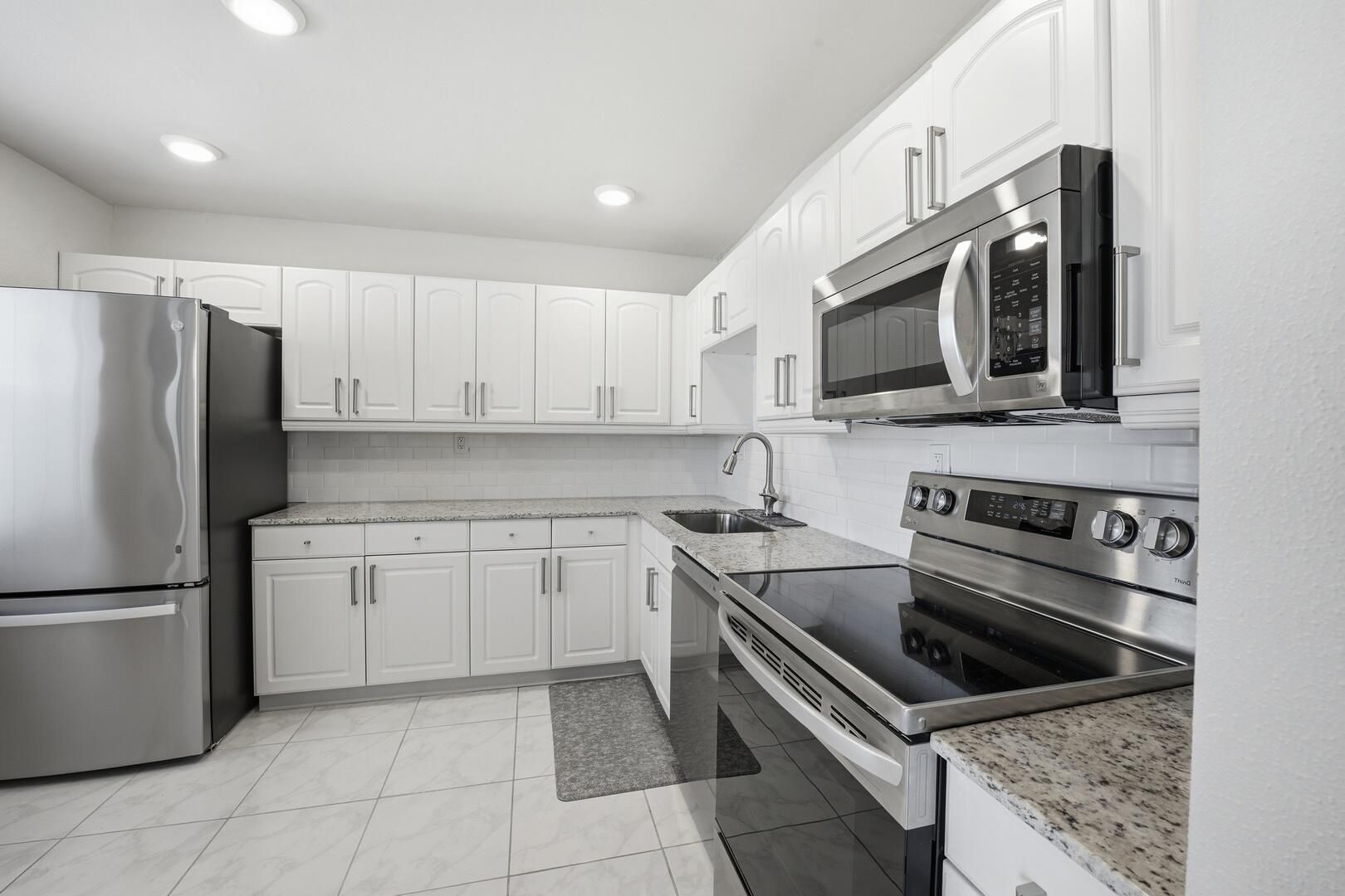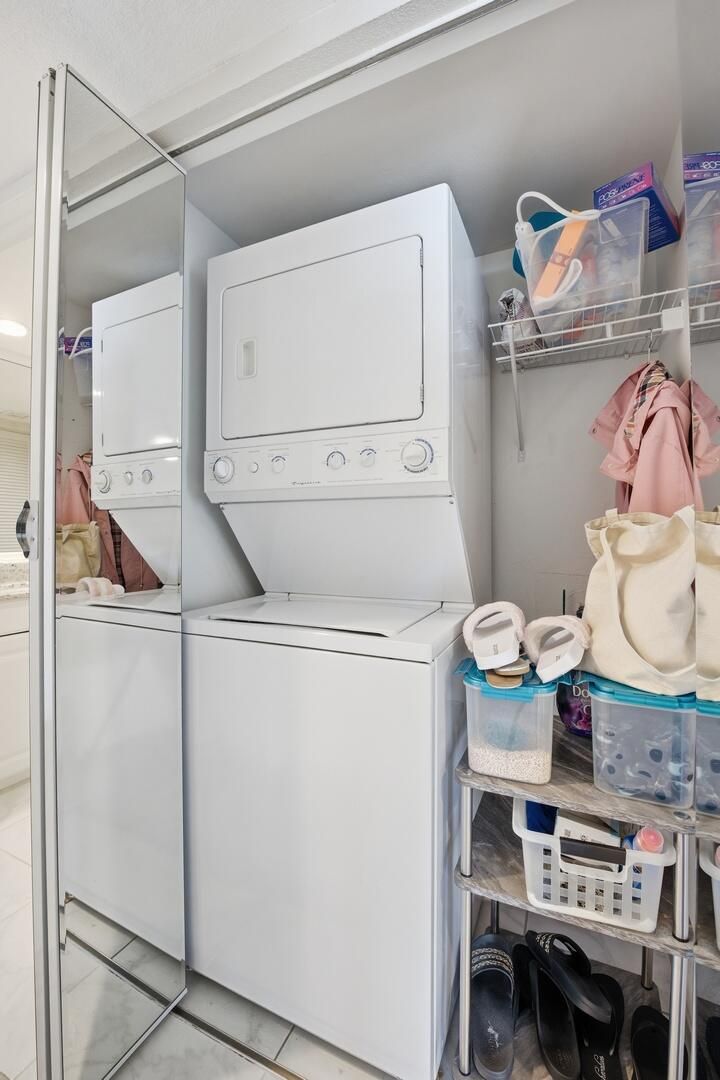 Step into this deluxe, completely renovated model featuring an oversized balcony ideal for outdoor living. This well-appointed unit showcases granite countertops, elegant tile floors, and stainless steel appliances. Enjoy the convenience of an in-unit washer and dryer, impact windows throughout, fresh paint, additional high-hat lighting, and new ceiling fans.