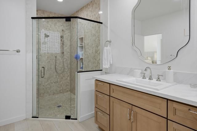 Welcome to a fully reimagined Legends 40 Plan in the heart of PGA West, where timeless architecture meets a comprehensive luxury remodel. Offering approximately 3,031 sq. ft., 3 bedrooms, 3.5 baths, this residence sits on an oversized lot showcasing mountain & southeast views of the 2nd hole of the Stadium Course (perfect spot to watch the American Express Golf Tournament) and now features a newly designed pool and spa courtyard--perfectly tailored for modern desert living.The home opens to light-filled, open-concept living spaces defined by new wide-plank flooring, upgraded doors and hardware throughout, and a clean, contemporary palette. The great room flows effortlessly into the dining and kitchen areas, ideal for entertaining or relaxed everyday living.At the center of the home, the completely remodeled chef's kitchen showcases new custom cabinetry, marble countertops and backsplash, upgraded hardware, and a suite of new Thermador appliances. Both the island and peninsula have been extended, providing exceptional prep space, seating, and functionality. Additional upgrades include an instant hot water dispenser, new garbage disposal, and thoughtfully updated lighting.The bathrooms have been renovated with new cabinetry, countertops, and hardware, delivering a spa-inspired experience with cohesive design throughout. The primary suite offers a serene retreat with generous proportions and a beautifully updated bath.Recent improvements extend beyond the interiors, including new pool and spa equipment, redesigned courtyard landscaping, and new pavers, creating a private outdoor oasis ideal for entertaining or unwinding under the desert sky.Additional enhancements include a new washer and dryer and the installation of a hot water recirculation pump, providing faster hot water delivery throughout the home.This is a rare opportunity to own a move-in-ready, extensively remodeled home in one of PGA West's most desirable floor plans.