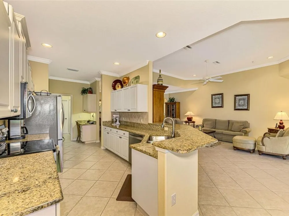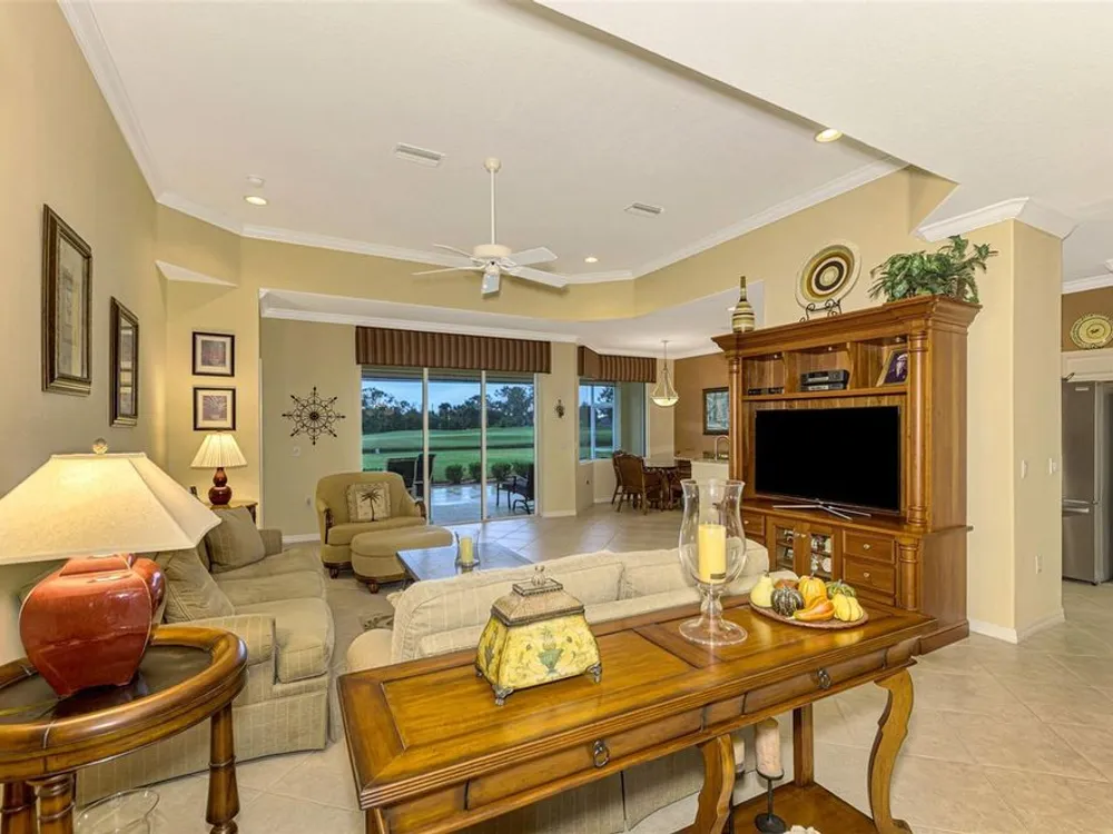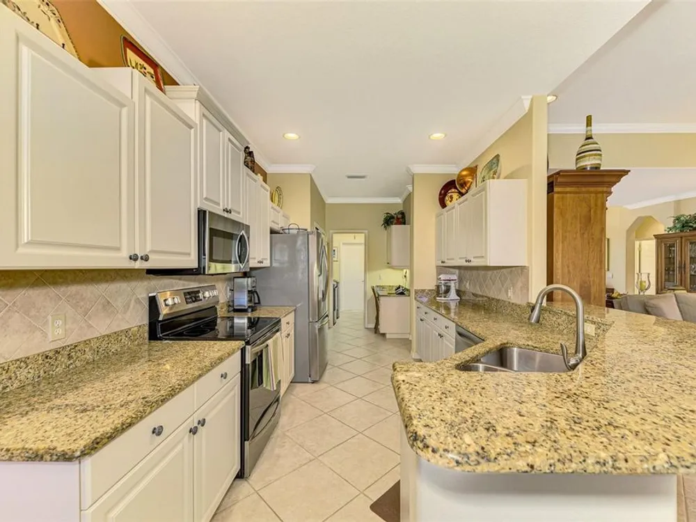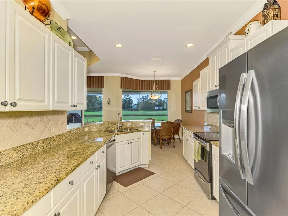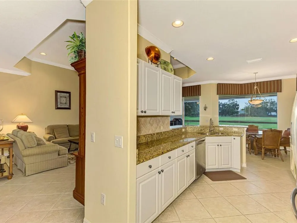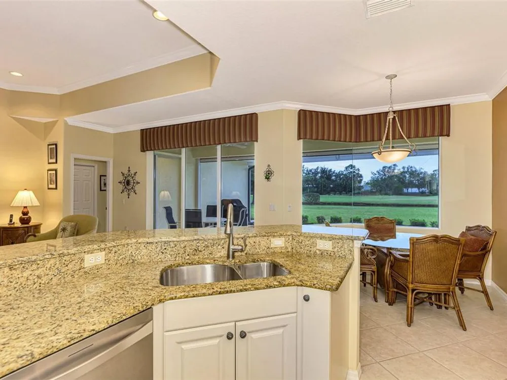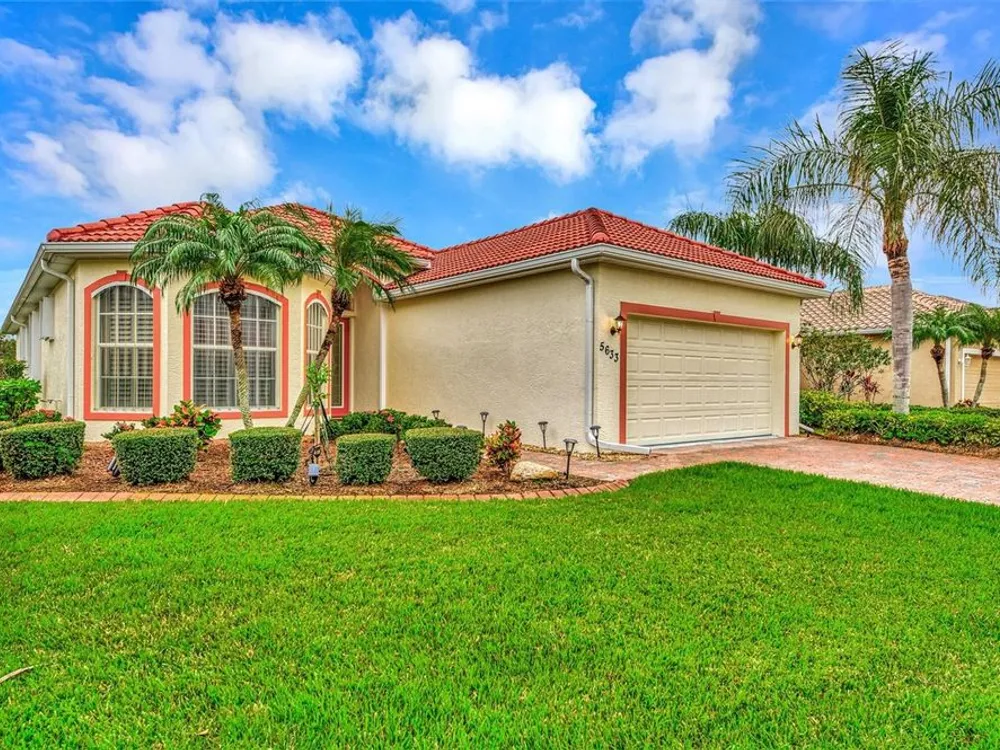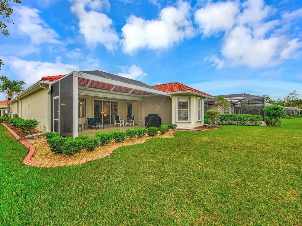 HERON CREEK GOLF & COUNTRY CLUB where "Nothing Compares" well, the same can be said about this PRISTINE 3BED 2BATH single family home with an OVERSIZED 2 car garage and stunning WATER & GOLF Views!!*New TILE ROOF (2023) * Full HURRICANE PROTECTION* Located in X Flood Zone (flood insurance NOT required). This snappy one owner home checks all the boxes and will certainly catch the eyes of savvy buyers so don't blink or your heart will be broken! Situated on one of Heron Creek's Premium home sites she sits proud amidst beautiful tropical landscaping and features a pavered driveway, custom curbing to frame the planting beds, a classic barrel tile roof, bay front windows and a lovely, covered entry that has Welcome Home written all over it! As you enter through double leaded glass door you can immediately tell that this casually elegant home is ABSOLUTELY IMMACULATE and has been meticulously maintained by the original owners since it was built! Her open and airy floorplan boasts over 1800 sq ft under air and is well suited for easy living and entertaining alike! She is MOVE-IN READY! Her interior features a pleasing neutral color pallet with pops of color channeling an island Tommy Bahama vibe, custom window valances, laminate flooring in all the bedroom and lots of handsome crown molding throughout! The thoughtfully designed layout includes an Open Concept Great Room, a private dining area with a beautiful painted tray ceiling, lots of easy-care ceramic tile on the diagonal in living areas, a private two-bedroom guest suite, expansive Primary with en-suite bath extra deep walk-in closet and a pocketing slider that provides easy access to lanai. The kitchen was upgraded with lovely Granite countertops, steepled cream wood cabinetry & Stainless-Steel appliances including a new French door refrigerator (2024). The sunny breakfast nook features custom aquarium glass windows to take in the gorgeous view of the lake and course beyond. The kitchen area also features a double door pantry and a versatile built-in desk area. Between the Kitchen and the garage there is a true laundry room with laundry sink, NEW WASHER & DRYER and extra built in cabinetry. From the Great room you can push back the cascading sliding glass doors welcome the outside in! The extended "CLEAR-VIEW" lanai provides a beautiful oasis to rest & relax at the end of a long day enjoying all paradise has to offer and of course a front row seat to savor the majestic sunsets! The home site is extra deep, so you have a real yard and there is plenty of room if you wanted to put in the pool of your dreams! Bonus features include extended garage depth, Motorized KEVLAR hurricane screens at front entry and lanai in addition to shutters, H2O heater (2024), guest bath vanity w/ quartz countertop, new gutters /downspouts & new Lift Master garage door opener w/ battery back-up! Heron Creek Golf & CC offers a spectacular clubhouse, an amazing array of social activities, 27-hole Authur Hills championship golf course & practice facility, Tennis, fitness center & resort style pool. Required membership starting as low as 268/month. HOA fees INC: all ground maintenance, irrigation, Cable, High Speed Internet & guarded gate entry! Hurry "Nothing Compares" the only thing this home is missing is you! Heron Creek is centrally located w/ easy access to I-75, only a short commute to the new SMH Health care facility, gulf beaches, downtown Venice, COSTCO, Wellen Park, the Braves stadium & local airports