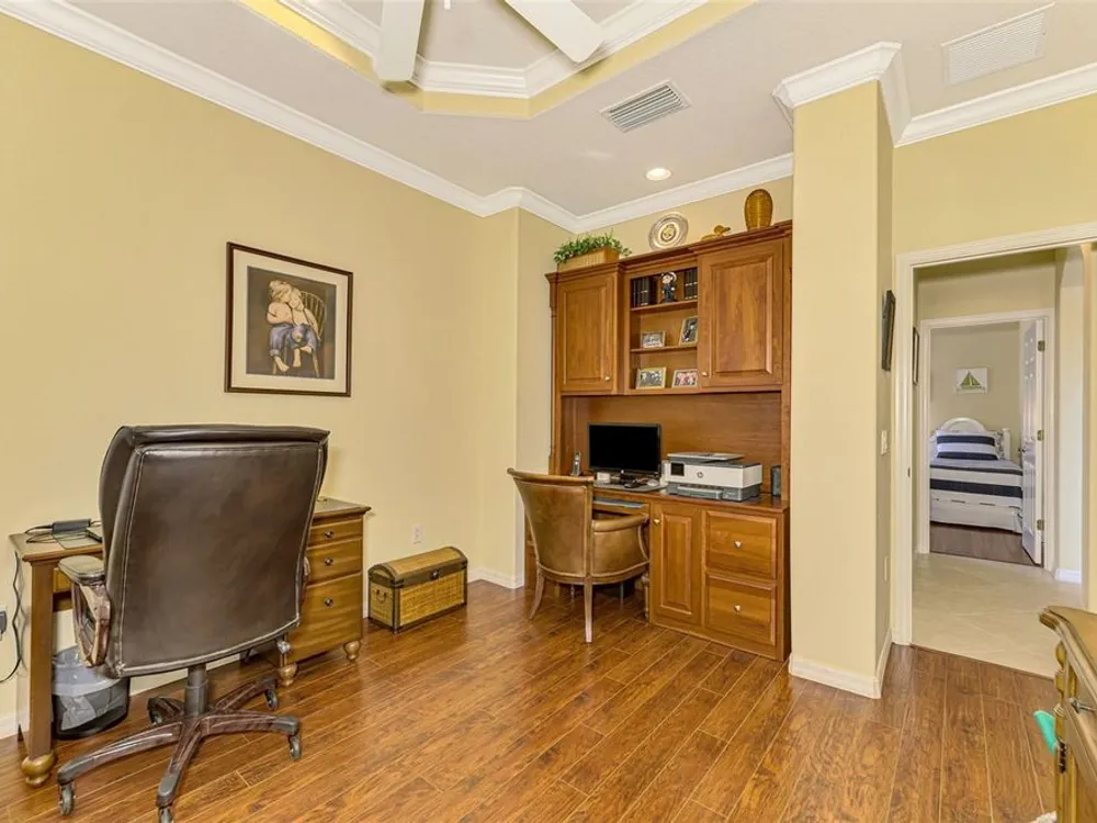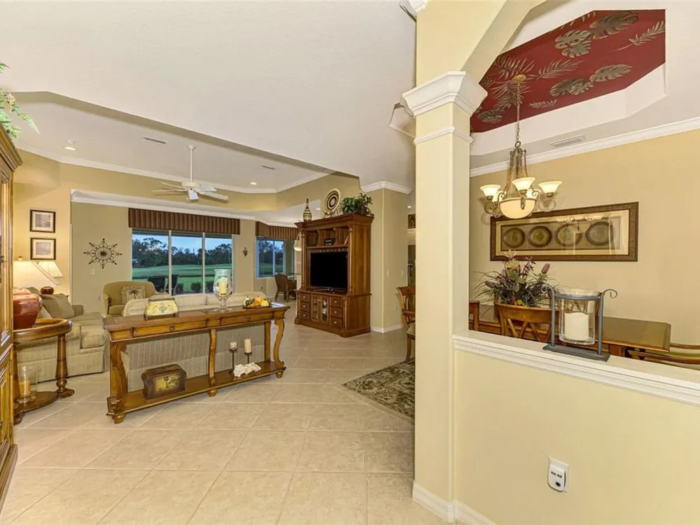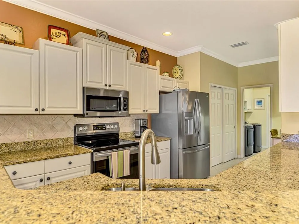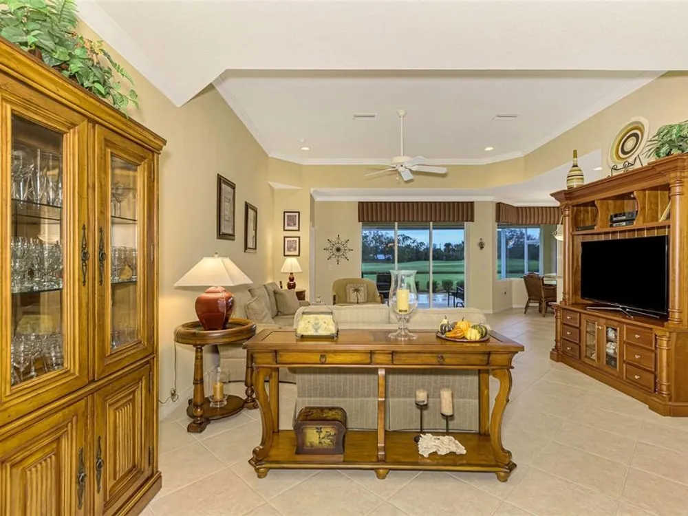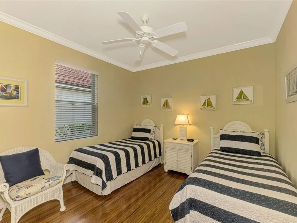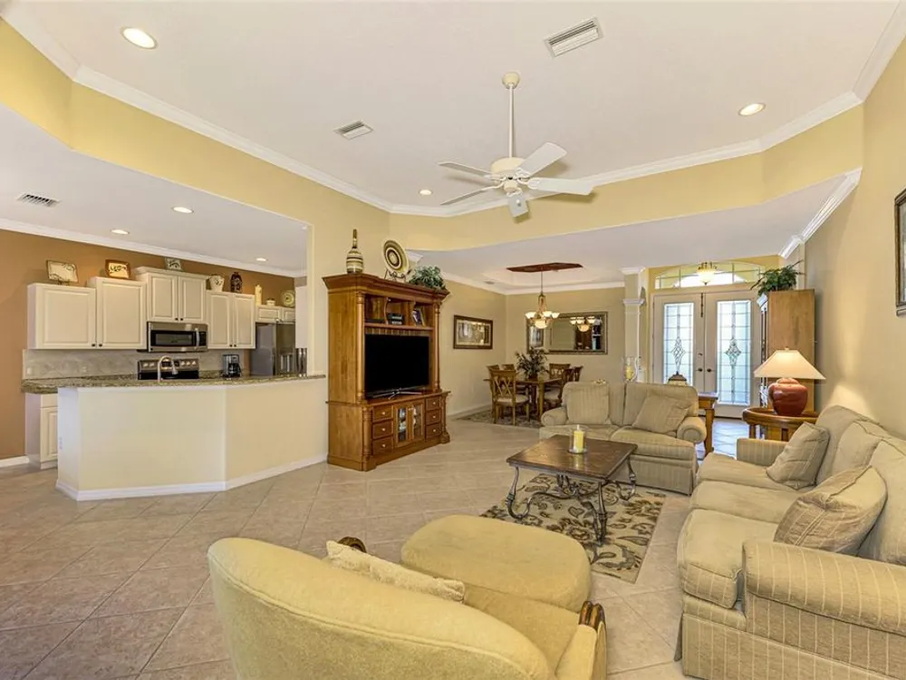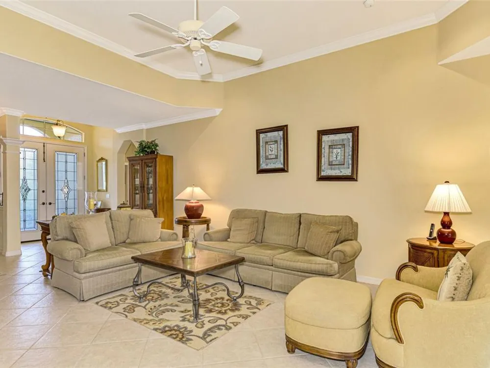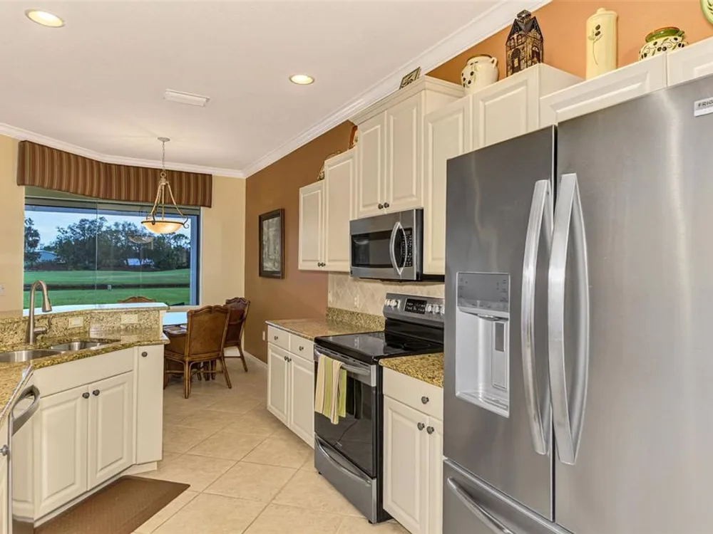 HERON CREEK GOLF & COUNTRY CLUB where "Nothing Compares" well, the same can be said about this PRISTINE 3BED 2BATH single family home with an OVERSIZED 2 car garage and stunning WATER & GOLF Views!!*New TILE ROOF (2023) * Full HURRICANE PROTECTION* Located in X Flood Zone (flood insurance NOT required). This snappy one owner home checks all the boxes and will certainly catch the eyes of savvy buyers so don't blink or your heart will be broken! Situated on one of Heron Creek's Premium home sites she sits proud amidst beautiful tropical landscaping and features a pavered driveway, custom curbing to frame the planting beds, a classic barrel tile roof, bay front windows and a lovely, covered entry that has Welcome Home written all over it! As you enter through double leaded glass door you can immediately tell that this casually elegant home is ABSOLUTELY IMMACULATE and has been meticulously maintained by the original owners since it was built! Her open and airy floorplan boasts over 1800 sq ft under air and is well suited for easy living and entertaining alike! She is MOVE-IN READY! Her interior features a pleasing neutral color pallet with pops of color channeling an island Tommy Bahama vibe, custom window valances, laminate flooring in all the bedroom and lots of handsome crown molding throughout! The thoughtfully designed layout includes an Open Concept Great Room, a private dining area with a beautiful painted tray ceiling, lots of easy-care ceramic tile on the diagonal in living areas, a private two-bedroom guest suite, expansive Primary with en-suite bath extra deep walk-in closet and a pocketing slider that provides easy access to lanai. The kitchen was upgraded with lovely Granite countertops, steepled cream wood cabinetry & Stainless-Steel appliances including a new French door refrigerator (2024). The sunny breakfast nook features custom aquarium glass windows to take in the gorgeous view of the lake and course beyond. The kitchen area also features a double door pantry and a versatile built-in desk area. Between the Kitchen and the garage there is a true laundry room with laundry sink, NEW WASHER & DRYER and extra built in cabinetry. From the Great room you can push back the cascading sliding glass doors welcome the outside in! The extended "CLEAR-VIEW" lanai provides a beautiful oasis to rest & relax at the end of a long day enjoying all paradise has to offer and of course a front row seat to savor the majestic sunsets! The home site is extra deep, so you have a real yard and there is plenty of room if you wanted to put in the pool of your dreams! Bonus features include extended garage depth, Motorized KEVLAR hurricane screens at front entry and lanai in addition to shutters, H2O heater (2024), guest bath vanity w/ quartz countertop, new gutters /downspouts & new Lift Master garage door opener w/ battery back-up! Heron Creek Golf & CC offers a spectacular clubhouse, an amazing array of social activities, 27-hole Authur Hills championship golf course & practice facility, Tennis, fitness center & resort style pool. Required membership starting as low as 268/month. HOA fees INC: all ground maintenance, irrigation, Cable, High Speed Internet & guarded gate entry! Hurry "Nothing Compares" the only thing this home is missing is you! Heron Creek is centrally located w/ easy access to I-75, only a short commute to the new SMH Health care facility, gulf beaches, downtown Venice, COSTCO, Wellen Park, the Braves stadium & local airports