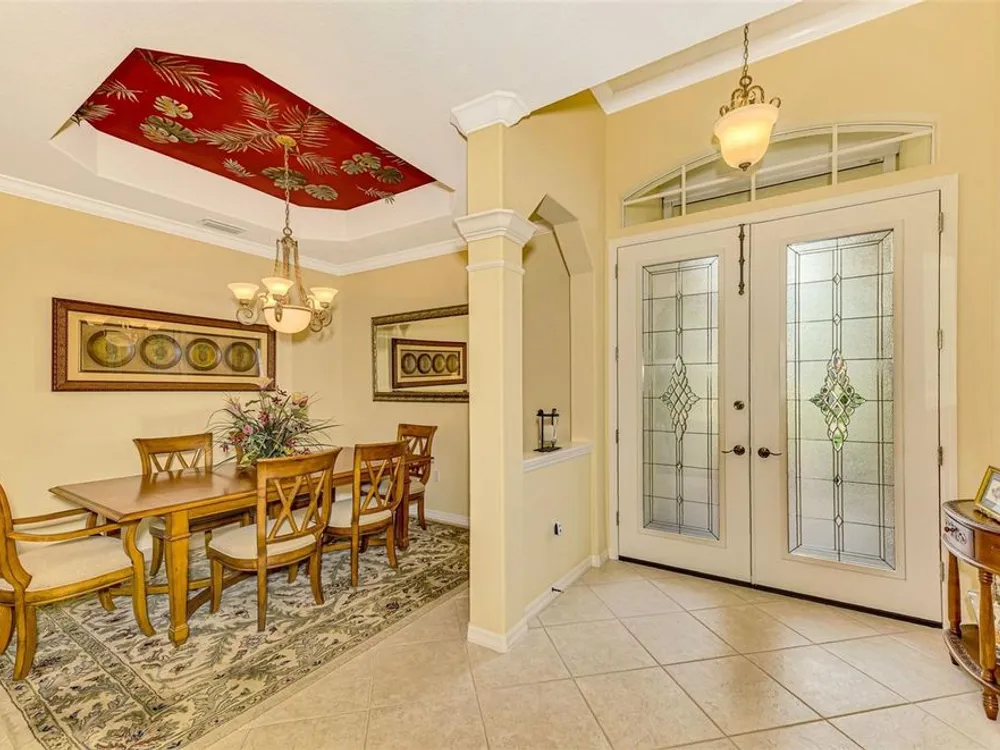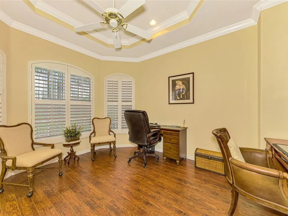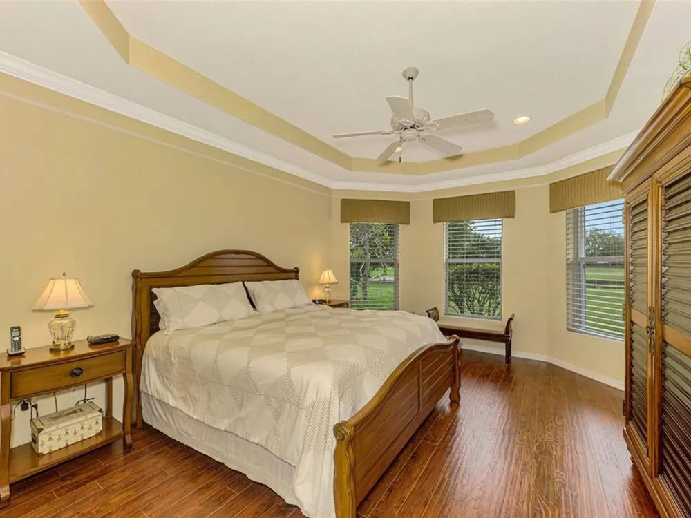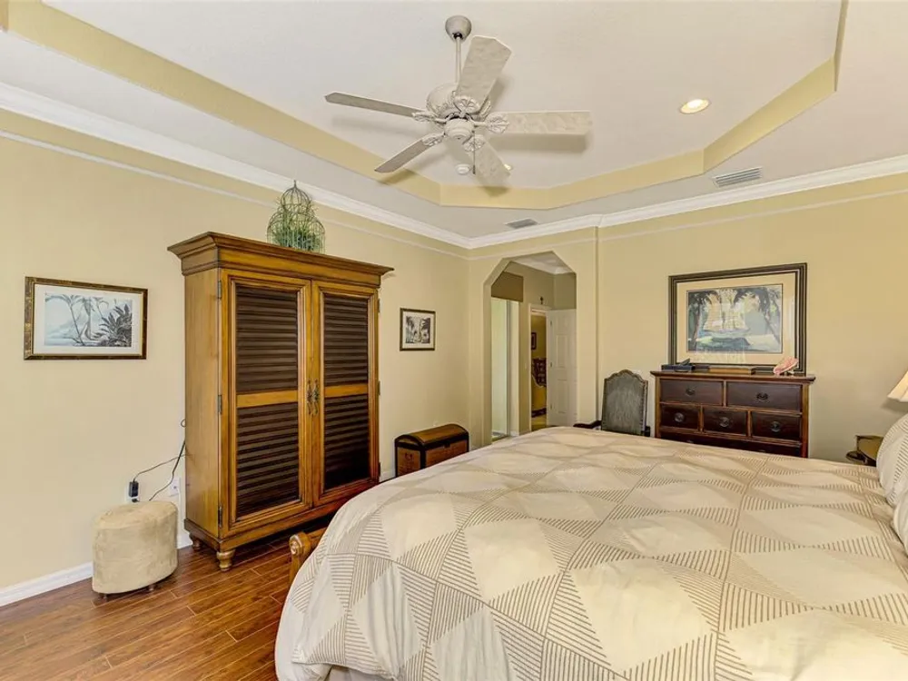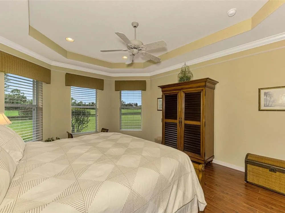 - Ceiling Fan(s), Crown Molding, Eat-in Kitchen, High Ceilings, Open Floorplan, Solid-Wood Cabinets, Stone Counters, Tray Ceiling(s), Walk-In Closet(s), Window Treatments