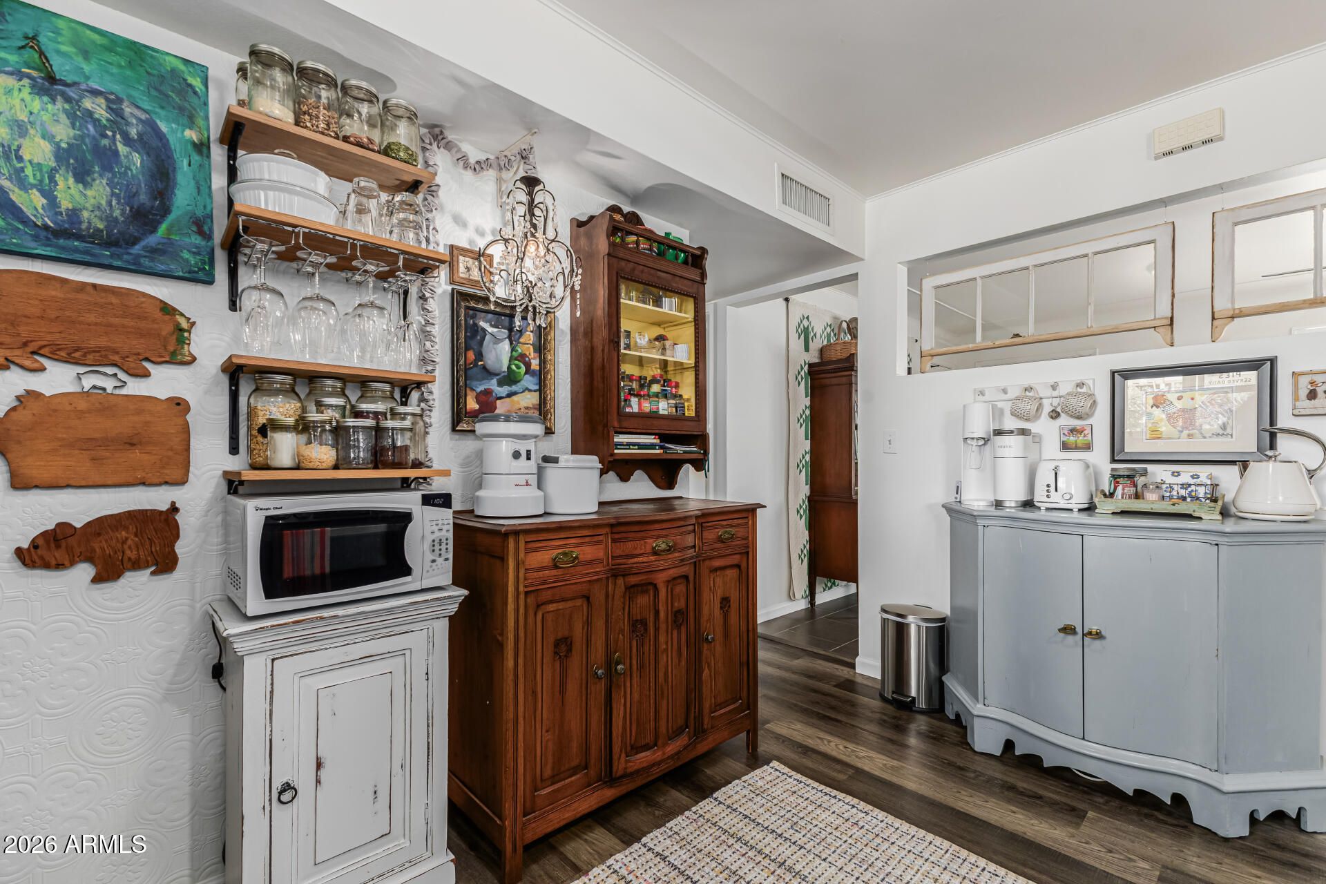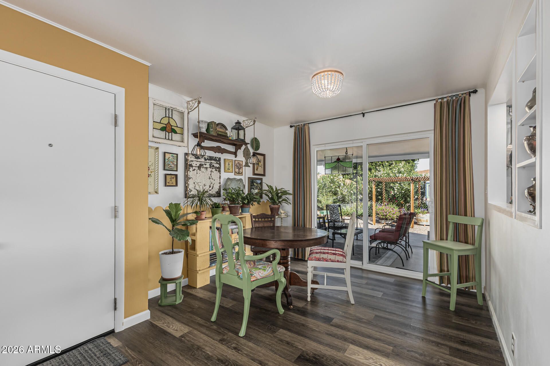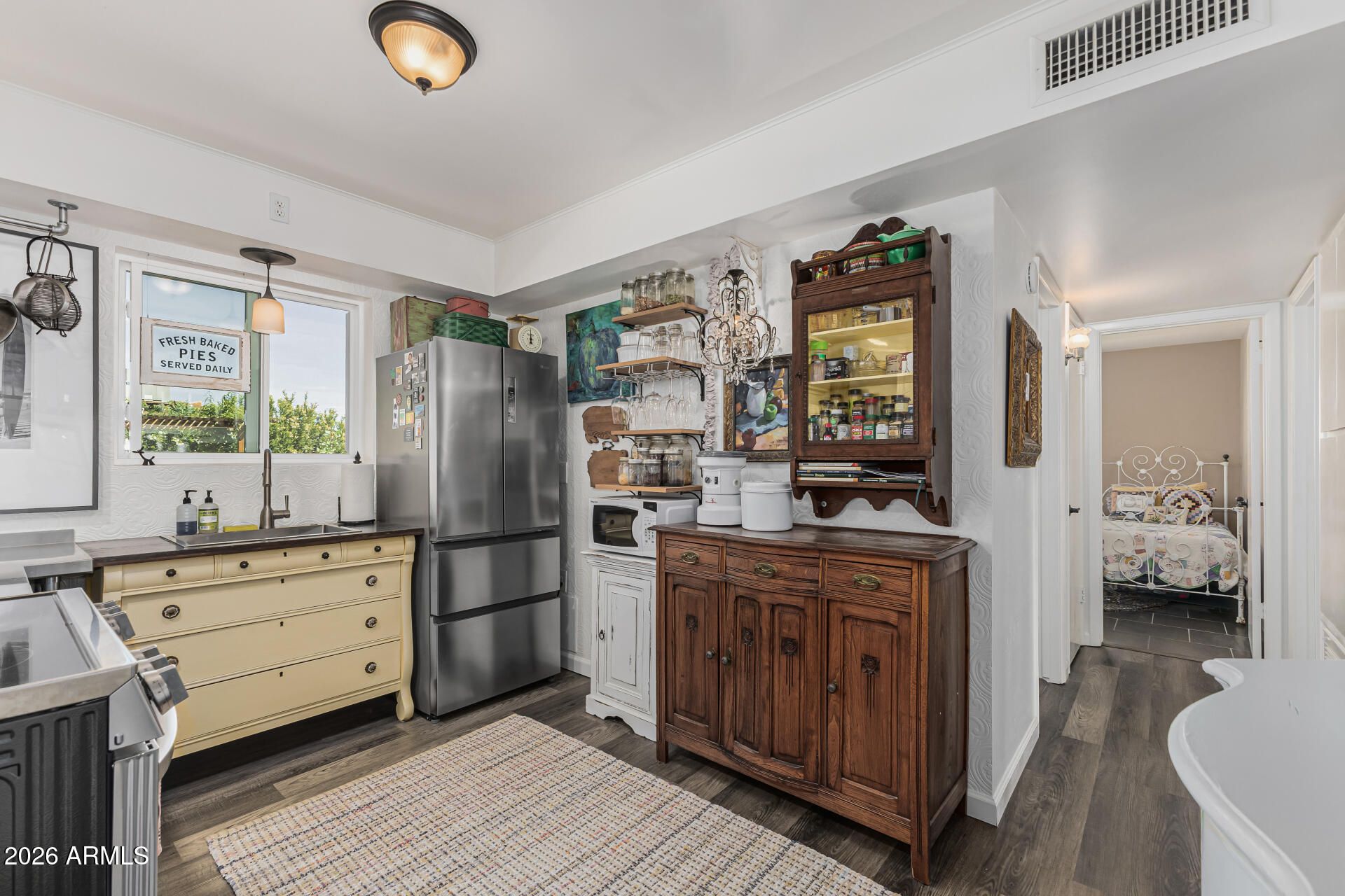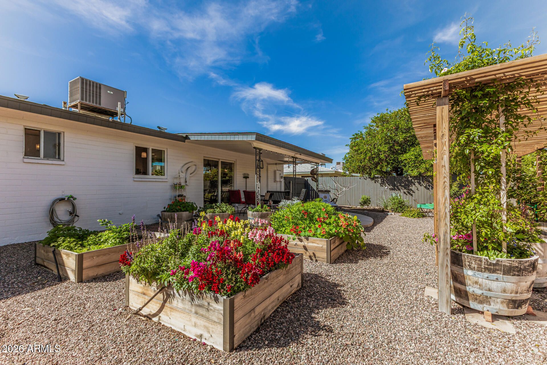 This lovely, remodeled home is a gardener's delight!, The interior is light and bright with tile and luxury vinyl plank flooring throughout. Plantation shutters, cover dual pane windows to keep you cool on those hot Arizona days. The totally custom, European style kitchen holds antique pieces of furniture as cabinetry and stainless steel tables for work spaces and, as the cabinets are furniture, you have flexibility in your layout! You'll love the spacious bedrooms and fully updated bathroom. The backyard is a paradise, with a cozy covered patio ideal for morning coffee and offers ample space for friends and loved ones to gather. A custom pergola and gardener's shed is the perfect addition to all the trees and flowers in this beautiful garden. Don't miss this meticulously cared for home!