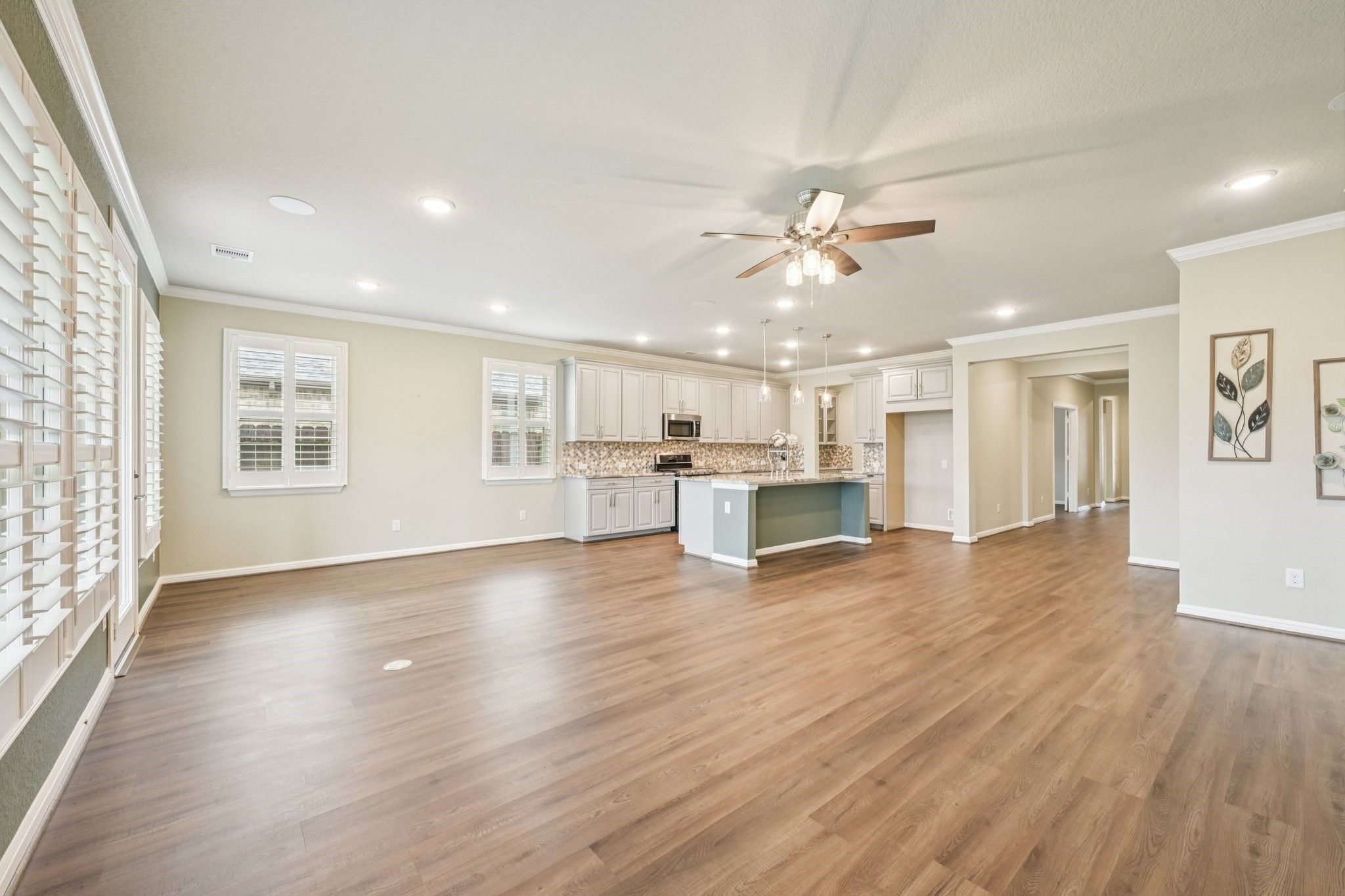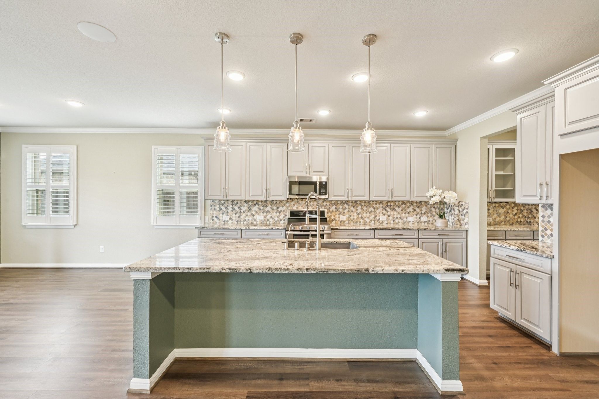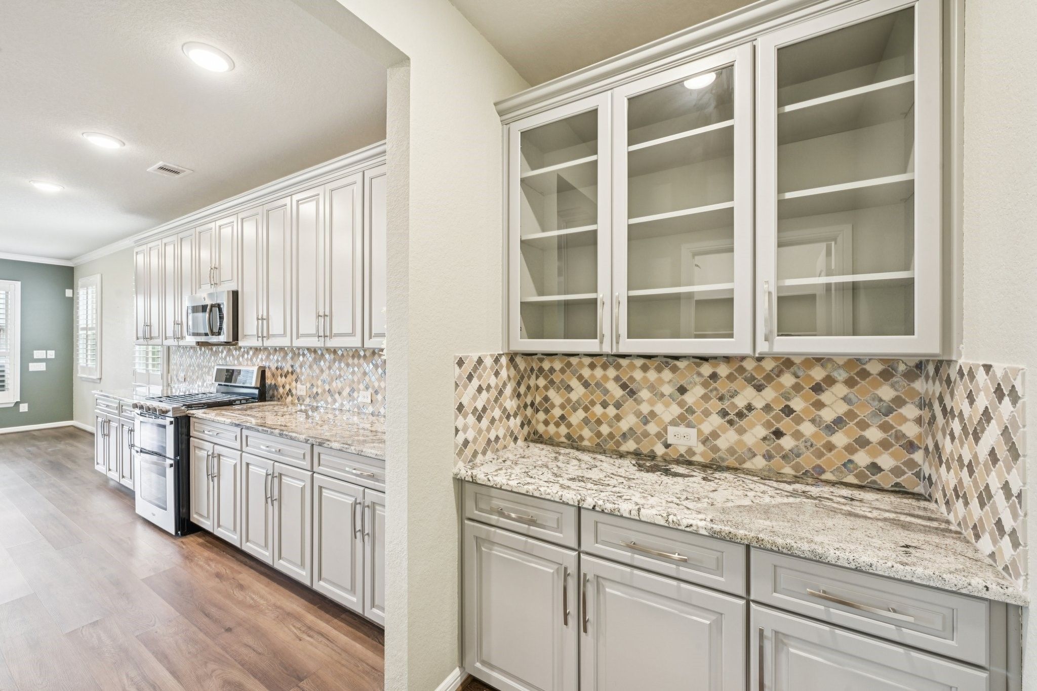 - Breakfast Bar, Butler Pantry, Crown Molding, Double Vanity, Entrance Foyer, Granite Counters, High Ceilings, Kitchen Island, Kitchen/Family Room Combo, Pantry, Self-closing Cabinet Doors, Self-closing Drawers, Tub Shower, Walk-In Pantry, Wired for Sound, Window Treatments, Ceiling Fan(s), Living/Dining Room, Programmable Thermostat