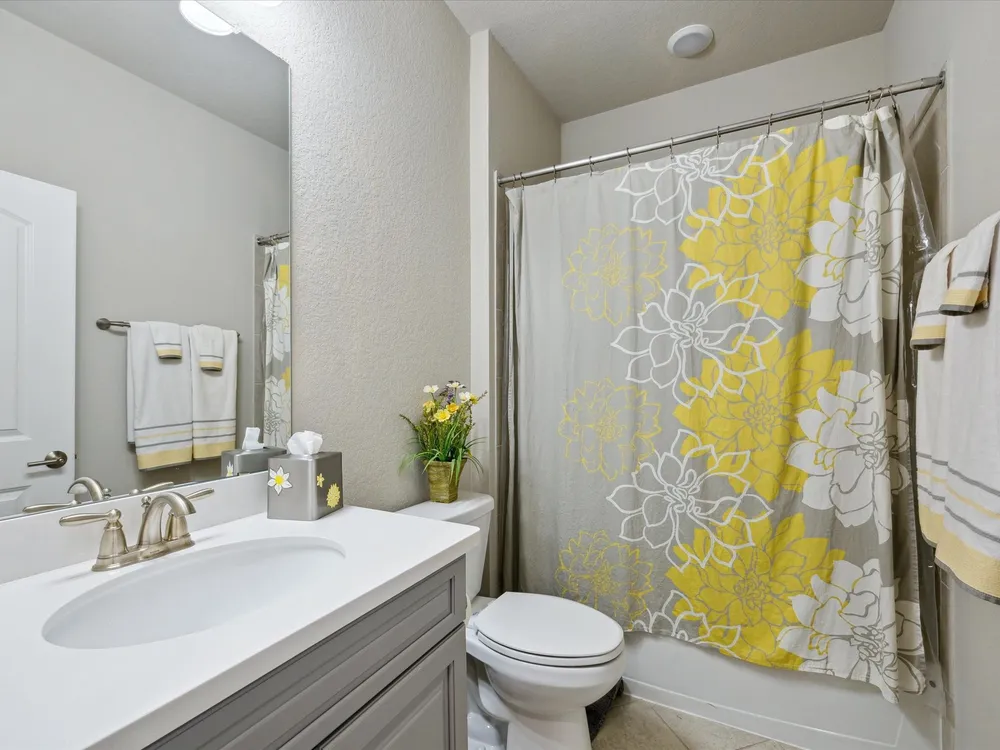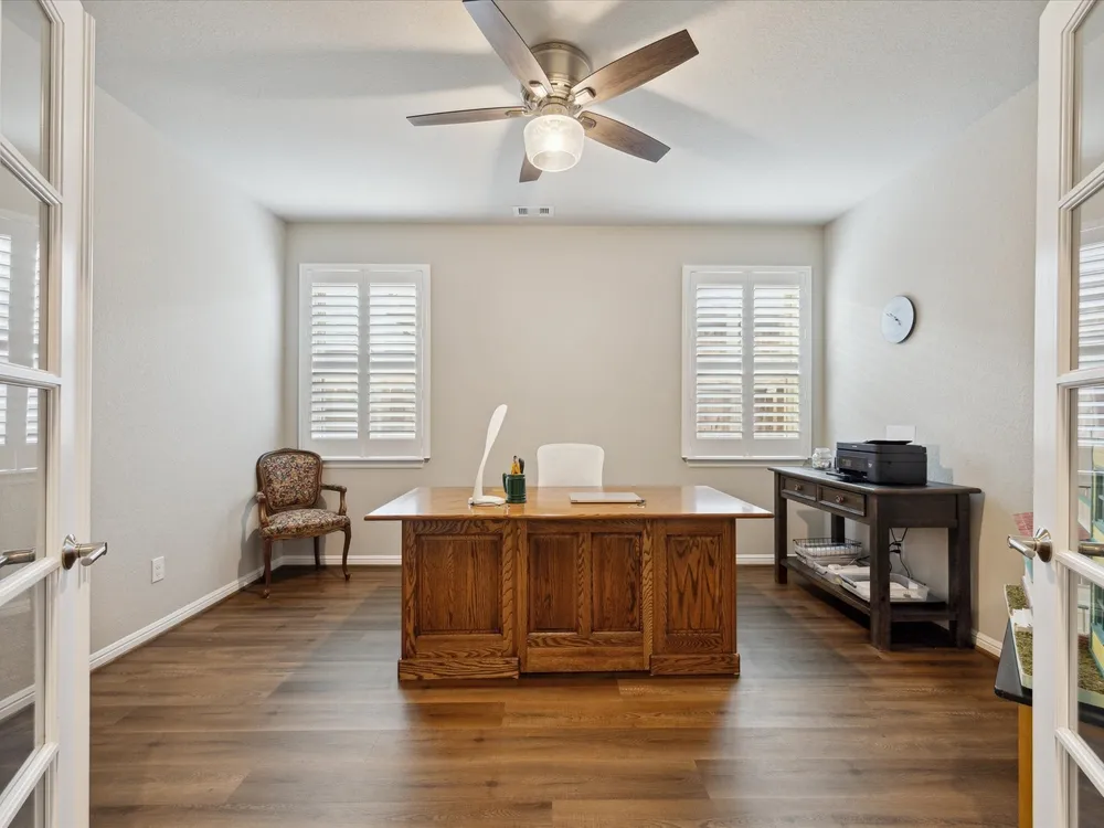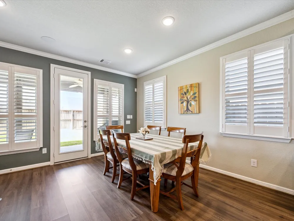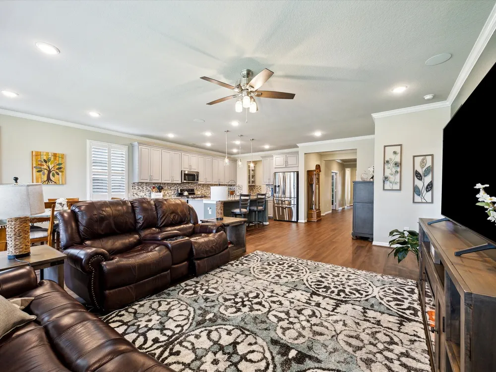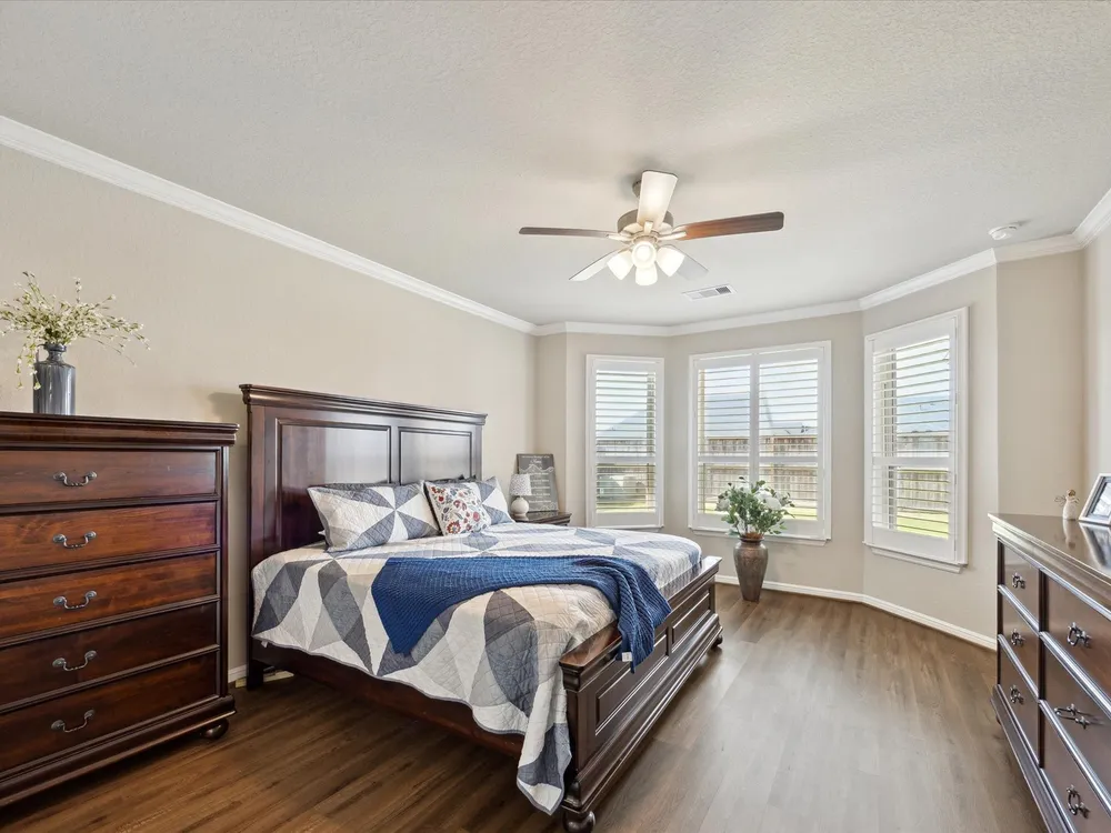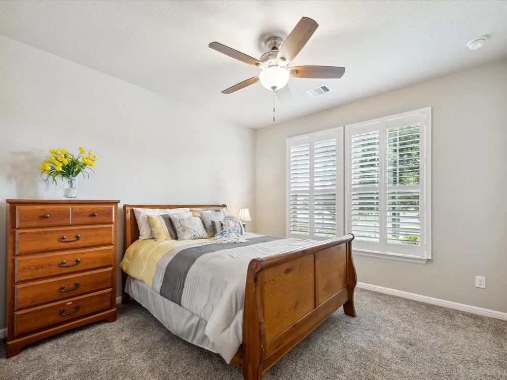 This home is situated on a quiet cul-de-sac street. Featuring a 4-sided brick & stone entryway, includes a covered patio, 3 bedrms, 3 baths, 3 car garage w/ a workbench & drop zone as you enter from the garage. All this with over 2,000 sq ft downstairs. This grand entryway flows into the open concept of Living, Dining, & kitchen area, which includes a breakfast bar, butler's pantry, granite countertops, gas cooktop & stove. The oversized primary bedroom features a bay window. The Primary bath has double vanities, walk-in closets & a huge walk-in shower. The 2-bedrm & bath, home office & laundry room are all downstairs. Upstairs boasts over 770 sqft. includes a large gameroom, 3rd bedrm & bath, and tons of storage closets. This makes this home great for entertaining family and friends. The DOVETAIL floor plan has many upgrades: Plantation Shutters, Surround Sound, and Luxury Vinyl Plank Flooring, too many to mention here, so please come view this home yourself today!
