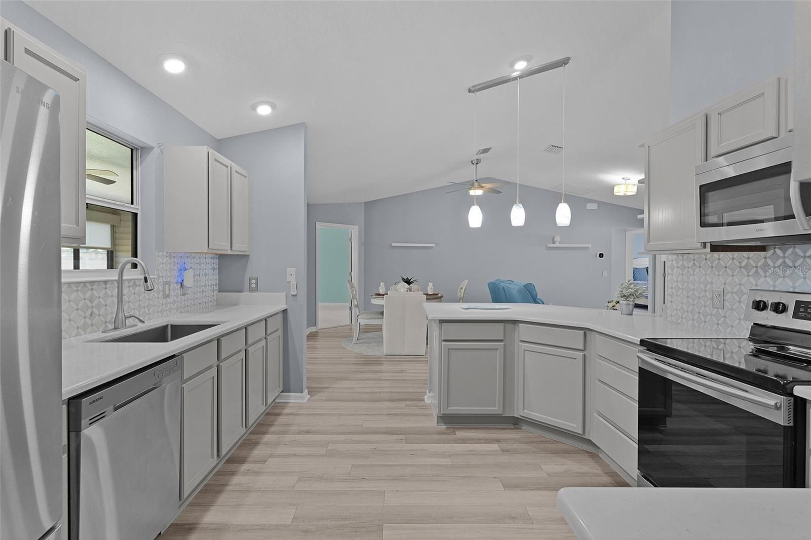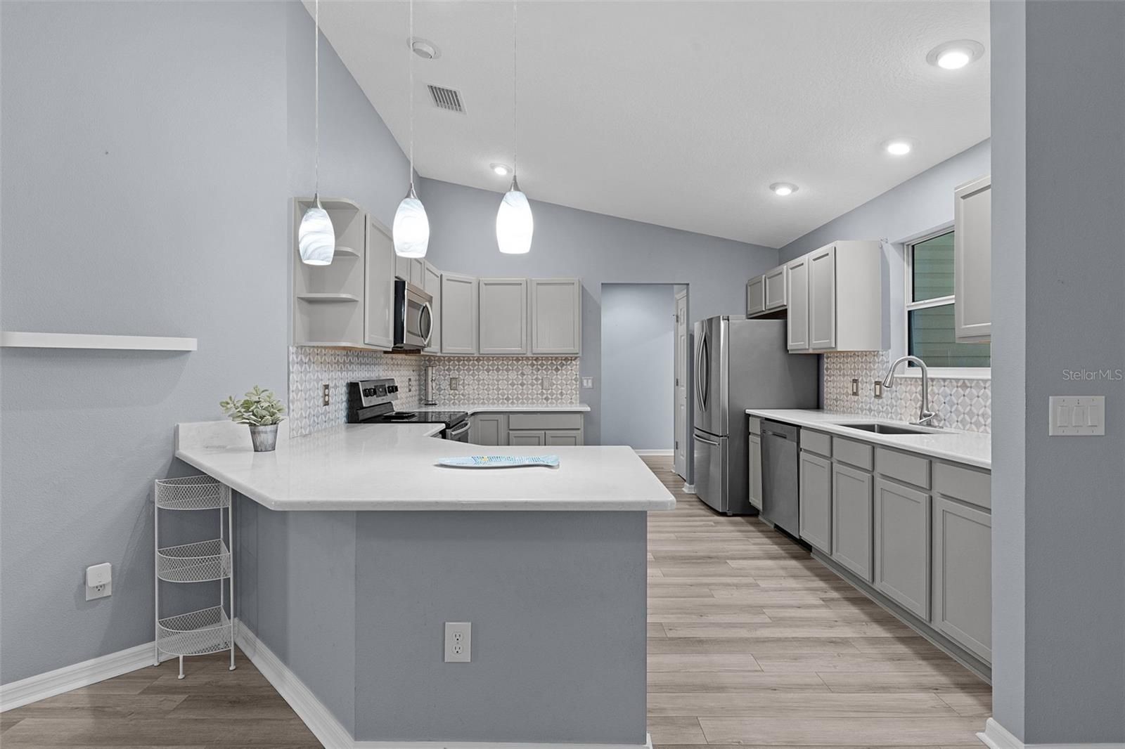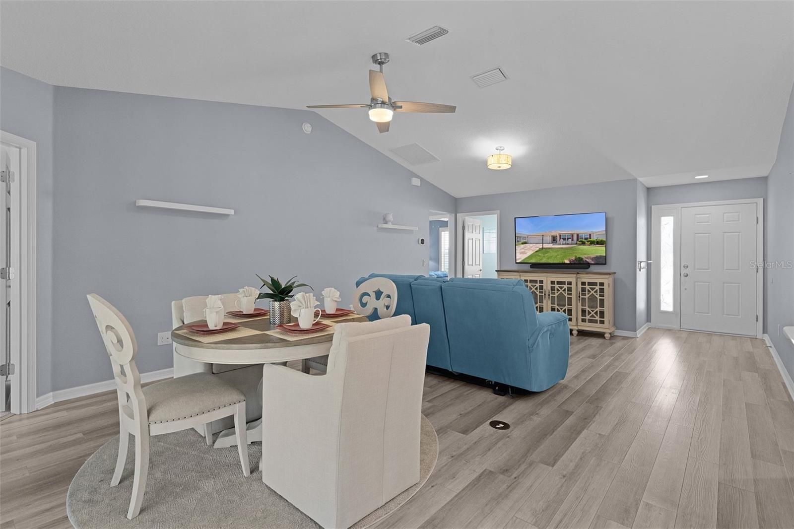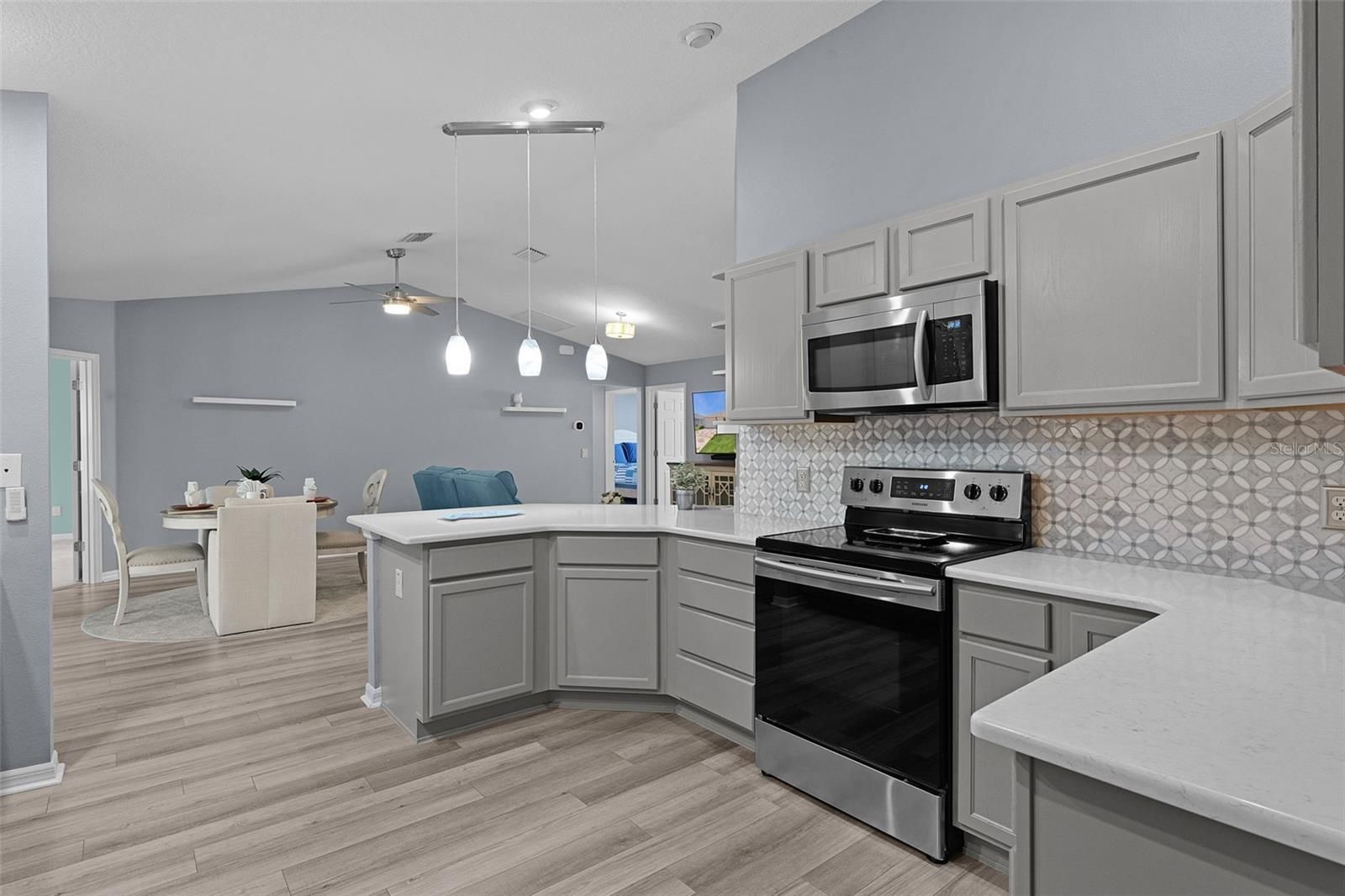 - Ceiling Fan(s), Living/Dining Room, Stone Counters, Thermostat, Vaulted Ceiling(s)