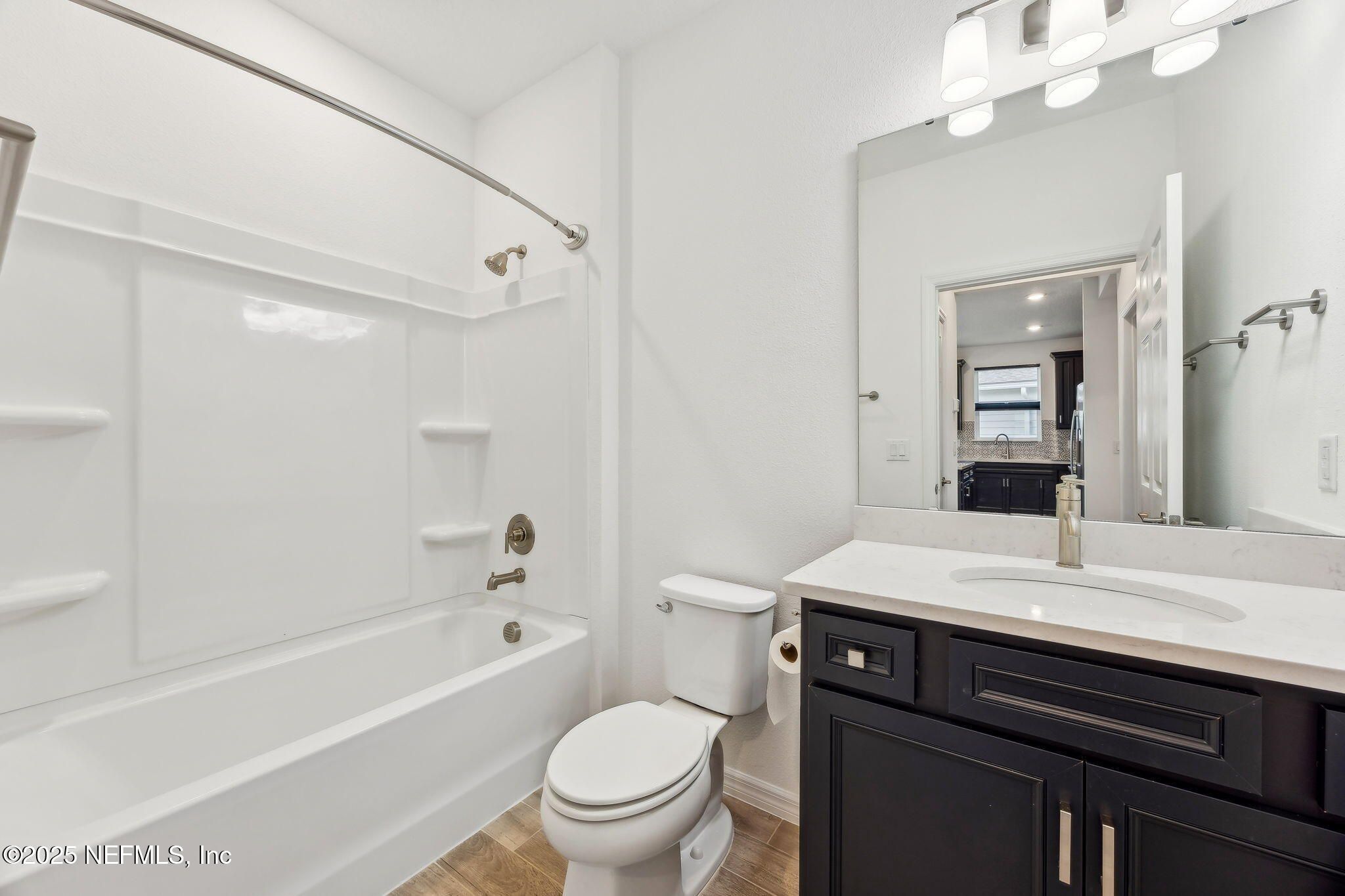 Wildlight living awaits you! Discover the pinnacle of 55+ resort-style living with this exquisite villa nestled within Del Webb's highly sought-after community. Positioned on a premium homesite adorned with lush, mature landscaping, this charming 2-bedroom, 2-bath home, complete with a flex room, beautifully balances privacy and contemporary style in a tranquil setting. Step inside to find a bright, open floor plan that enhances your living experience. The gourmet kitchen features upgraded countertops and a chic backsplash, seamlessly connecting to the dining area and spacious great room—perfect for hosting gatherings or enjoying peaceful moments at home. Retreat to the expansive primary suite, which boasts a luxurious ensuite bathroom equipped with high-end finishes that exude comfort and elegance. This home guarantees a low-maintenance lifes